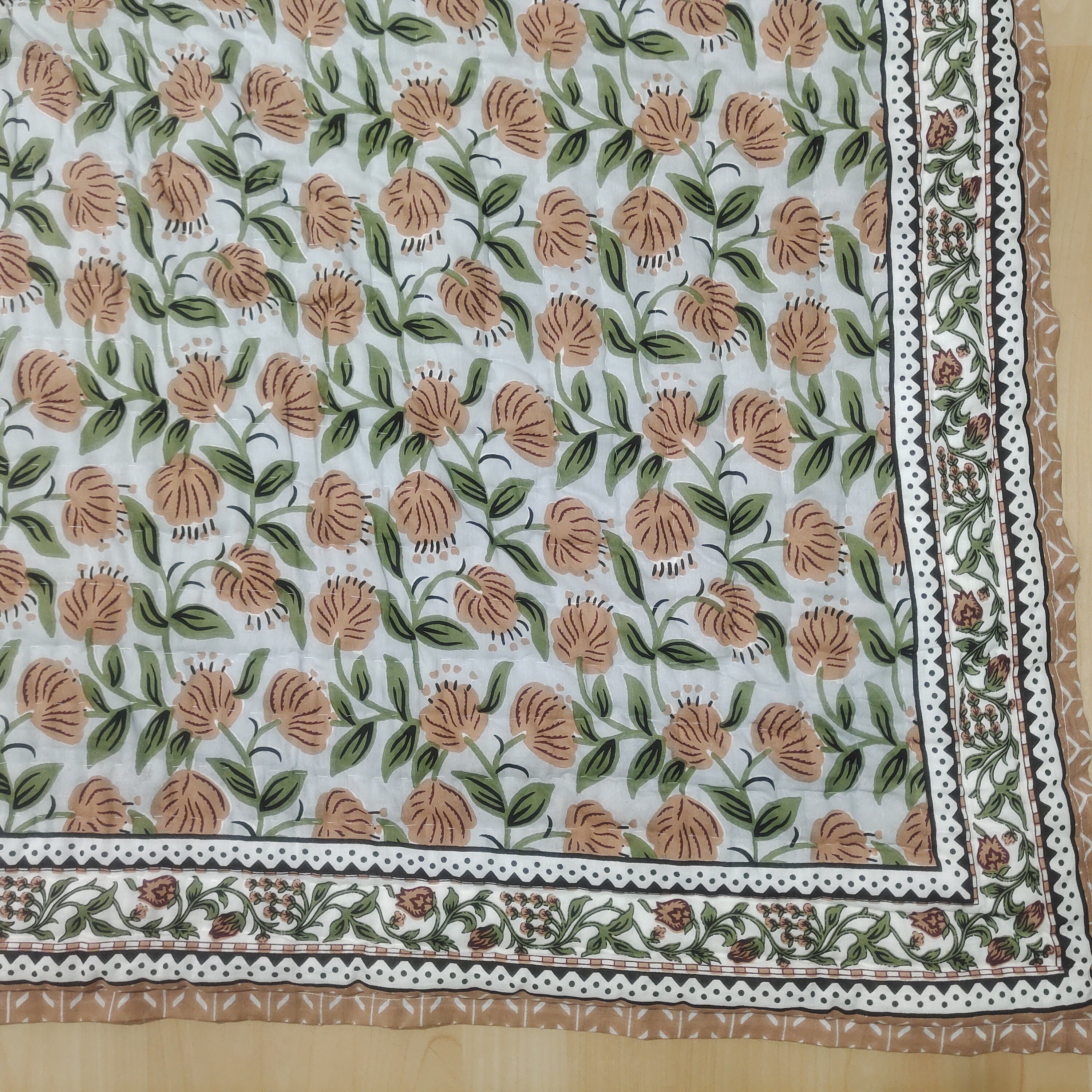 Indulge in the artistry of traditional craftsmanship with our exquisite Hand Stitched Hand Block Print Quilt. Each quilt is a masterpiece of skill and creativity, meticulously crafted by skilled artisans in Jaipur, India. From the intricate hand block printing to the careful stitching, every step in the process is a labor of love, resulting in a quilt that's as beautiful as it is functional.