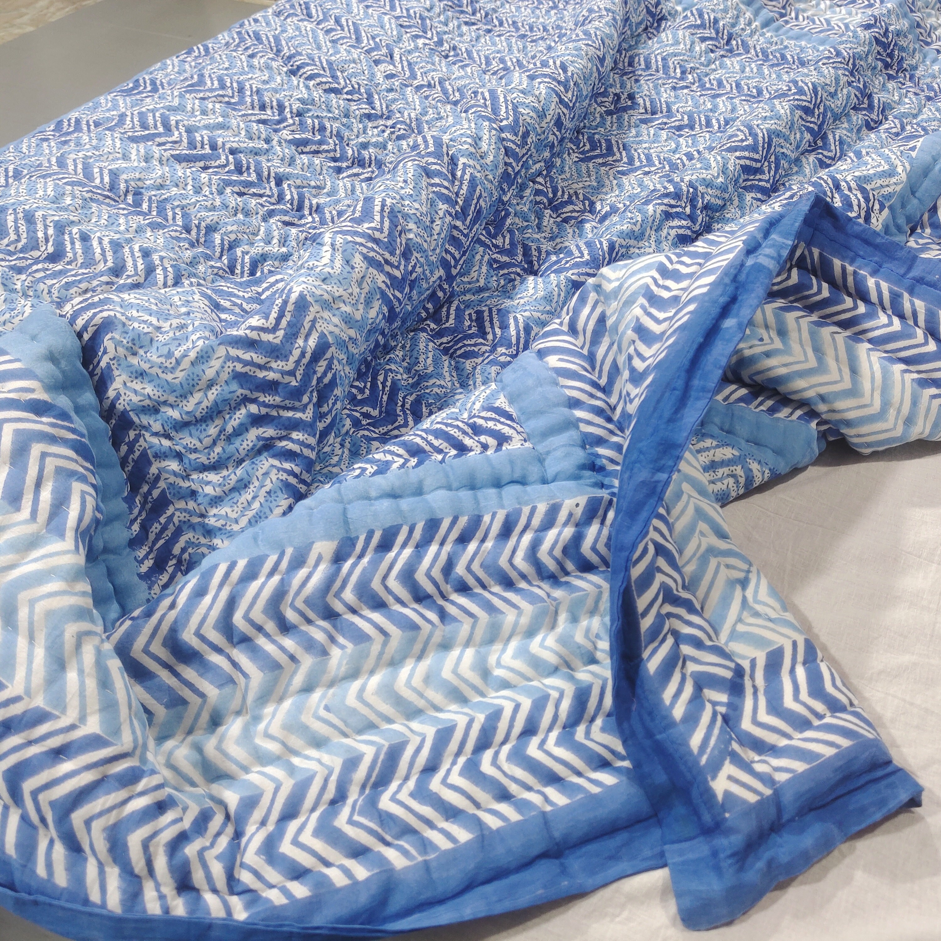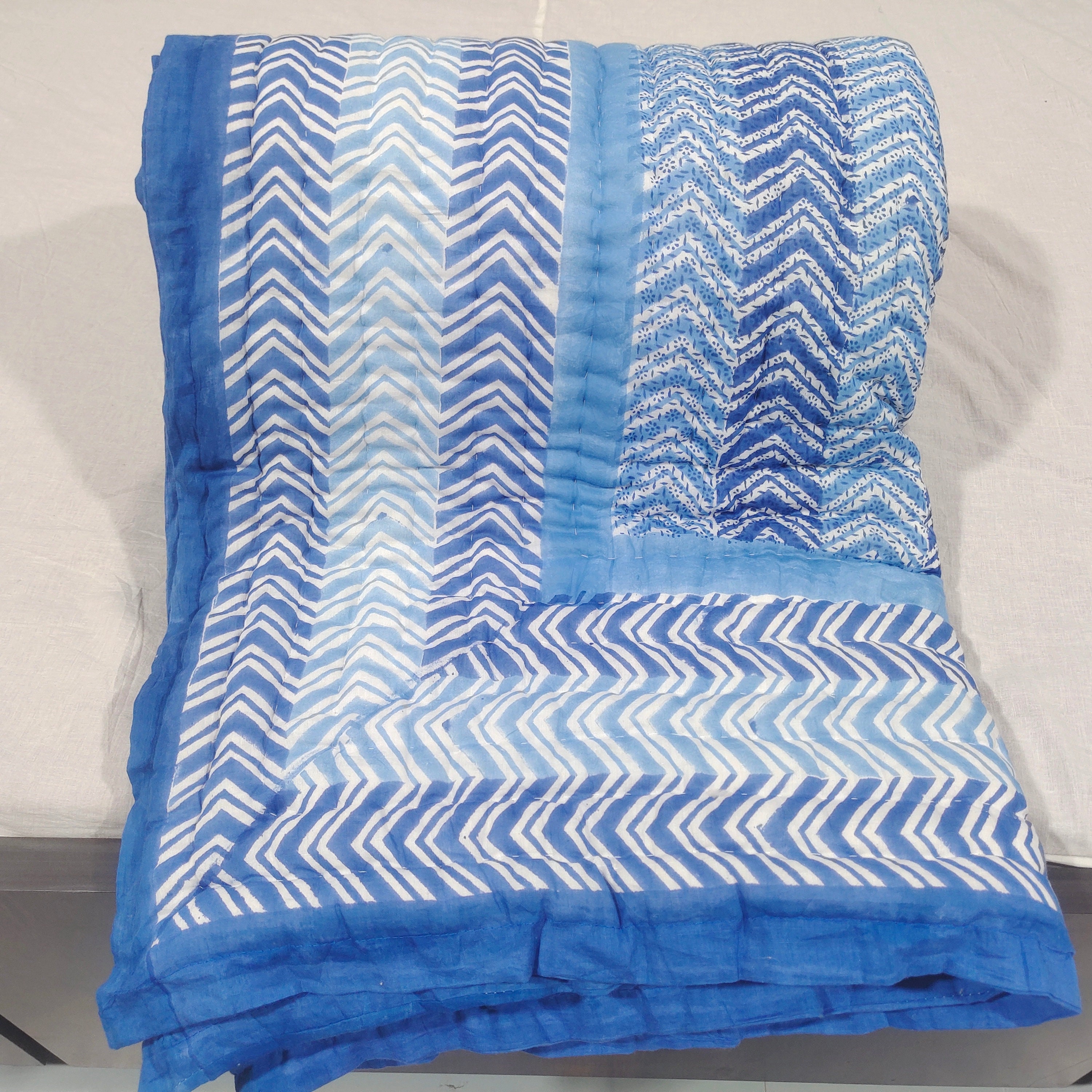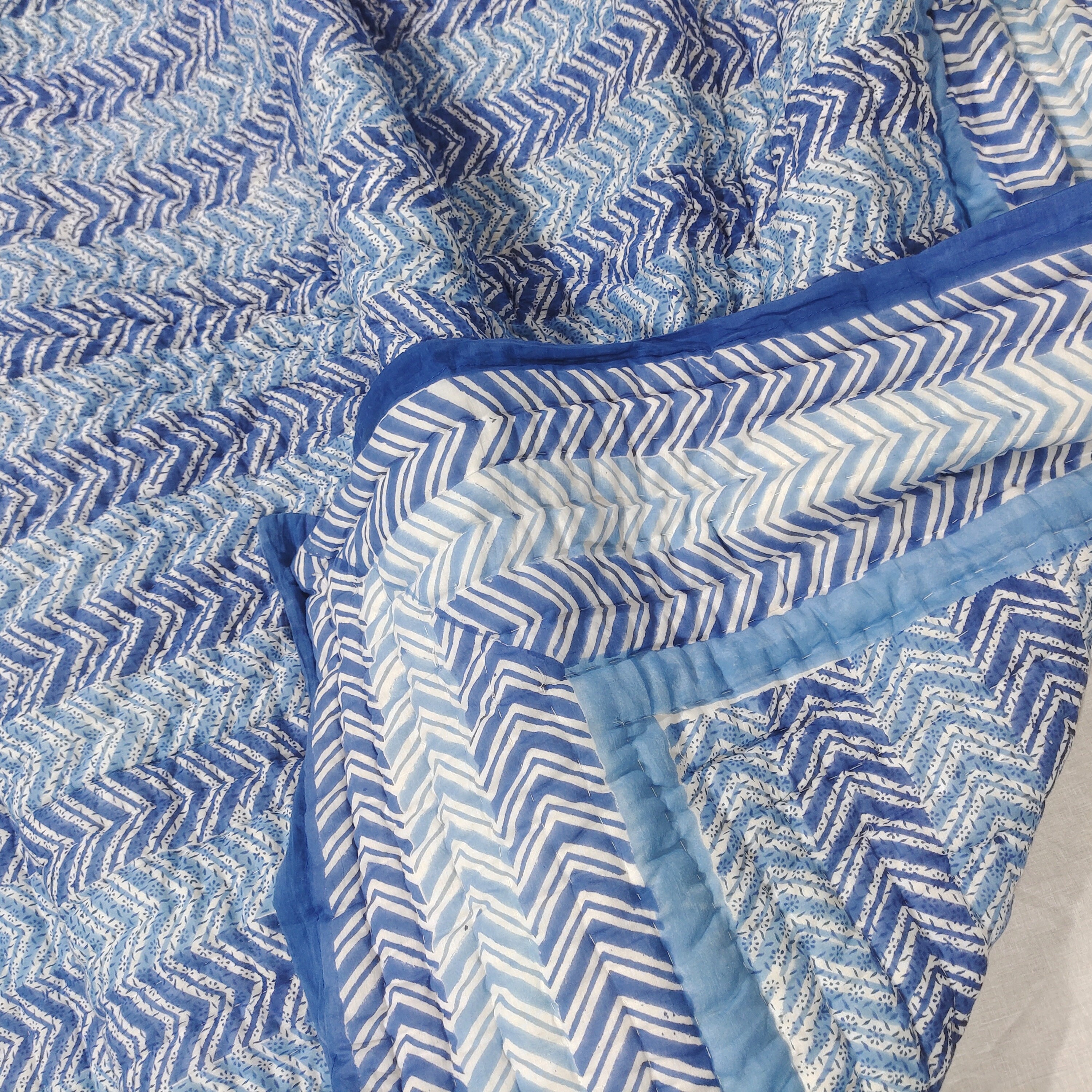 Blue Hand Block Print Cotton Quilt: Indian Boho Bedding