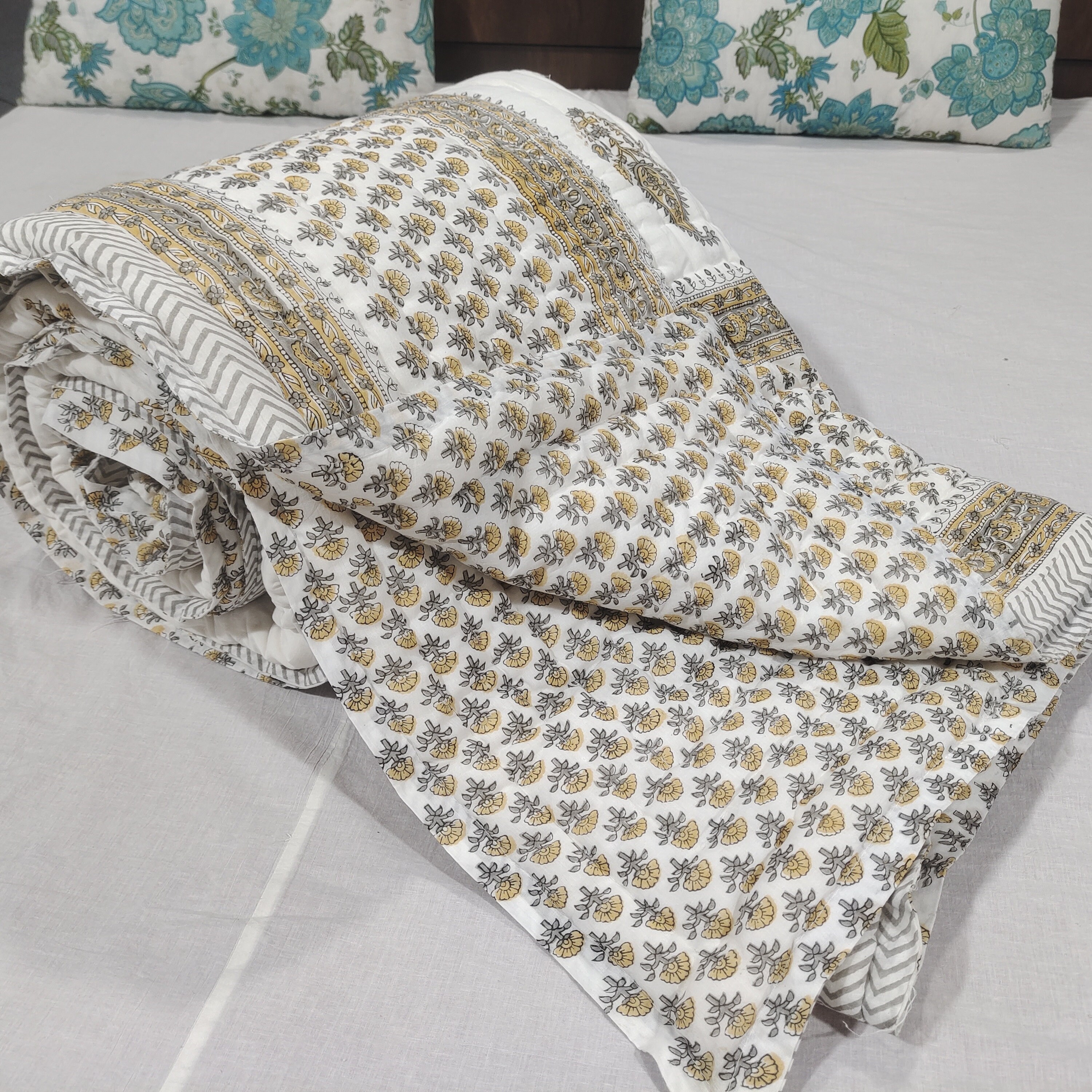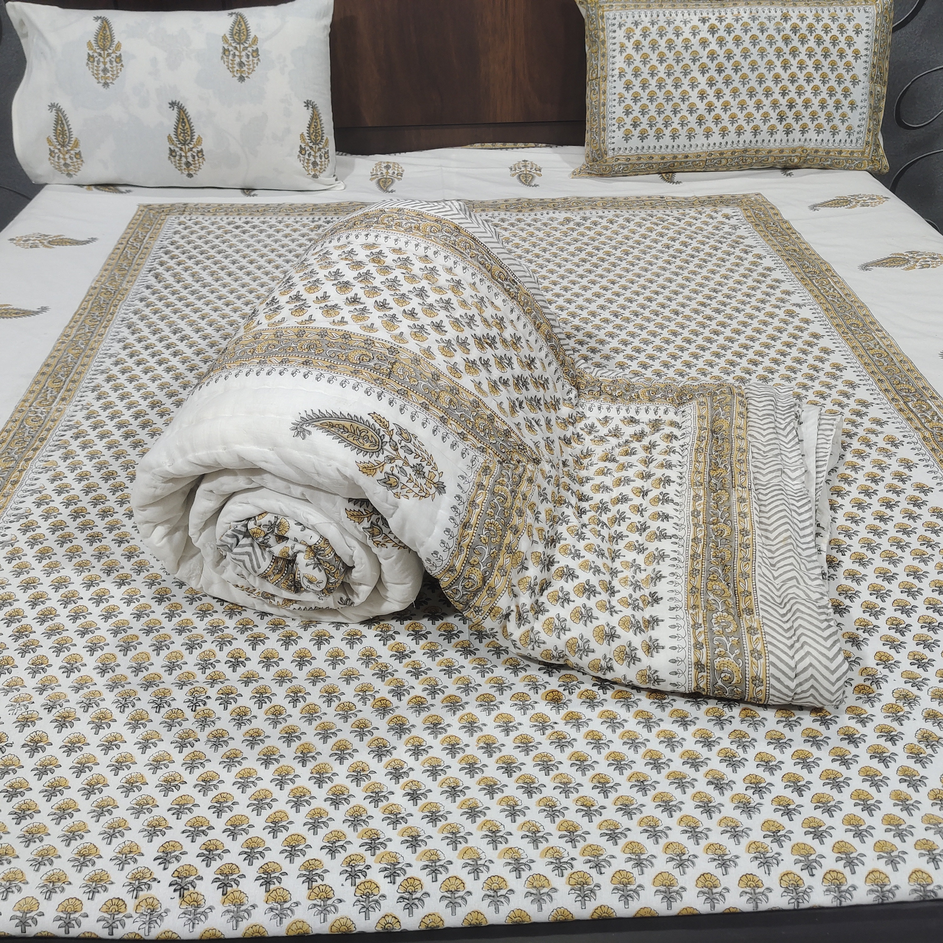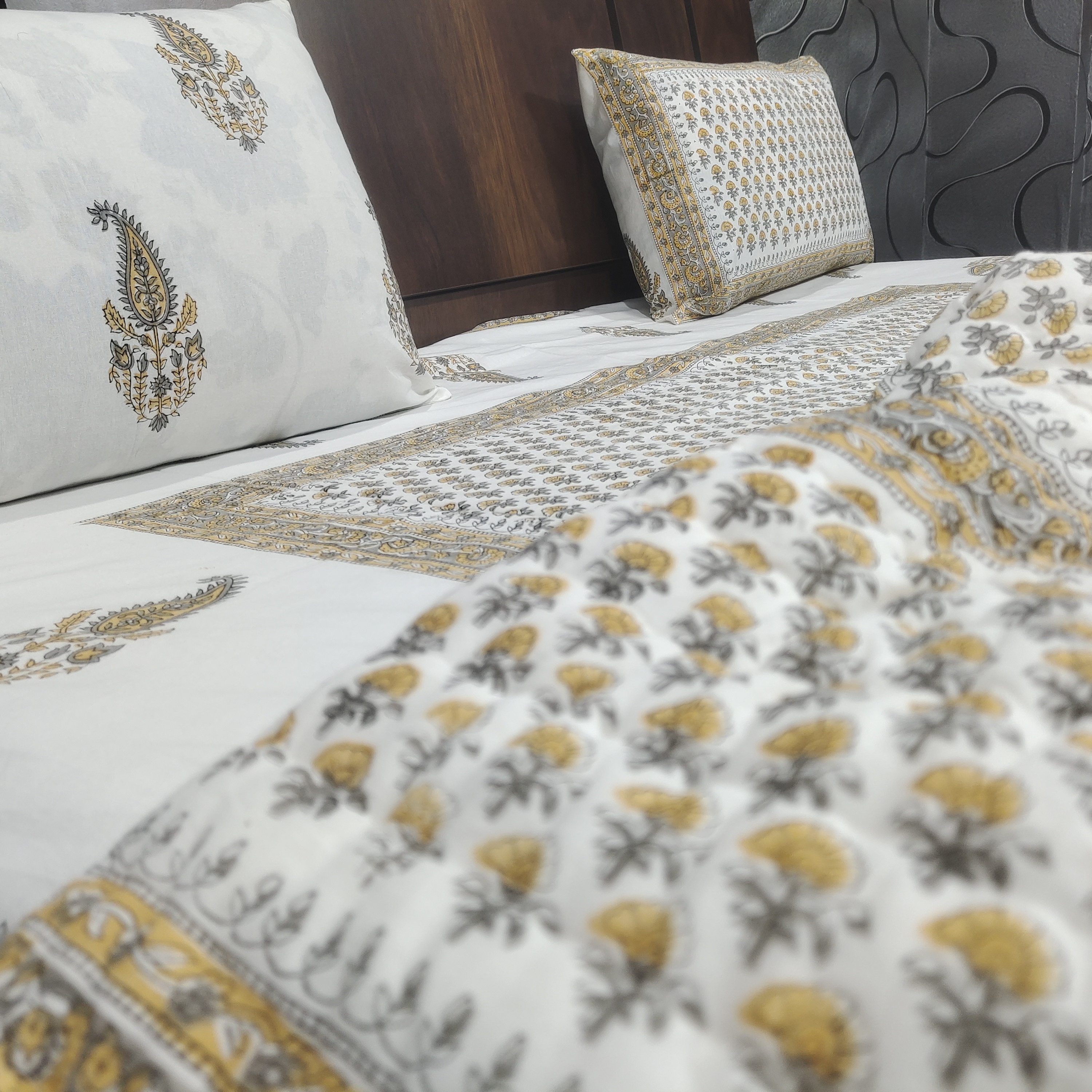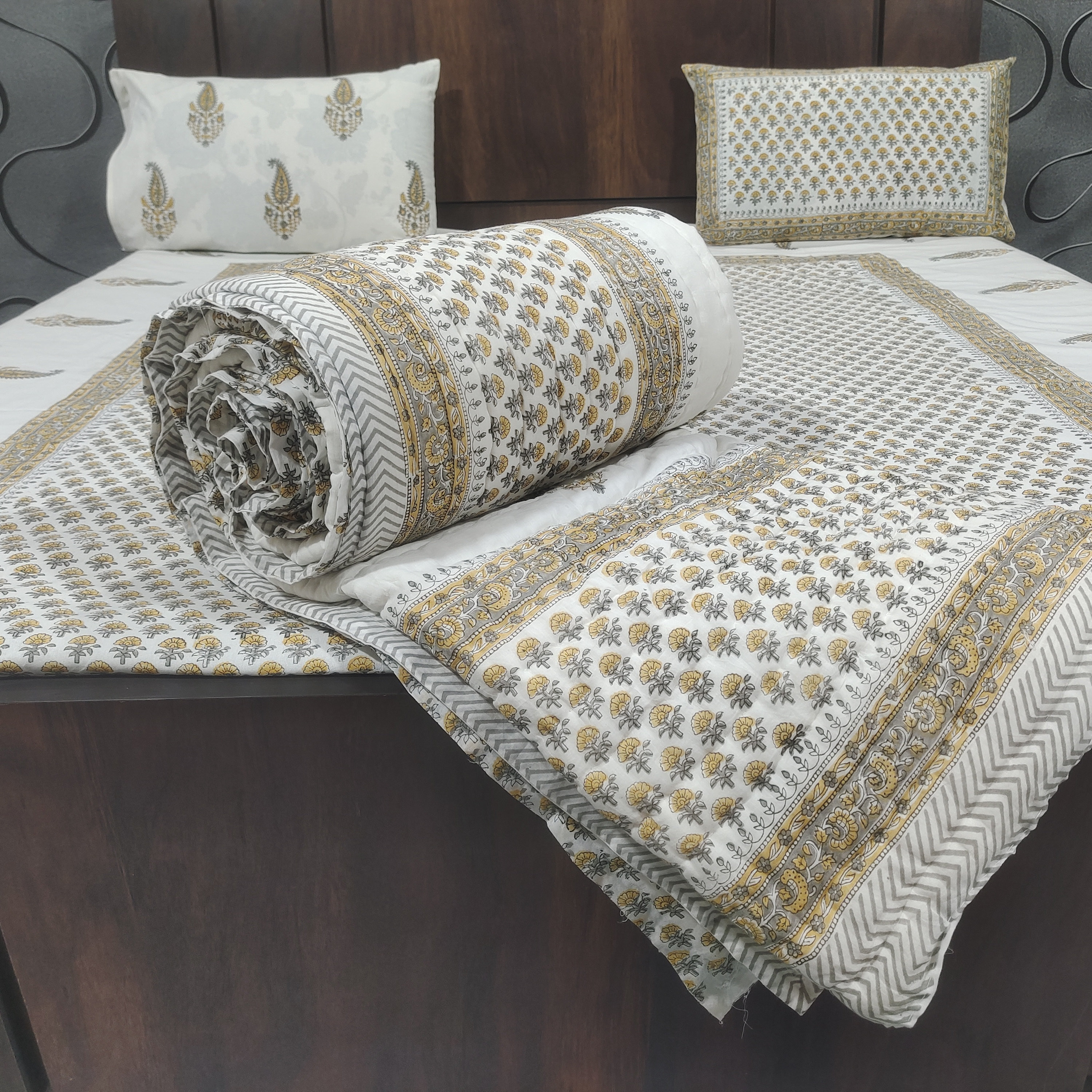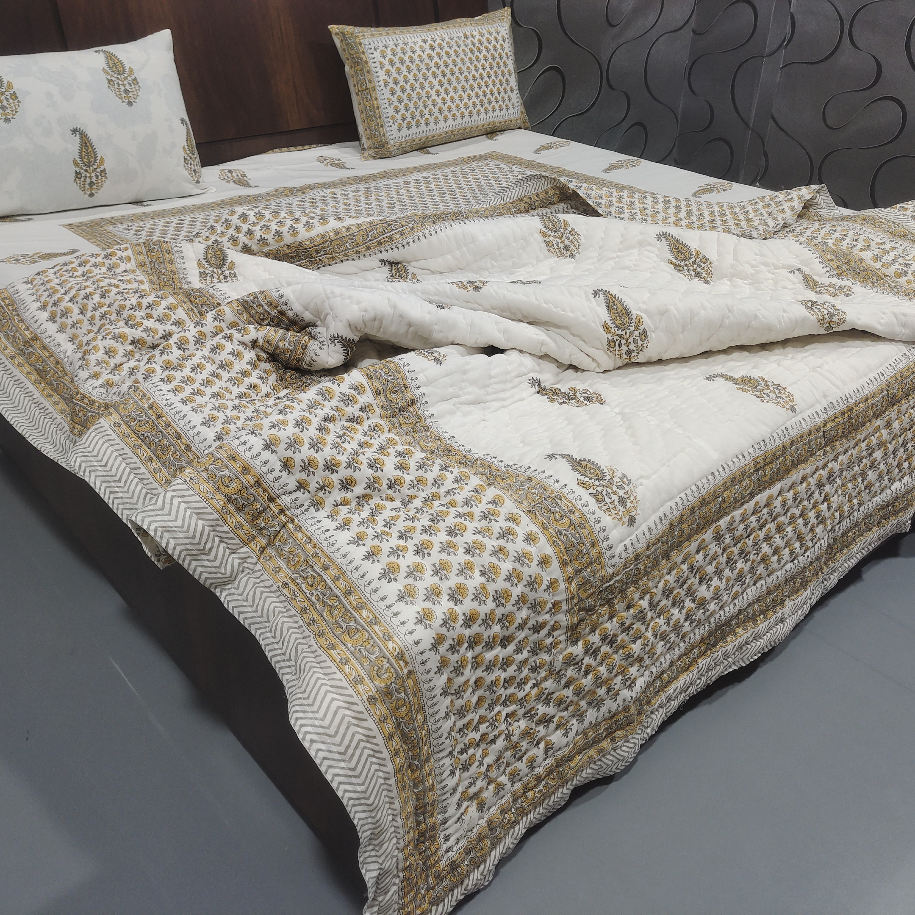 Premium Materials: Crafted from high-quality cotton, our quilts and bed sheets offer luxurious softness and comfort for a restful night's sleep.