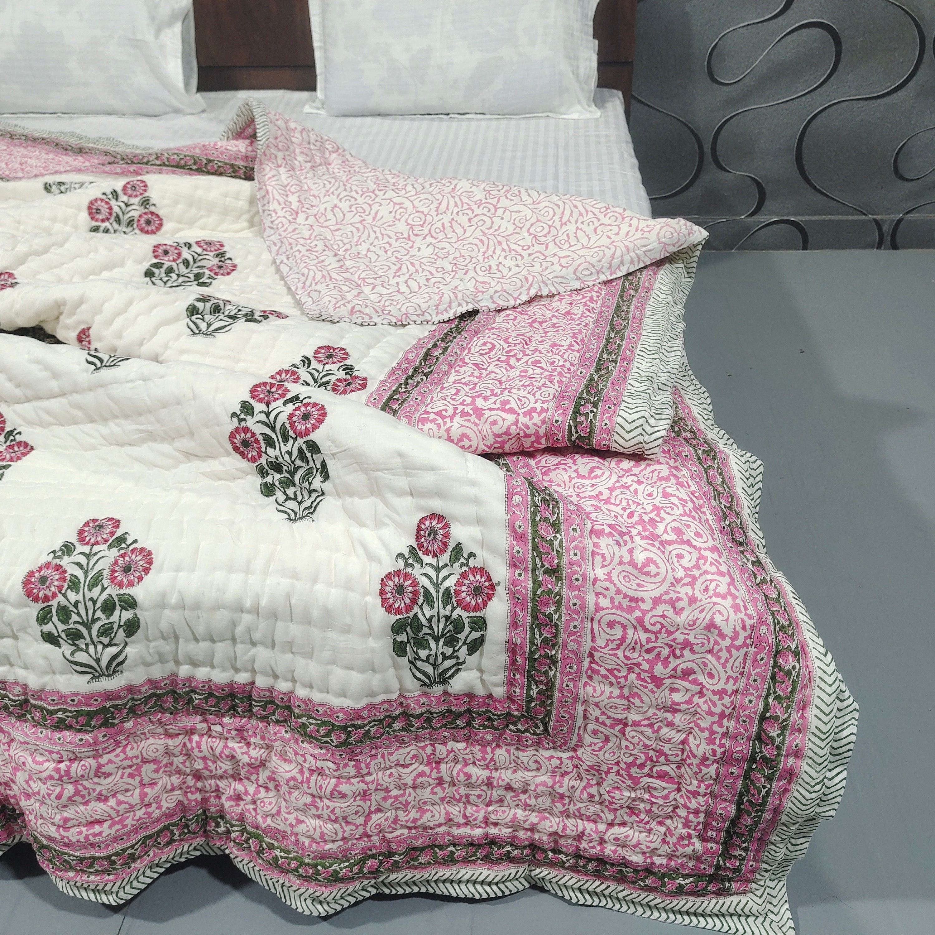 Beautiful Cotton Quilts Hand Block Printed with Hand Stitching Quilts
