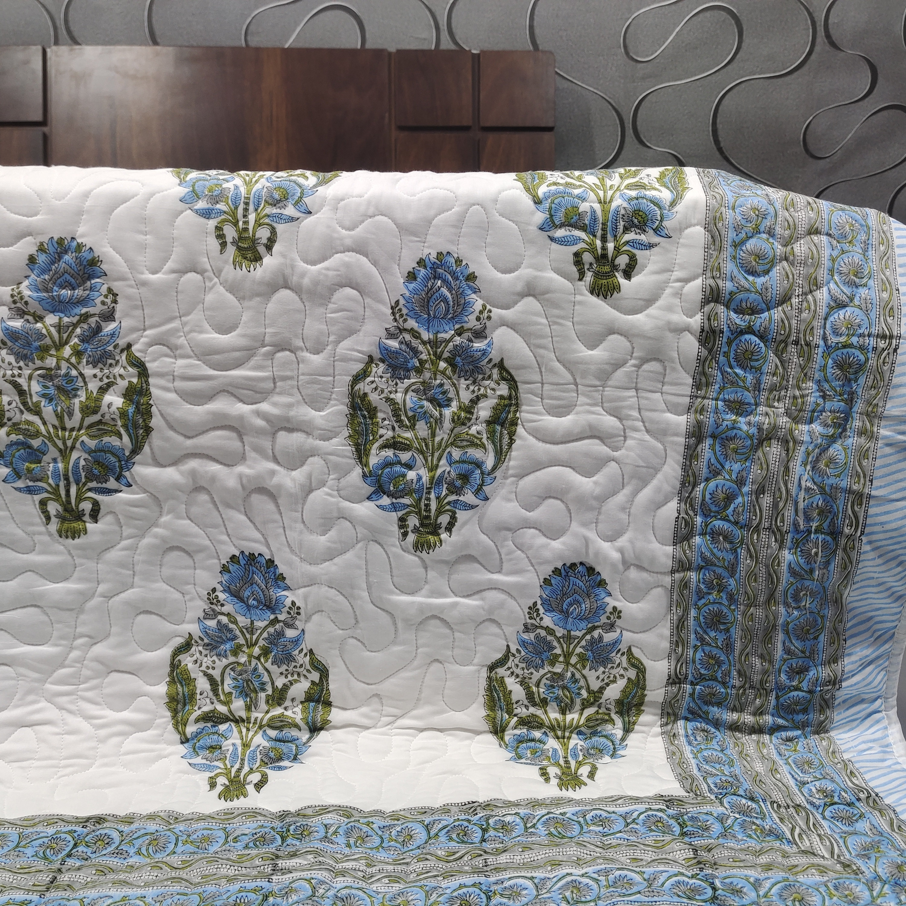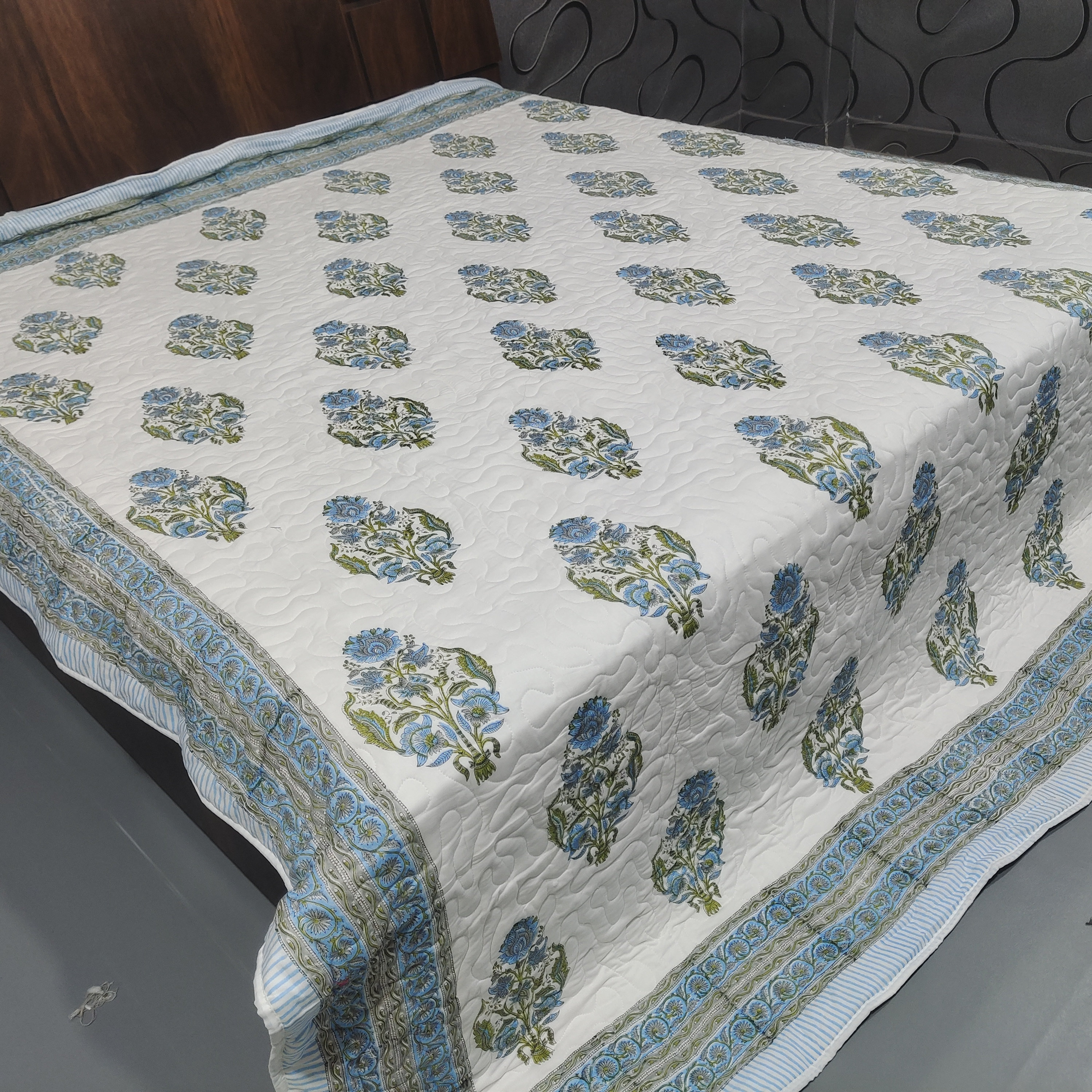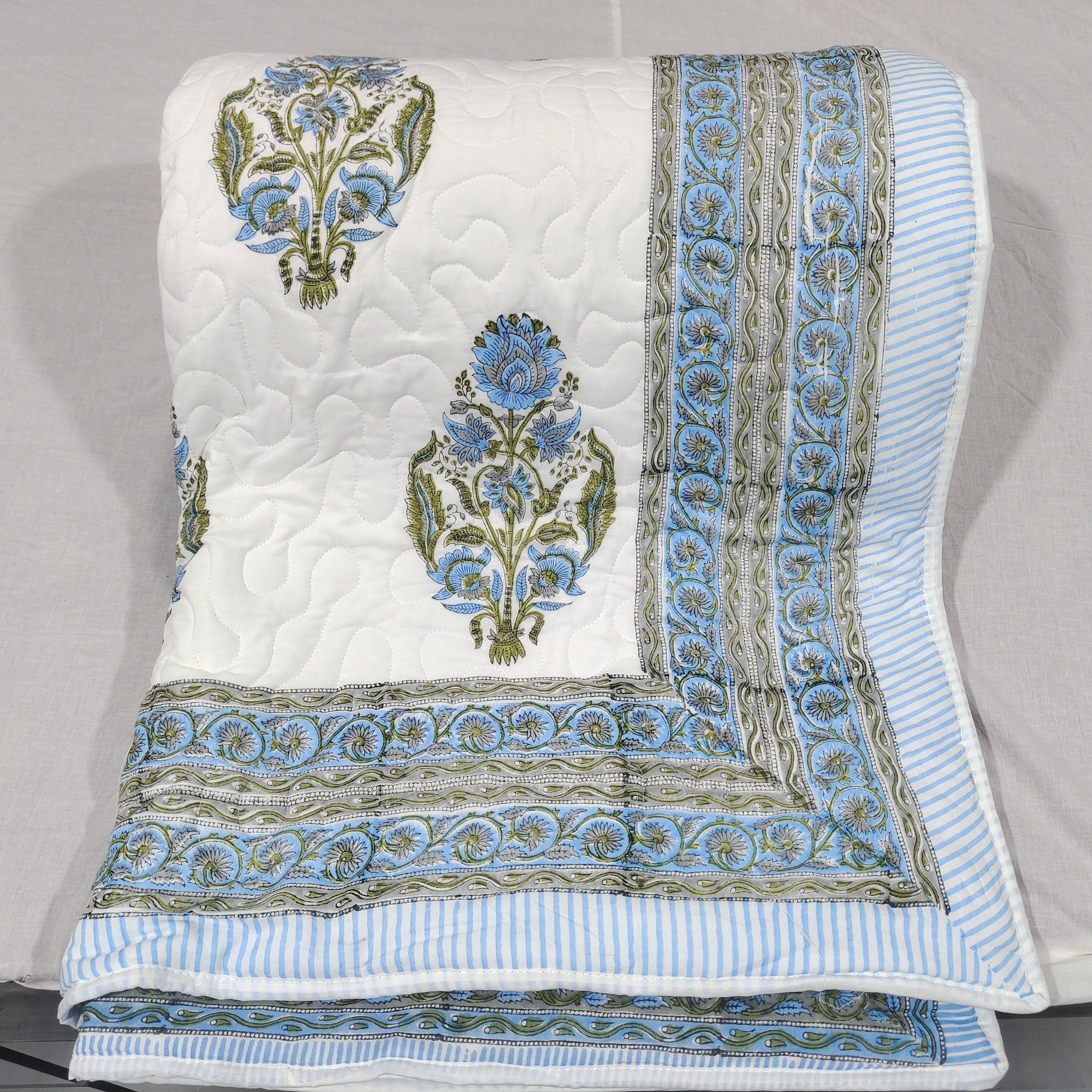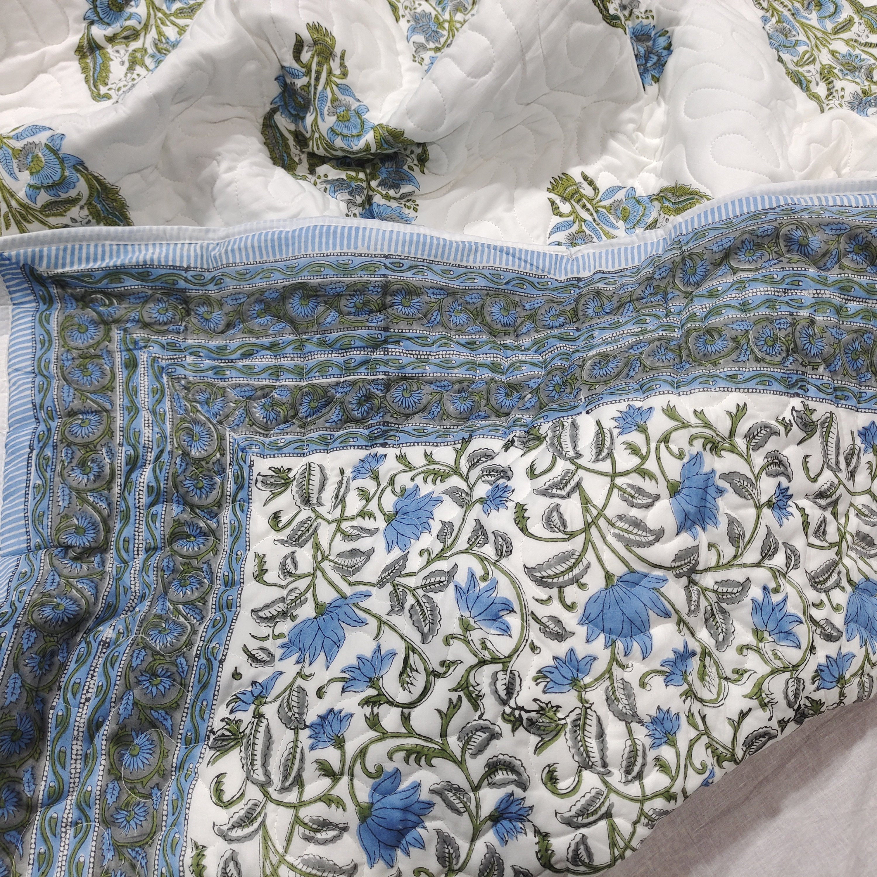 Hand Block Print Cotton Quilt: Reversible Queen Bedding