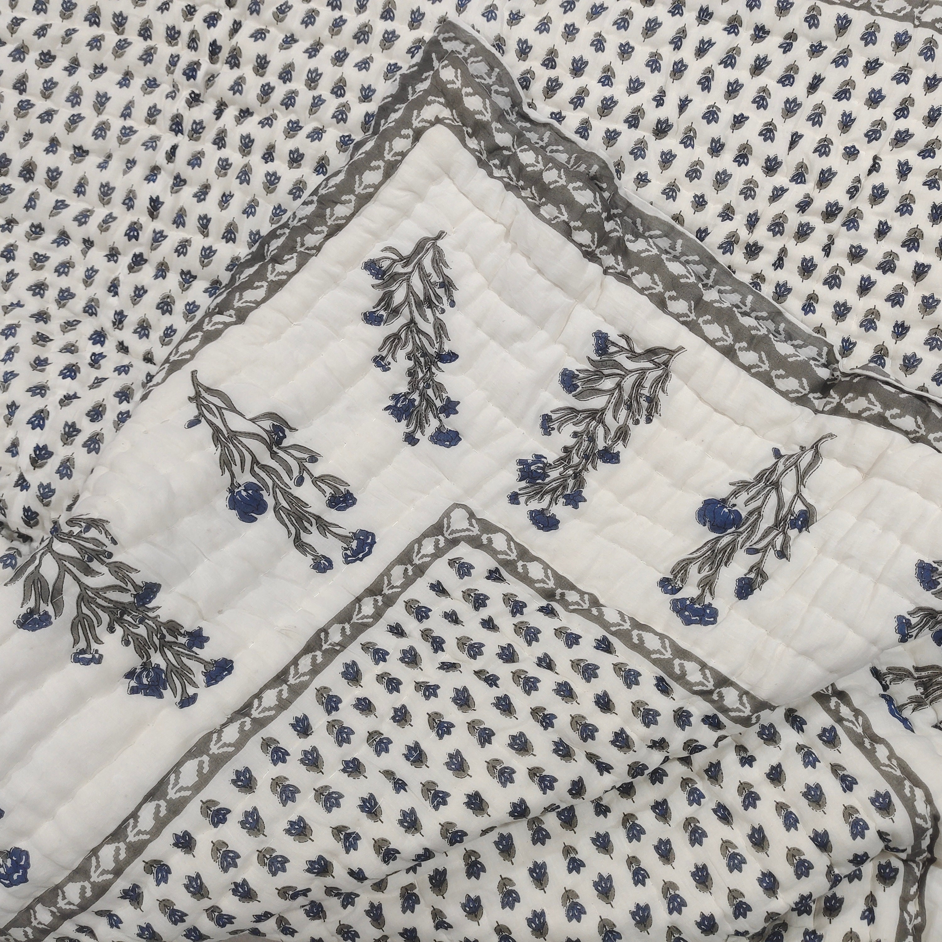 Indulge in the artistry of traditional craftsmanship with our exquisite Hand Stitched Hand Block Print Quilt. Each quilt is a masterpiece of skill and creativity, meticulously crafted by skilled artisans in Jaipur, India. From the intricate hand block printing to the careful stitching, every step in the process is a labor of love, resulting in a quilt that's as beautiful as it is functional.