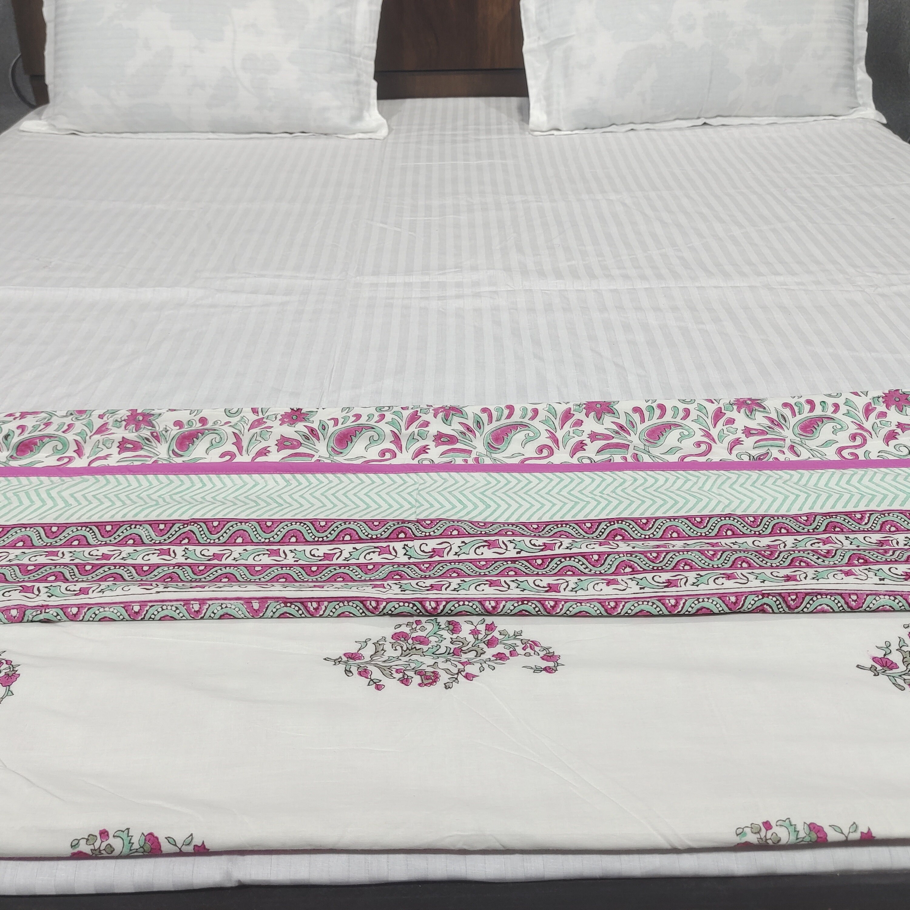 Hand Block Print Cotton Dohar Blanket: Pink Indian Reversible Bed Cover