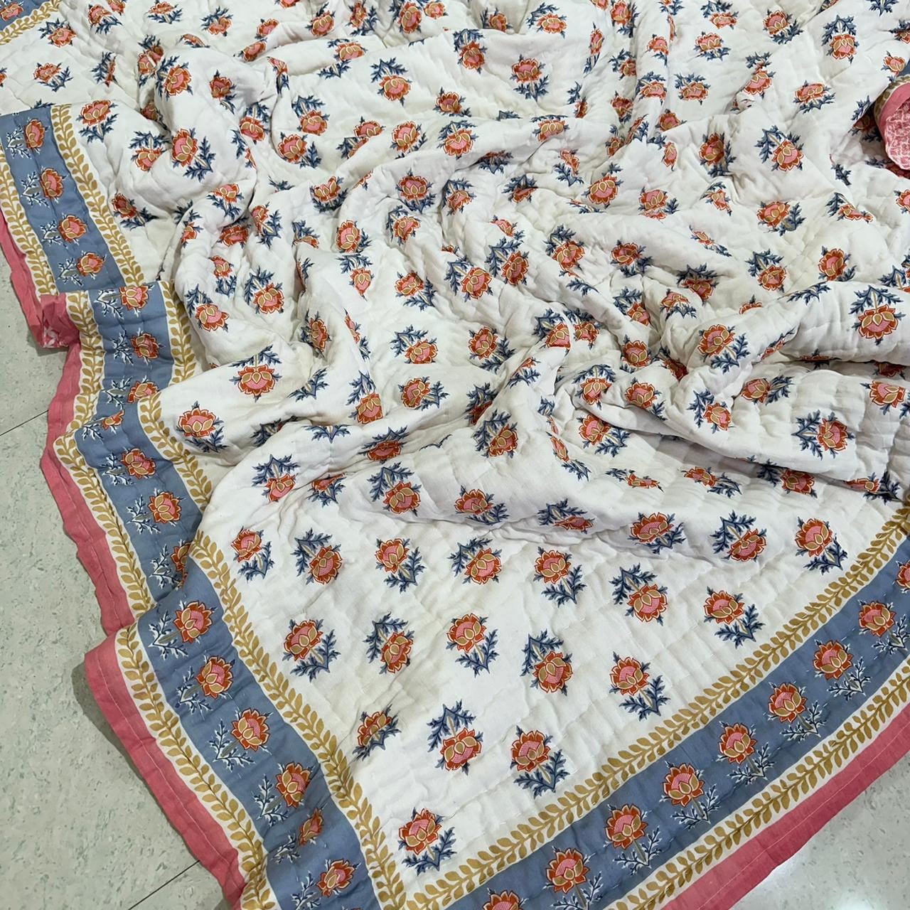 Beautiful Cotton Quilts Hand Block Printed with Hand Stitching Quilts
