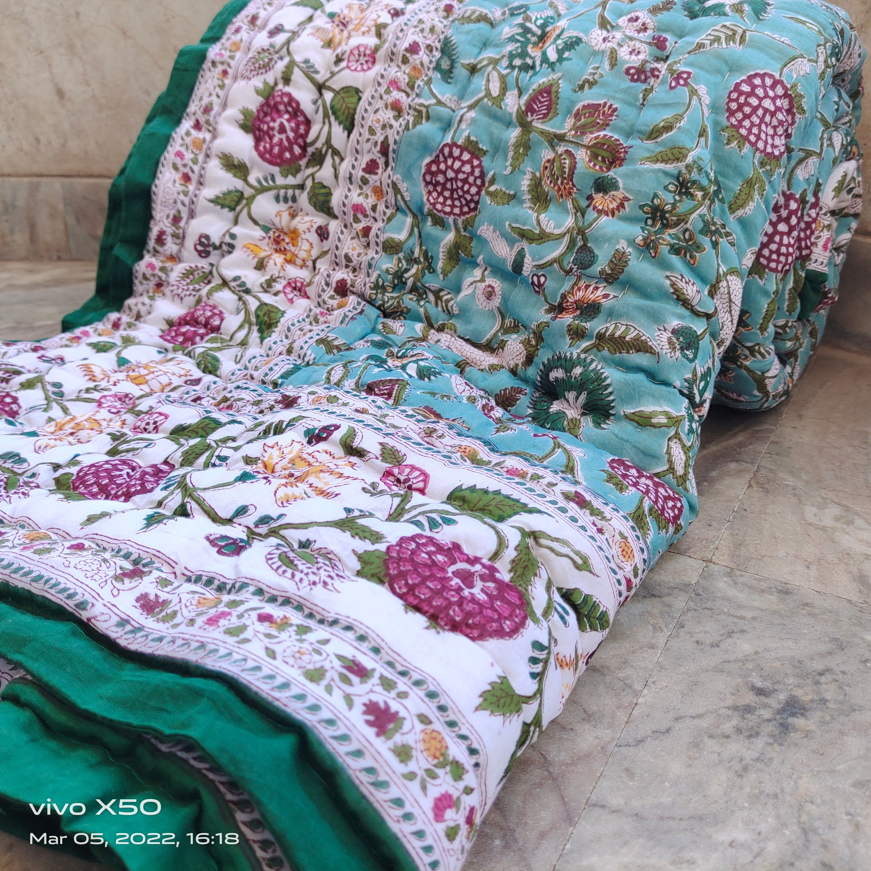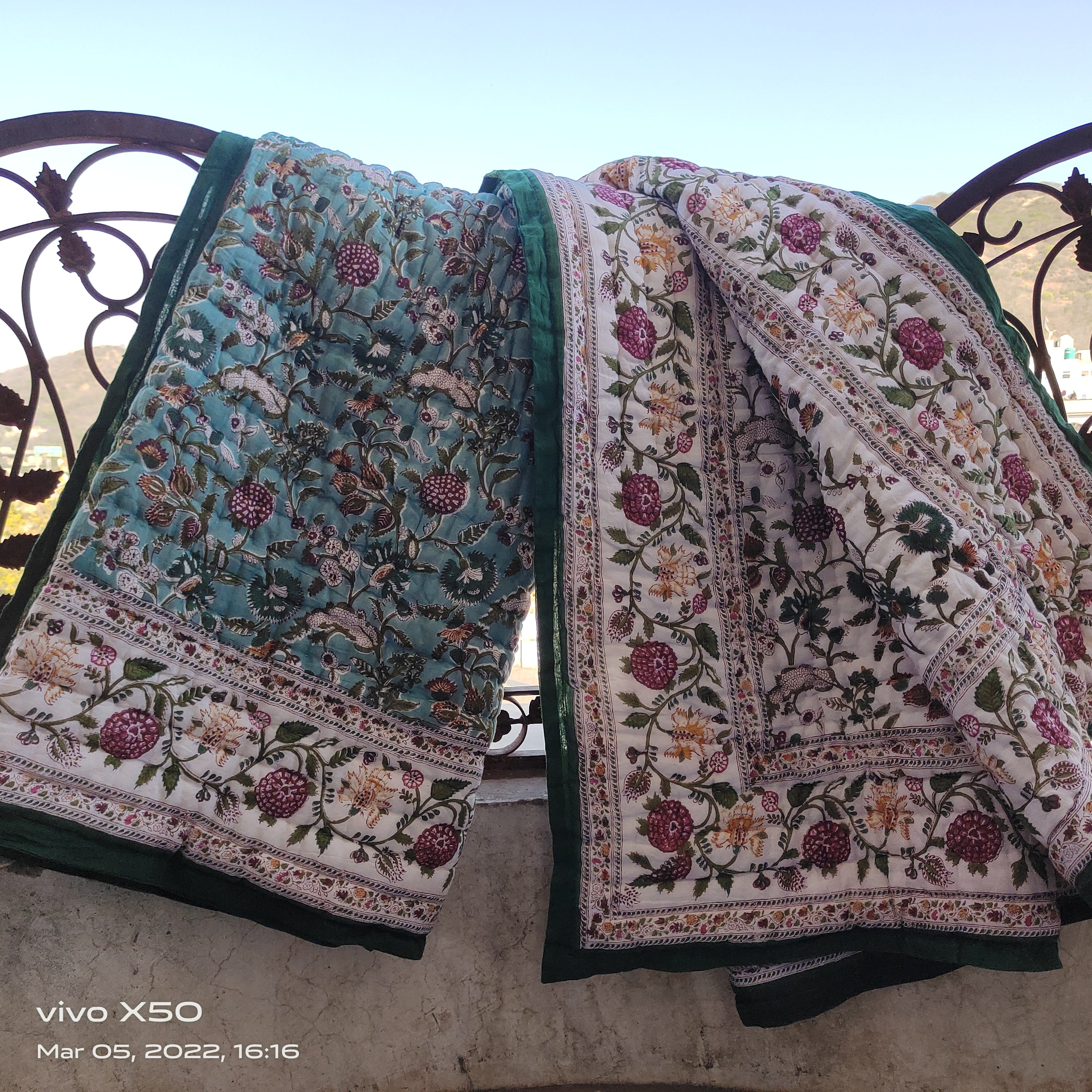 Beautiful Cotton Quilts Hand Block Printed with Hand Stitching Quilts
