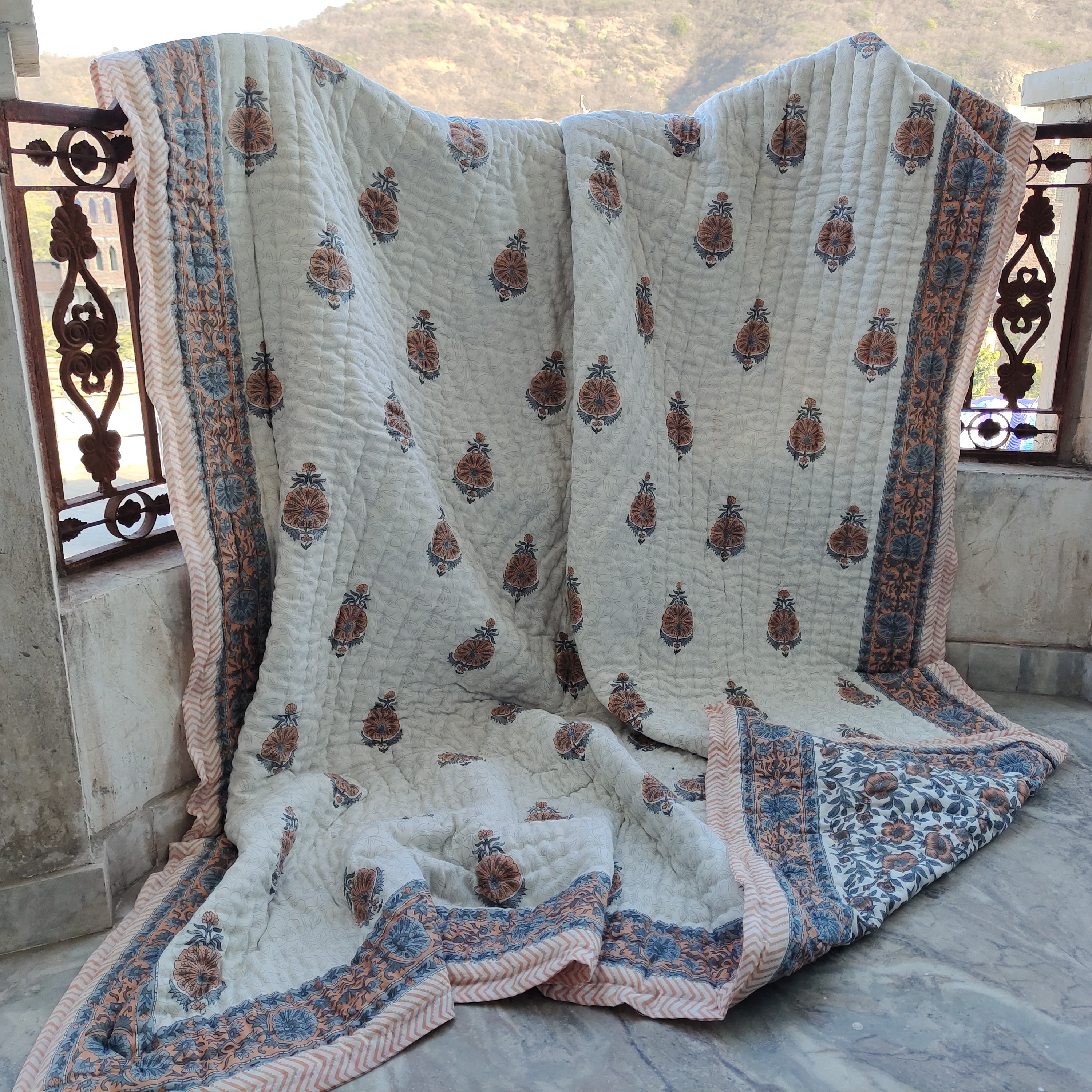 Beautiful Cotton Quilts Hand Block Printed with Hand Stitching Quilts