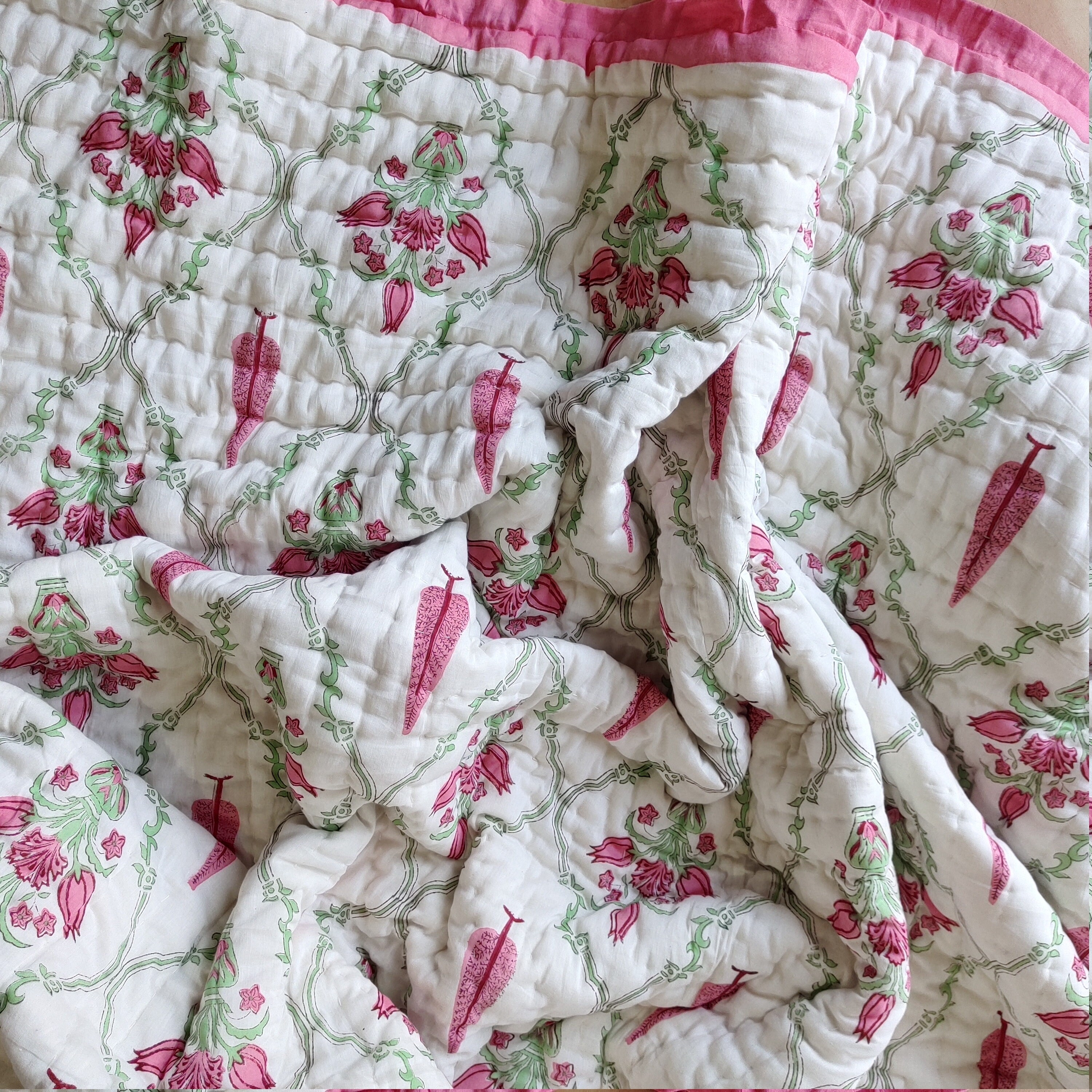 Beautiful Cotton Quilts Hand Block Printed with Hand Stitching Quilts