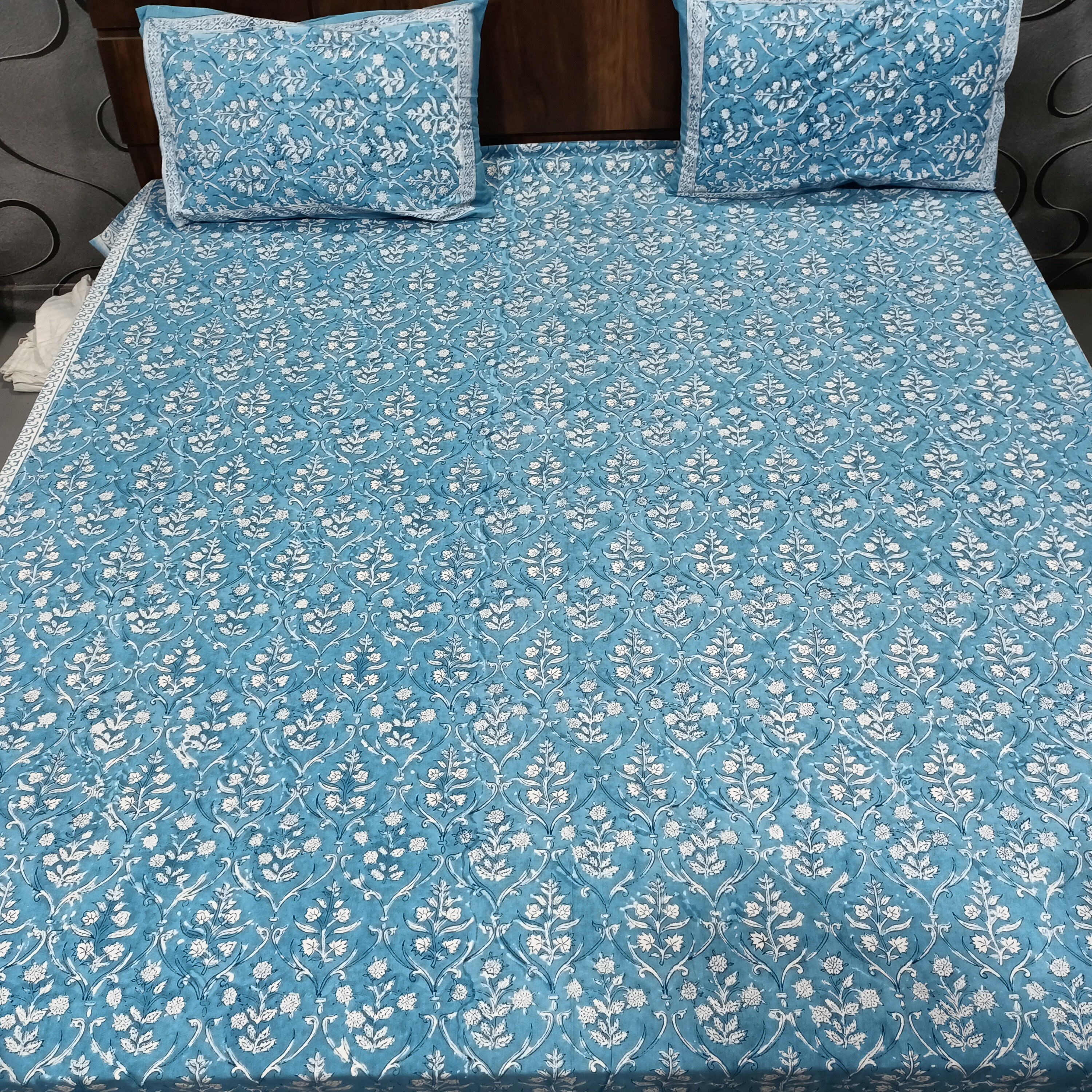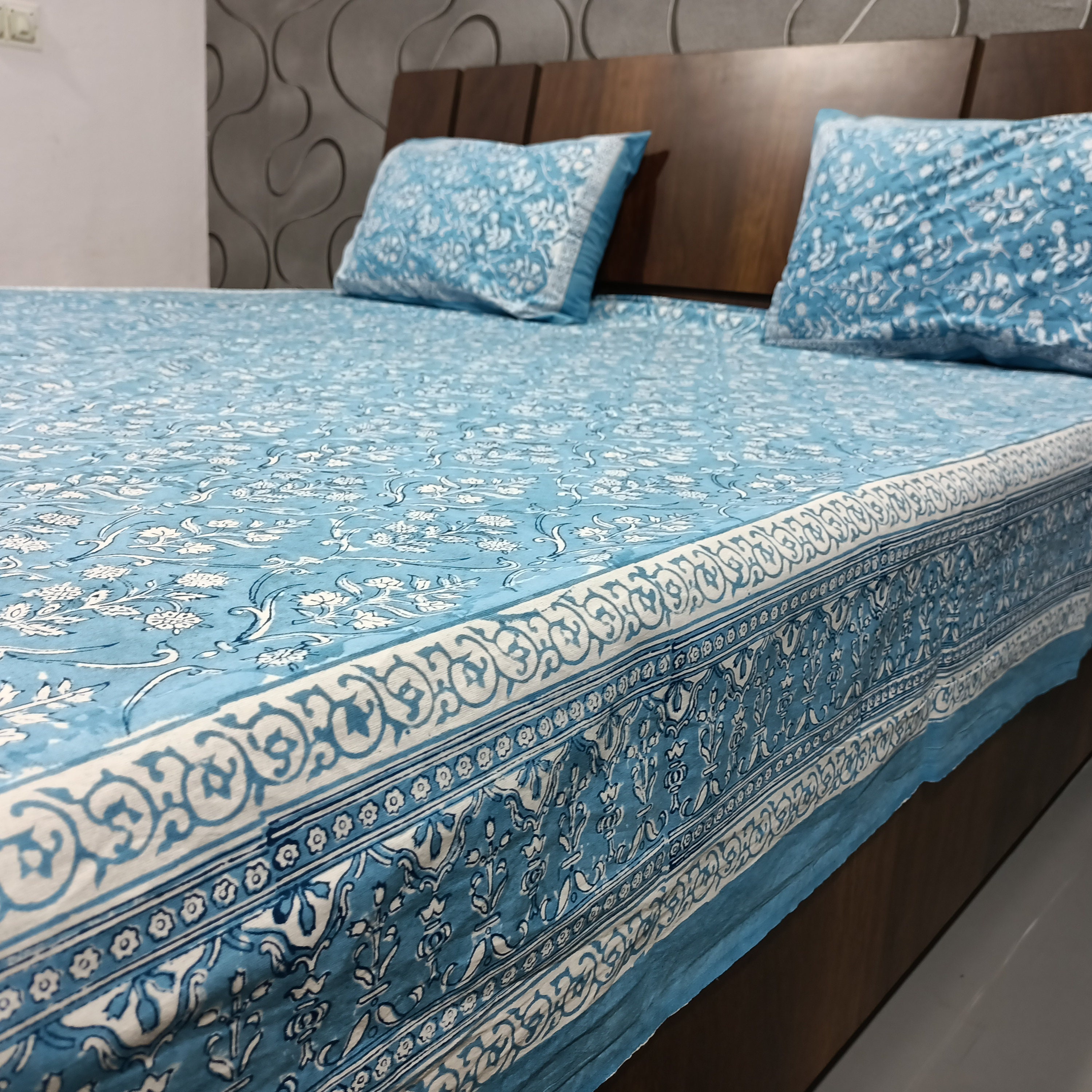 An ebullient flower pattern, hand block printed airy 100% cotton design collection presents a modern take on traditional, nature-inspired Indian motifs showcasing an elaborated all-over design brings a royal ambiance to your home. A prettily detailed border makes for a beautiful finish.