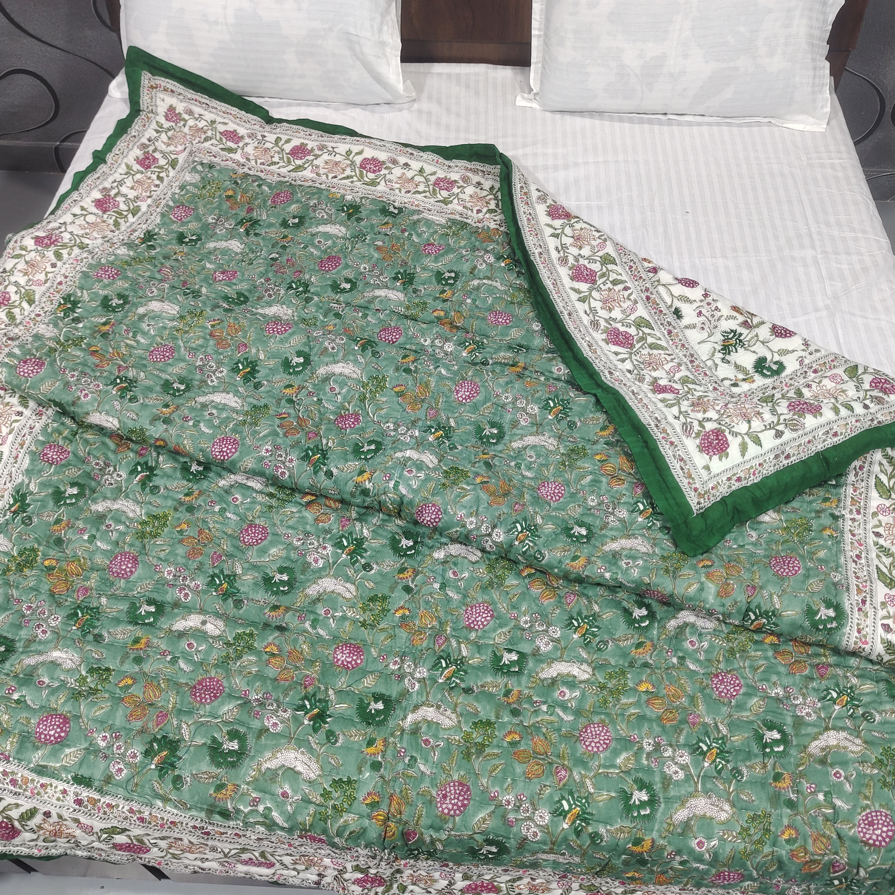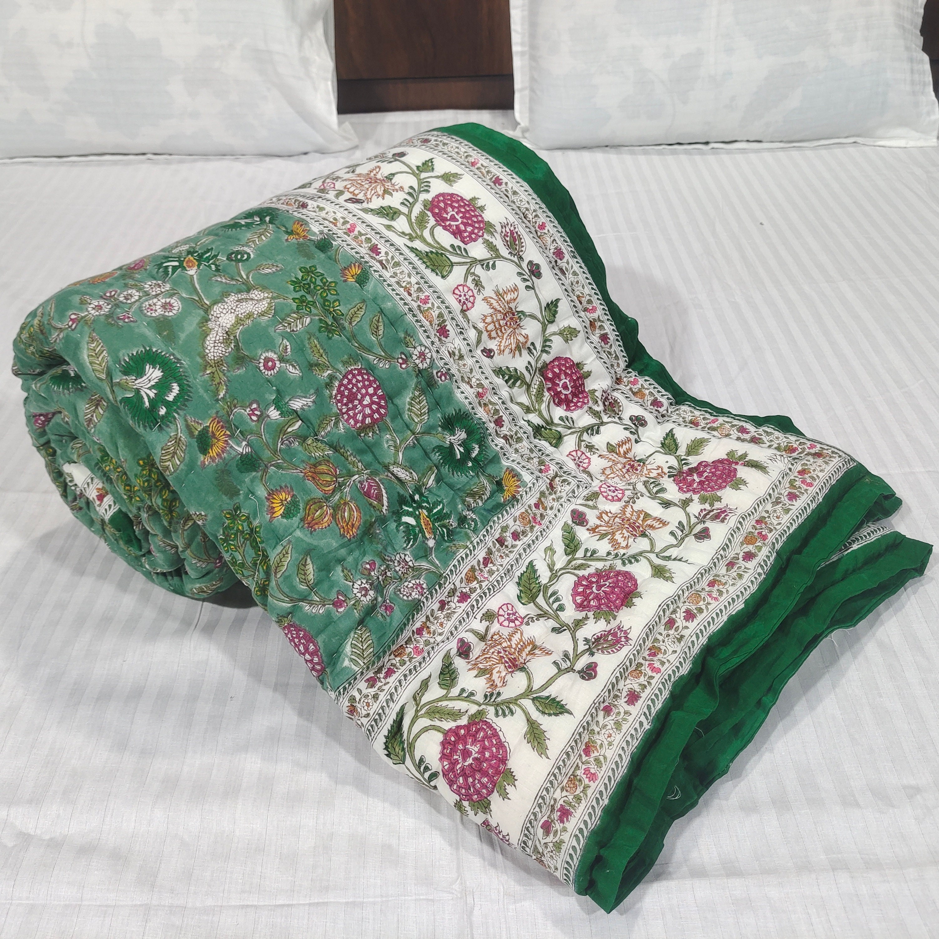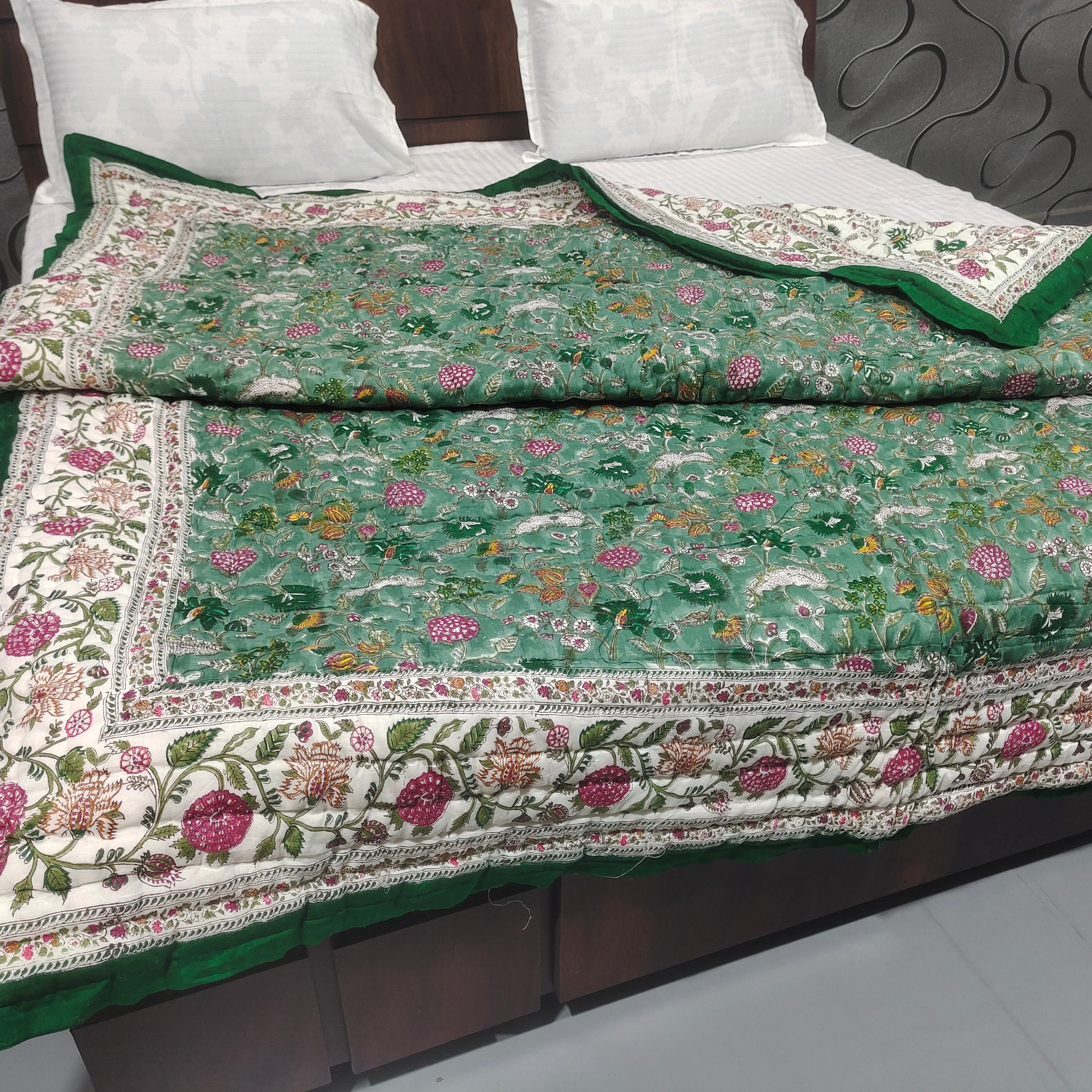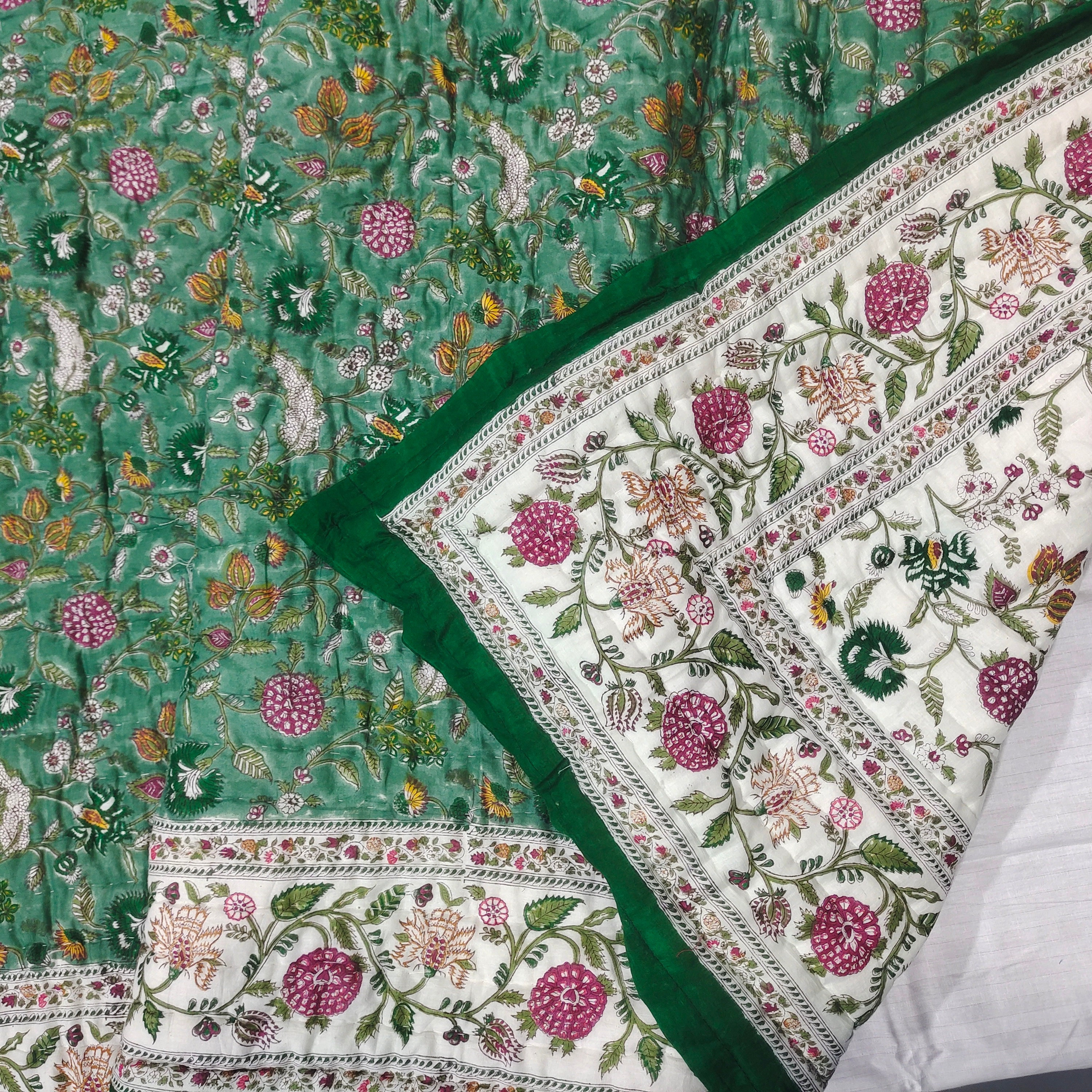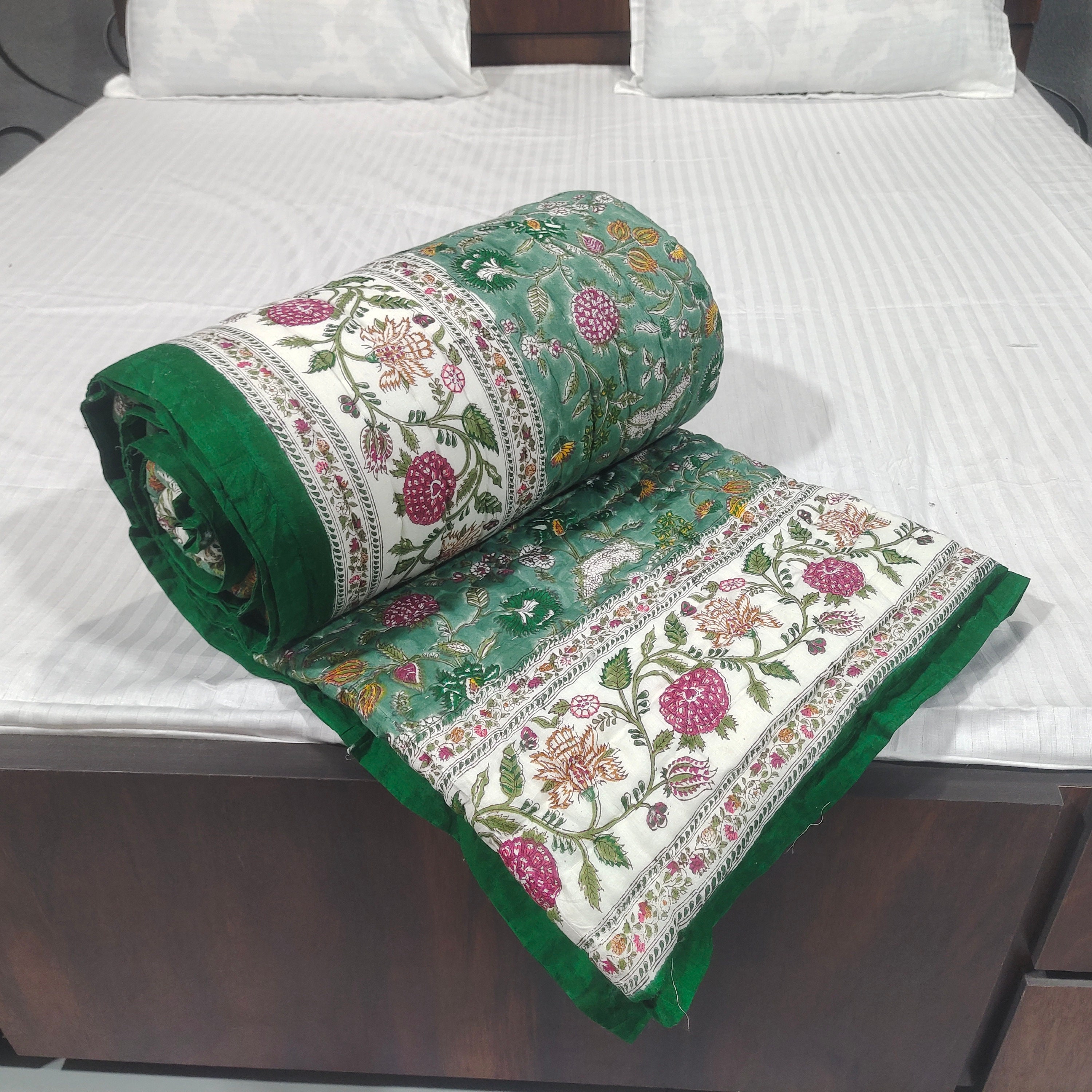 Indulge in the artistry of traditional craftsmanship with our exquisite Hand Stitched Hand Block Print Quilt. Each quilt is a masterpiece