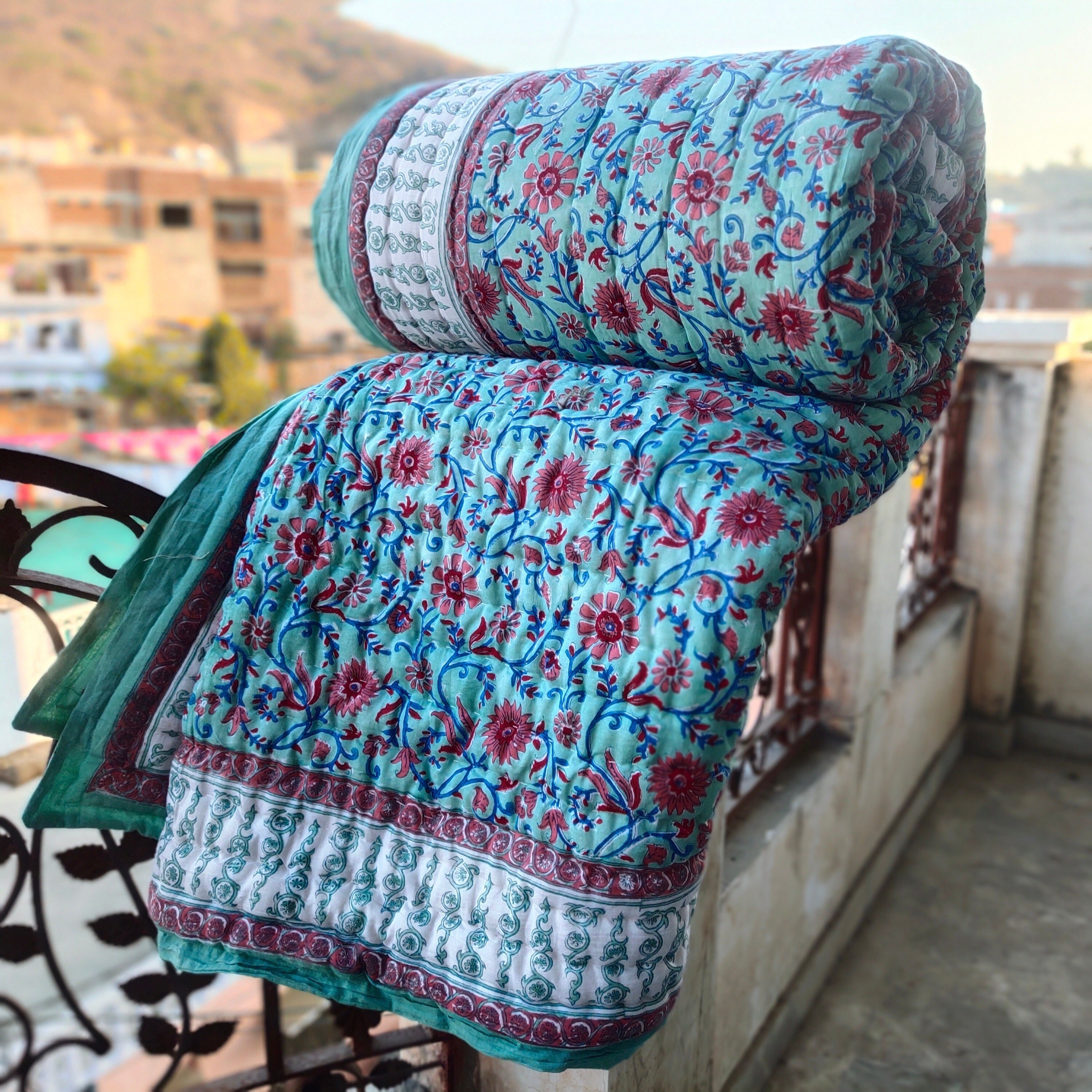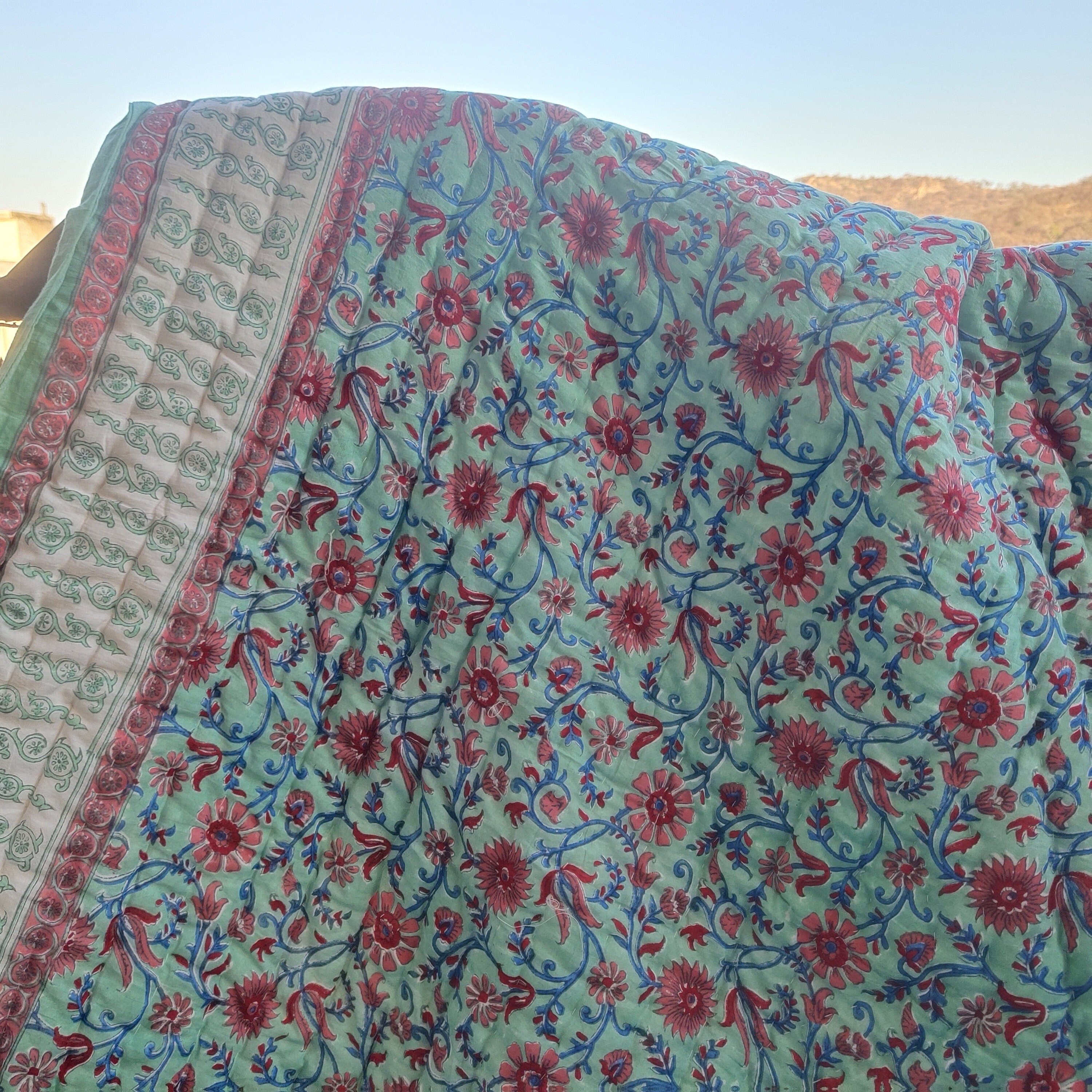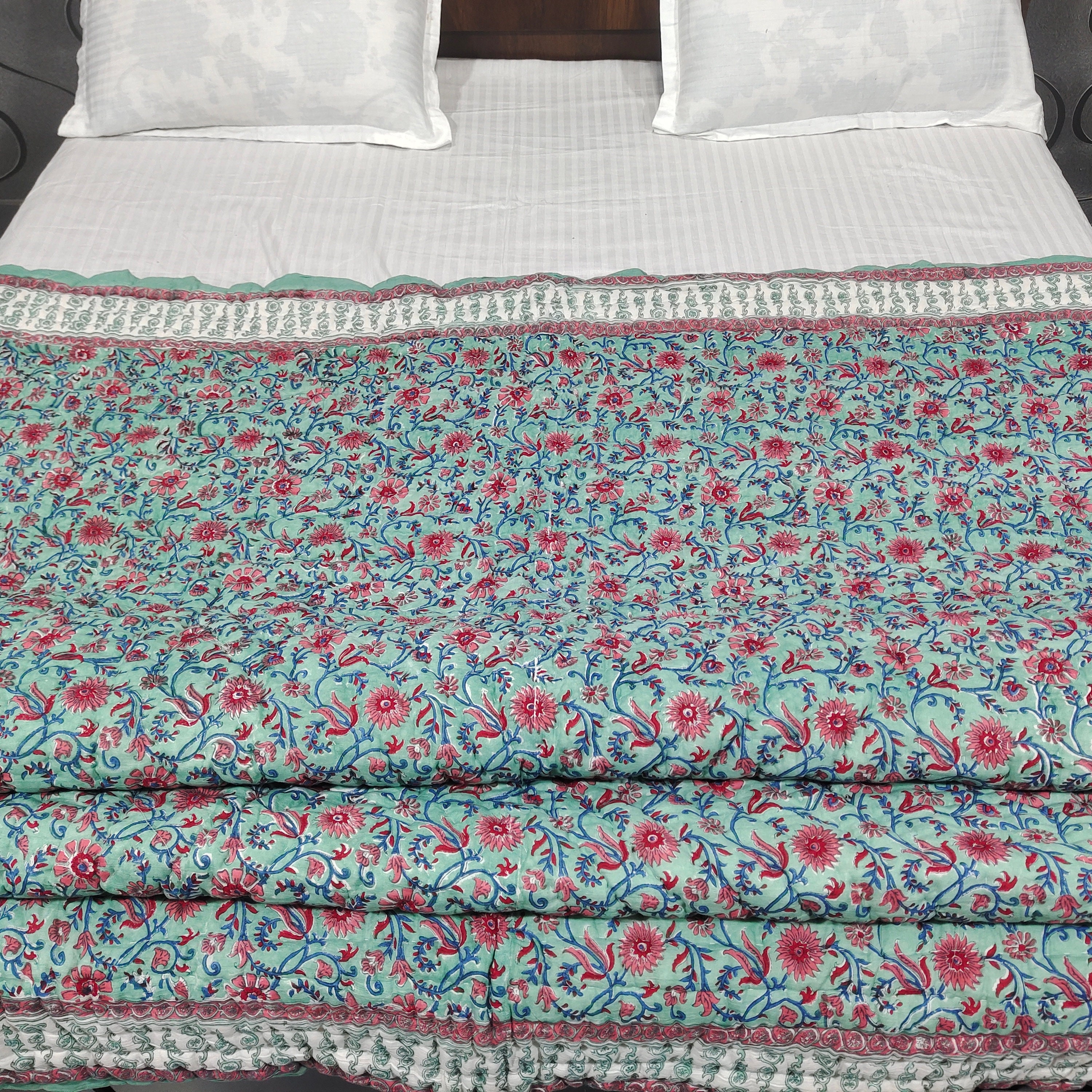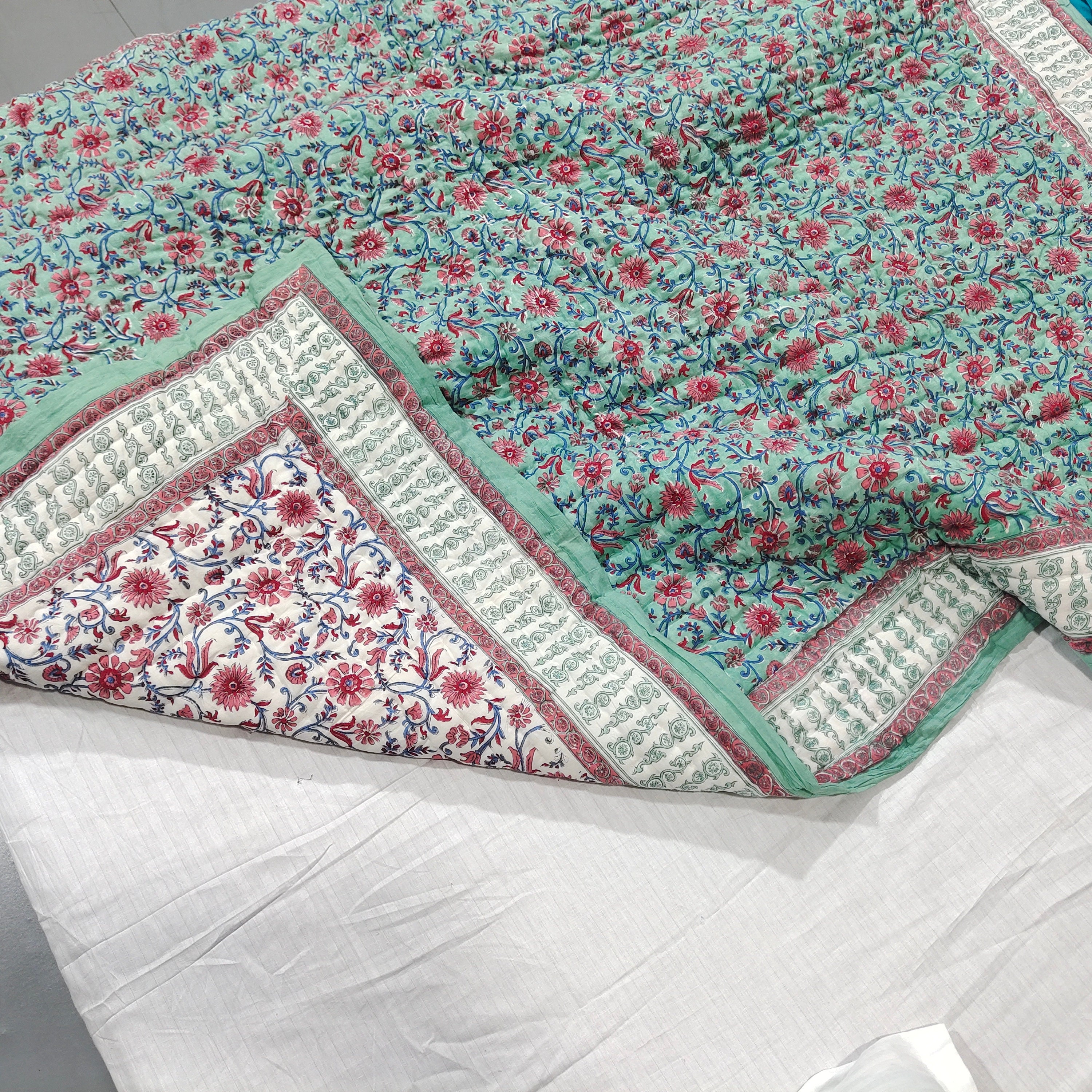 Indulge in the artistry of traditional craftsmanship with our exquisite Hand Stitched Hand Block Print Quilt. Each quilt is a masterpiece