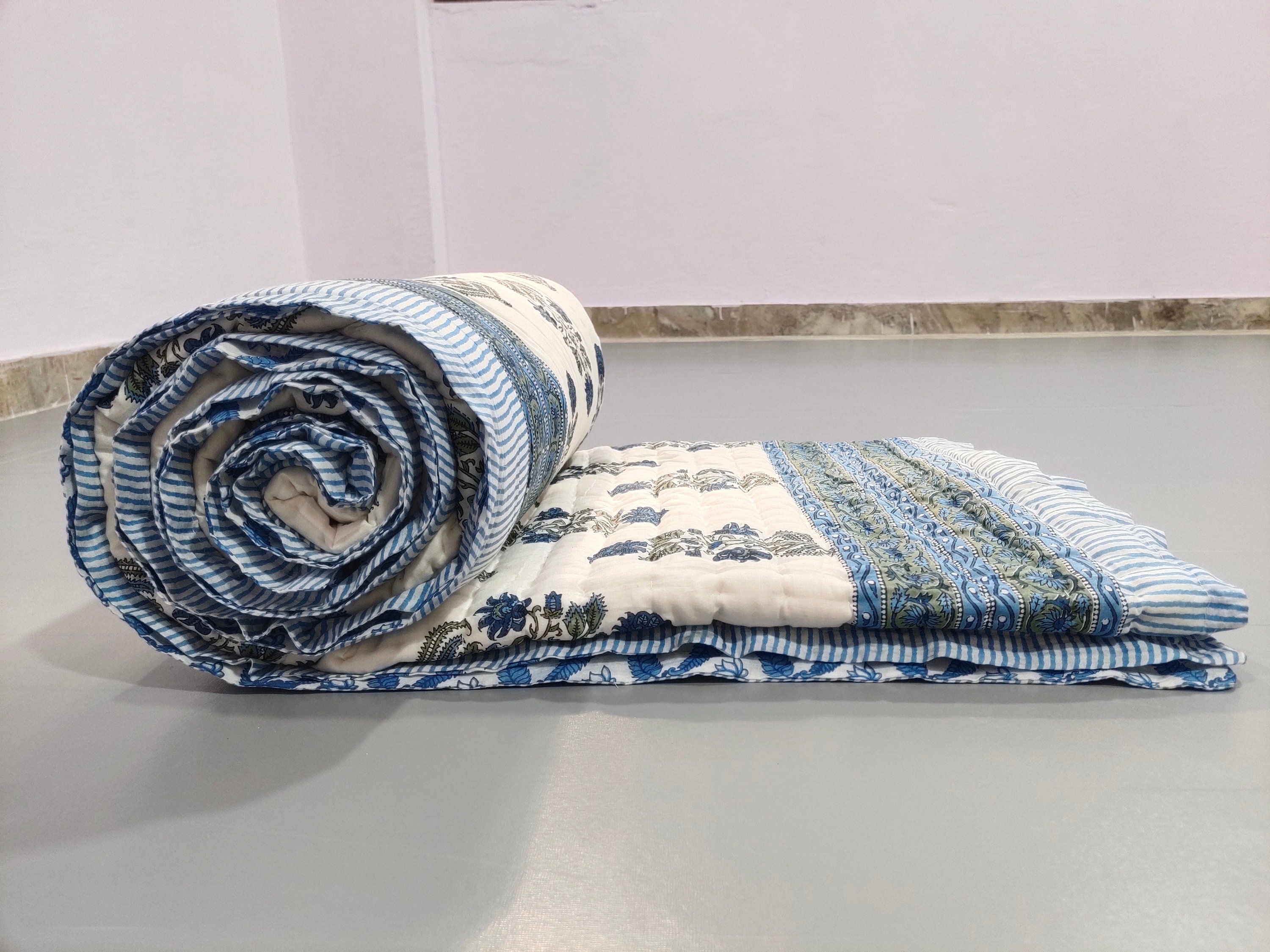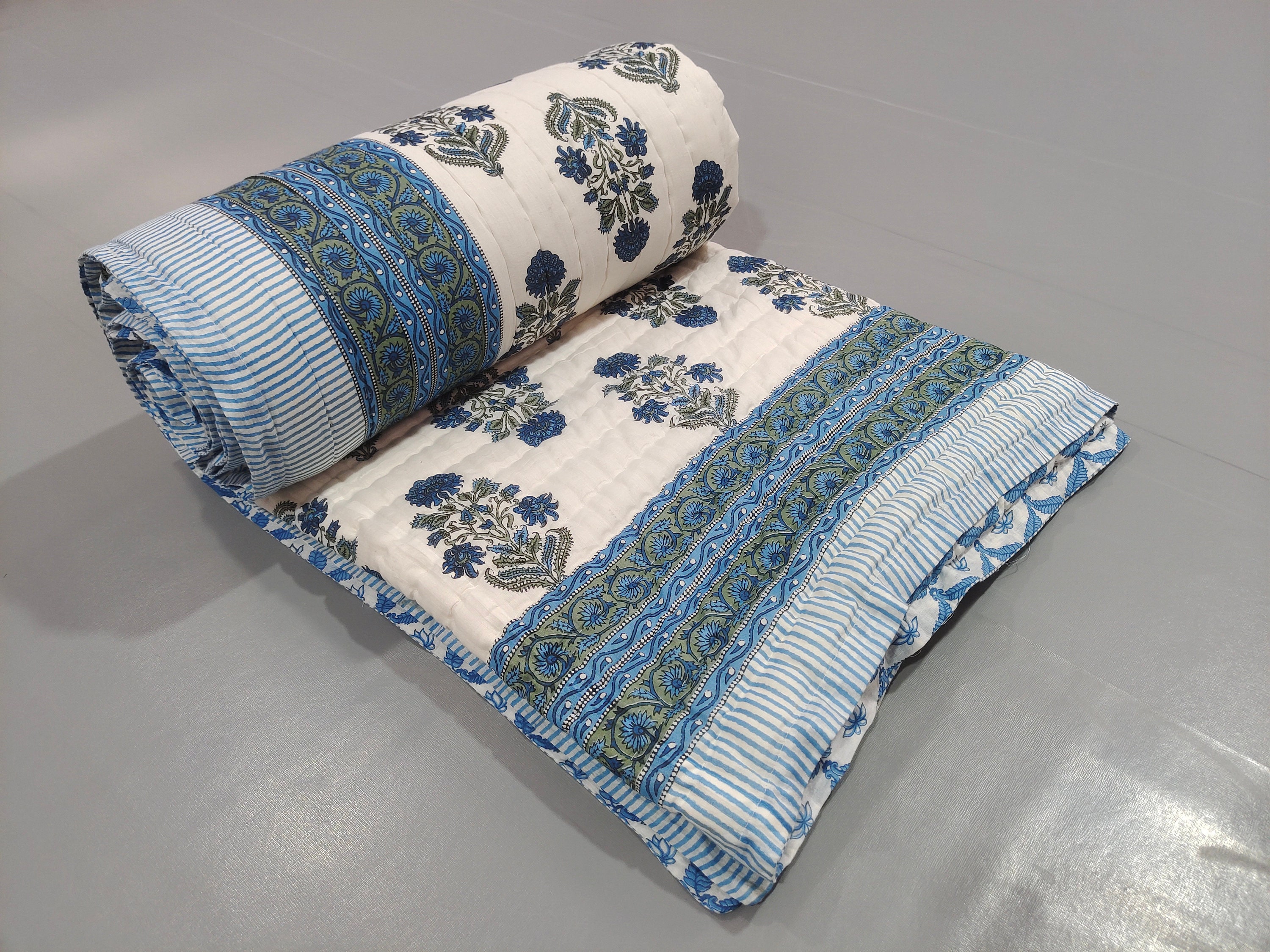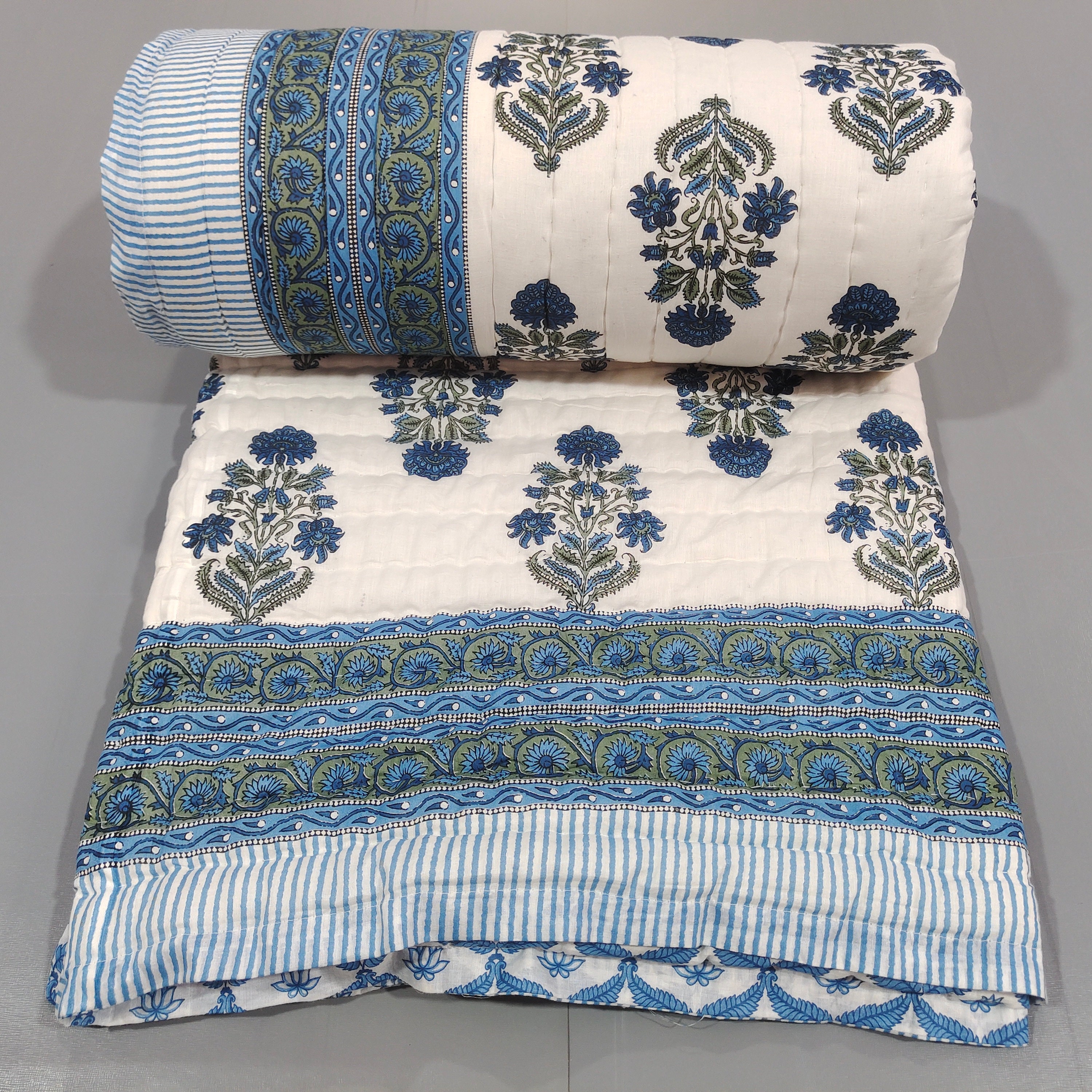 Indulge in the artistry of traditional craftsmanship with our exquisite Hand Stitched Hand Block Print Quilt. Each quilt is a masterpiece of skill and creativity, meticulously crafted by skilled artisans in Jaipur, India. From the intricate hand block printing to the careful stitching, every step in the process is a labor of love, resulting in a quilt that's as beautiful as it is functional.