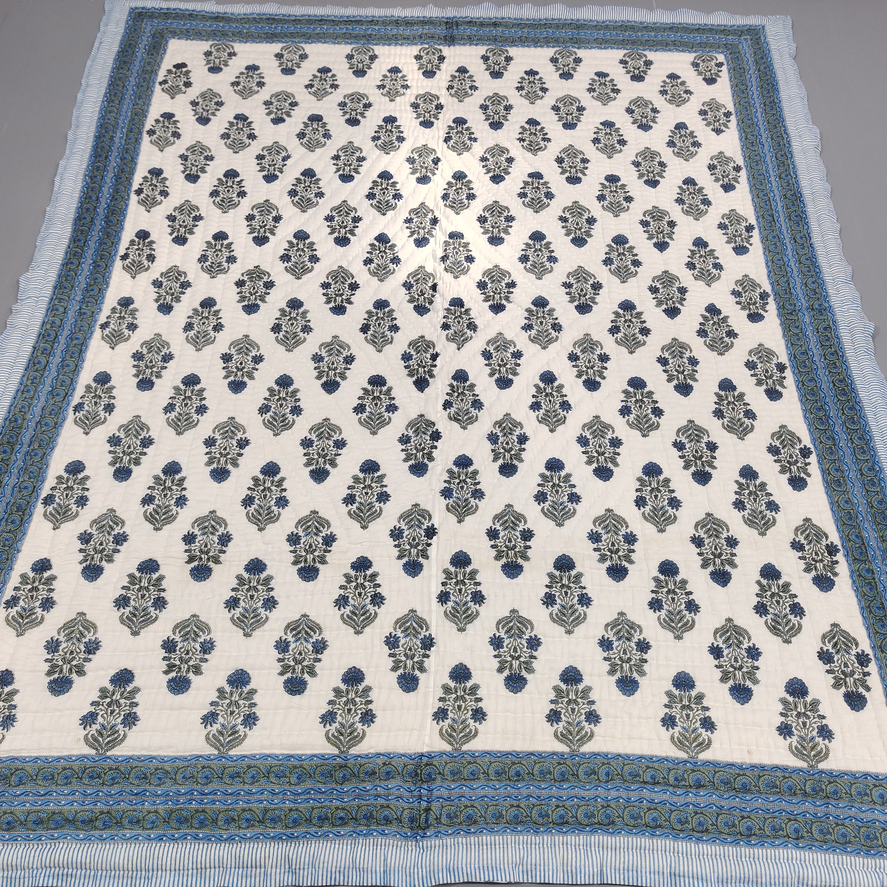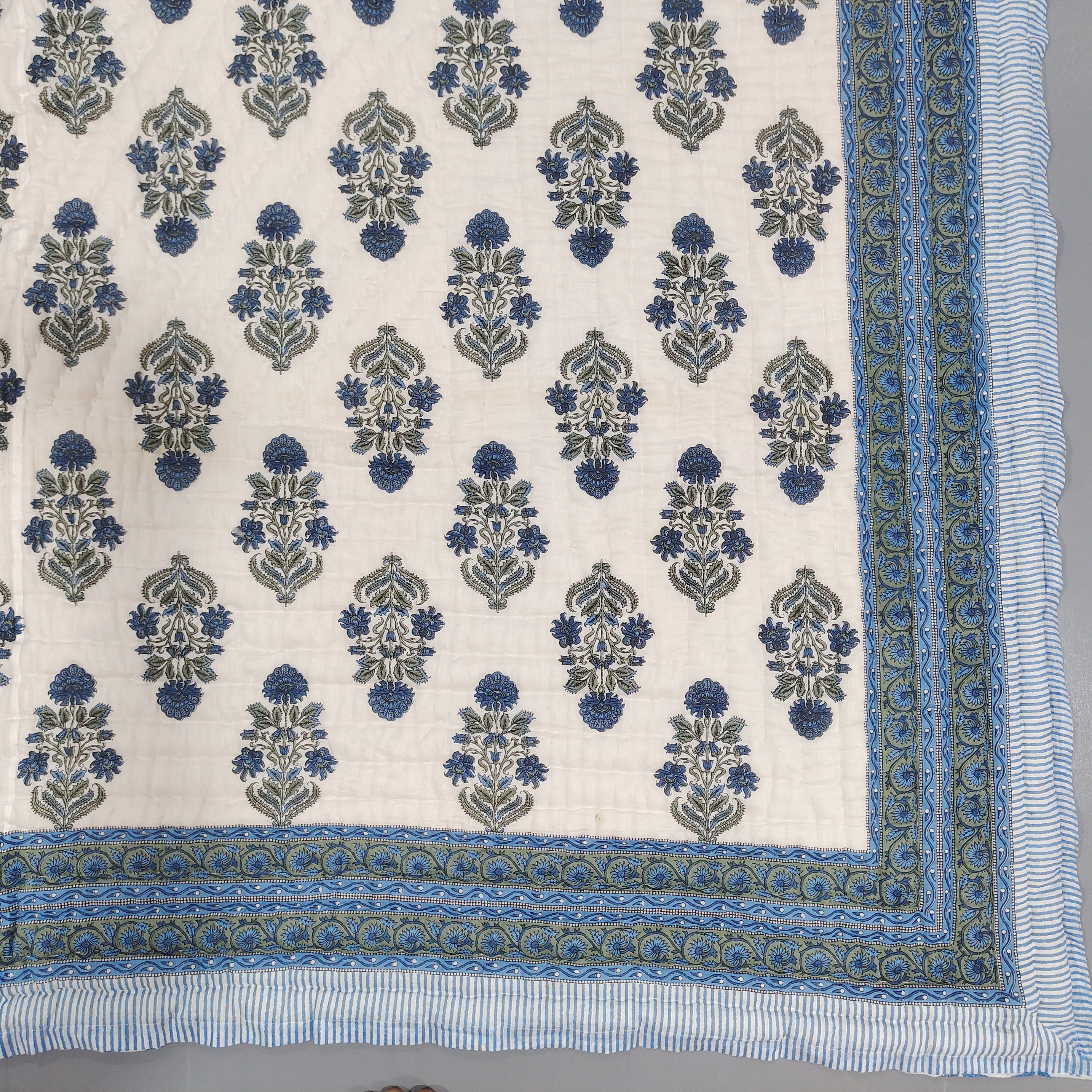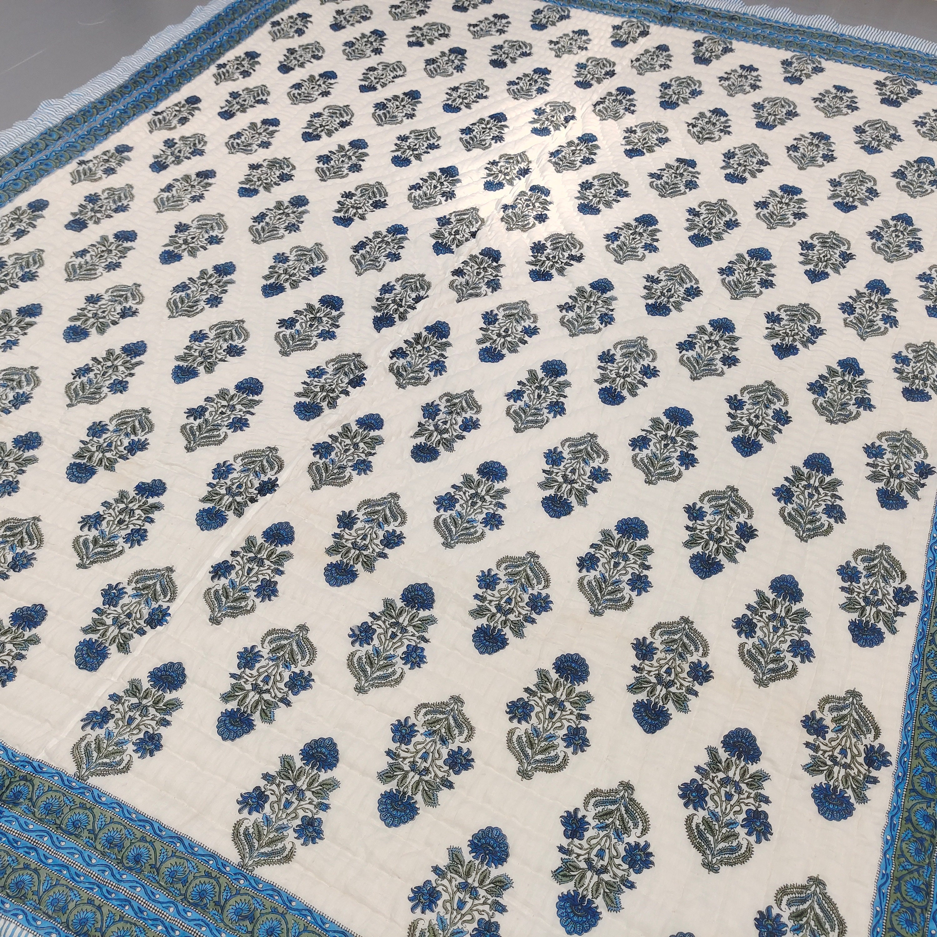 Indulge in the artistry of traditional craftsmanship with our exquisite Hand Stitched Hand Block Print Quilt. Each quilt is a masterpiece of skill and creativity, meticulously crafted by skilled artisans in Jaipur, India. From the intricate hand block printing to the careful stitching, every step in the process is a labor of love, resulting in a quilt that's as beautiful as it is functional.