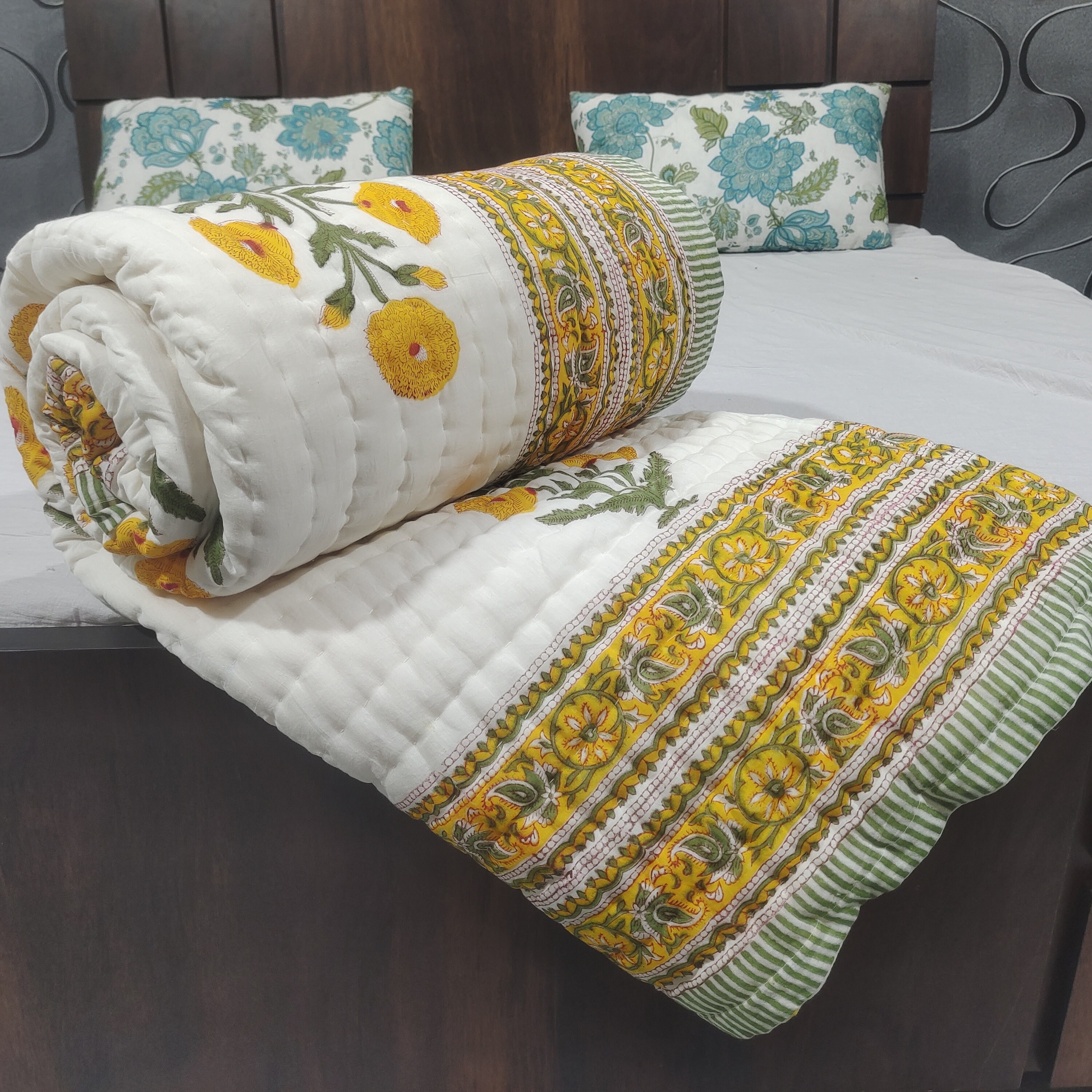 Premium Materials: Crafted from high-quality cotton, our quilts offer luxurious softness and comfort for a restful night's sleep.