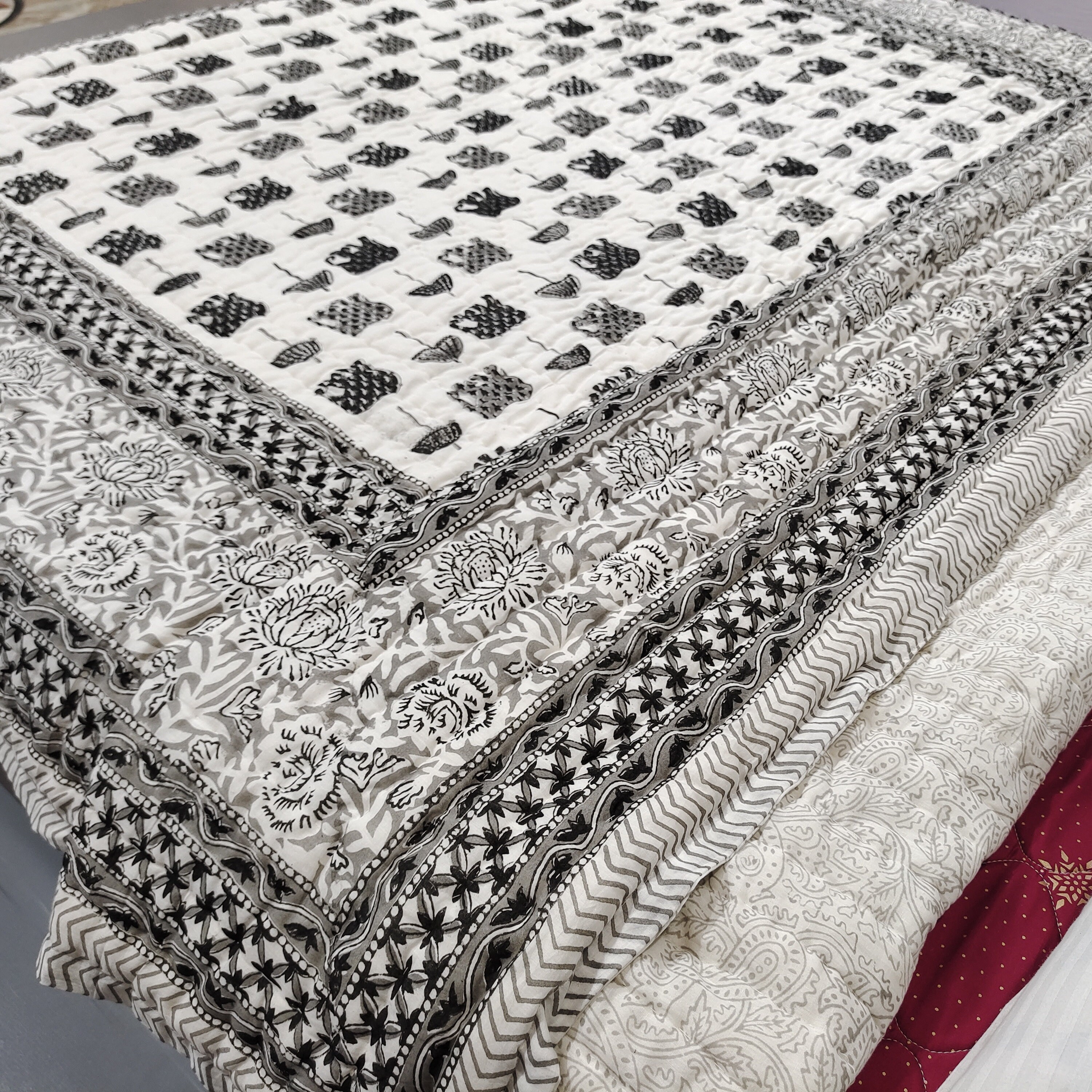Beautiful Cotton Quilts Hand Block Printed with Hand Stitching Quilts
