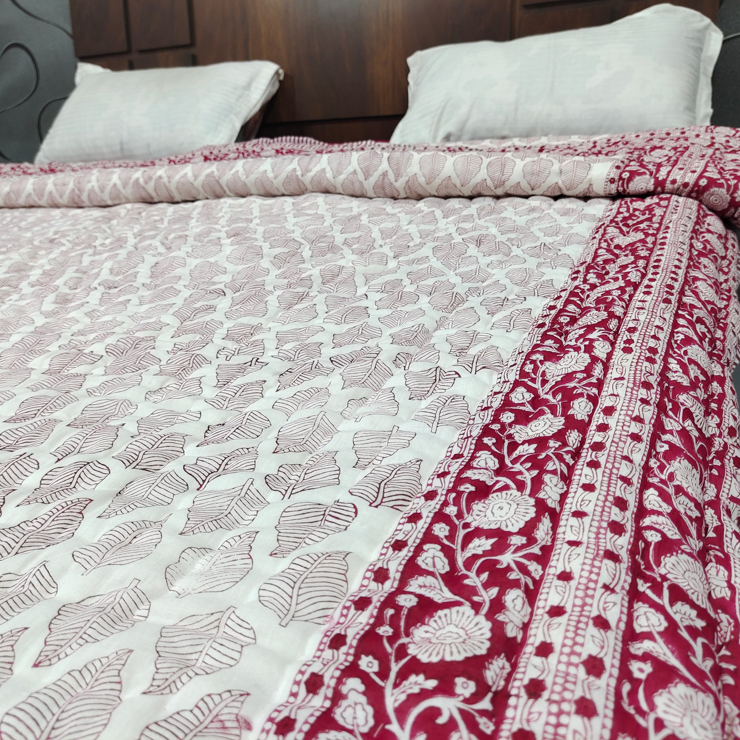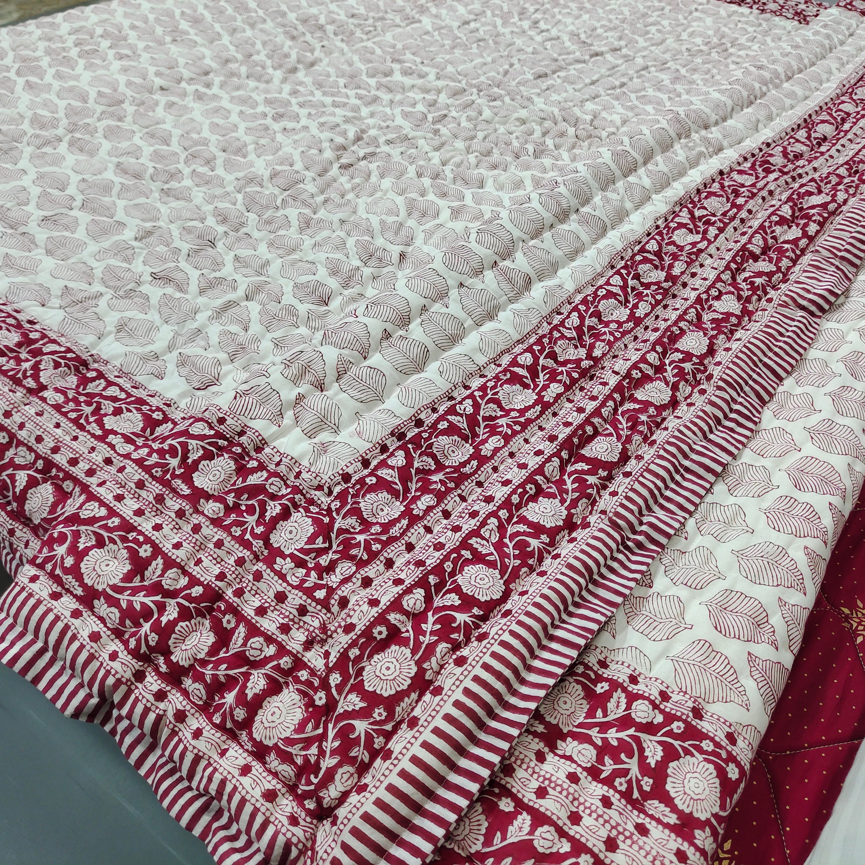 Indulge in the artistry of traditional craftsmanship with our exquisite Hand Stitched Hand Block Print Quilt. Each quilt is a masterpiece of skill and creativity, meticulously crafted by skilled artisans in Jaipur, India. From the intricate hand block printing to the careful stitching, every step in the process is a labor of love, resulting in a quilt that's as beautiful as it is functional.