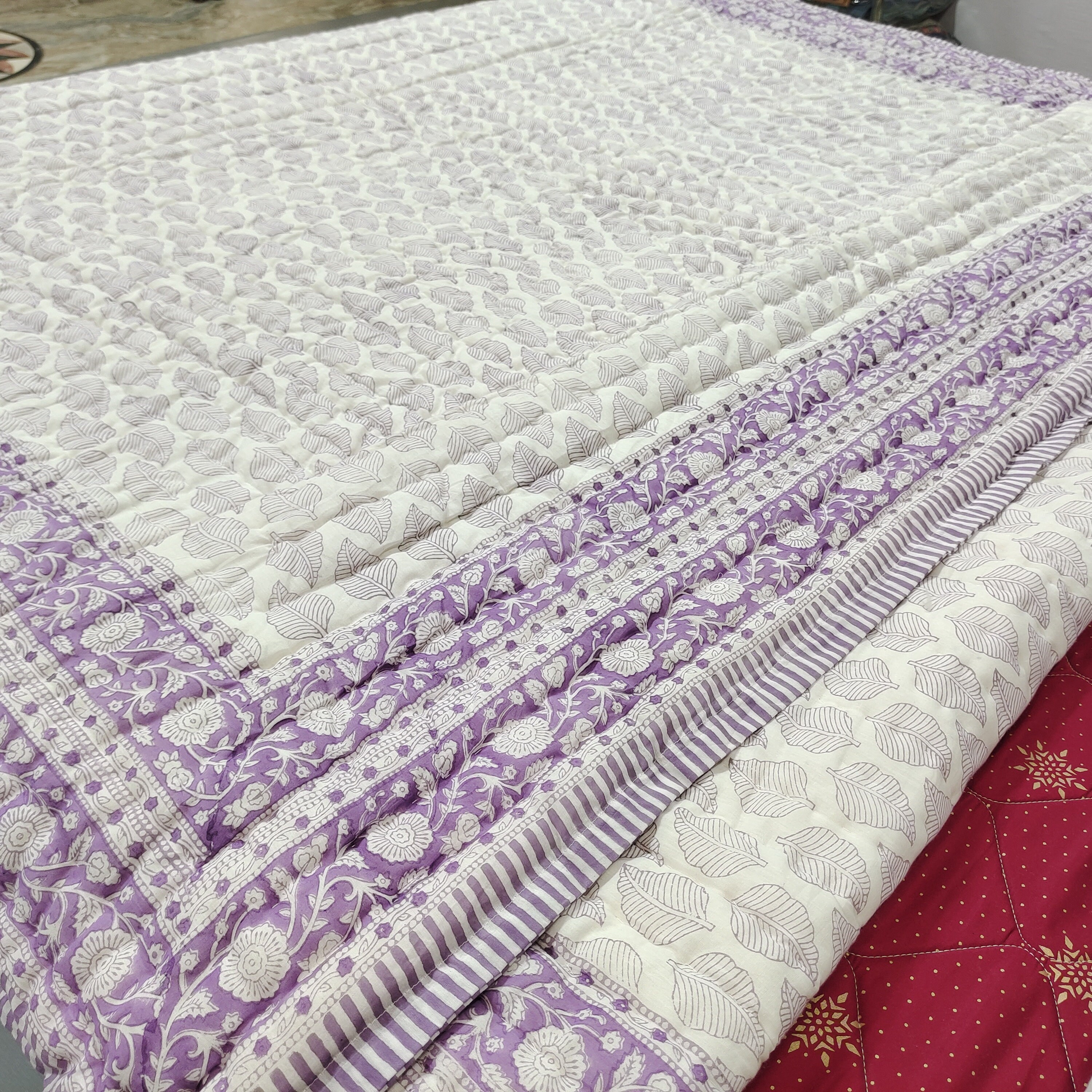 Indulge in the artistry of traditional craftsmanship with our exquisite Hand Stitched Hand Block Print Quilt. Each quilt is a masterpiece of skill and creativity, meticulously crafted by skilled artisans in Jaipur, India. From the intricate hand block printing to the careful stitching, every step in the process is a labor of love, resulting in a quilt that's as beautiful as it is functional.
