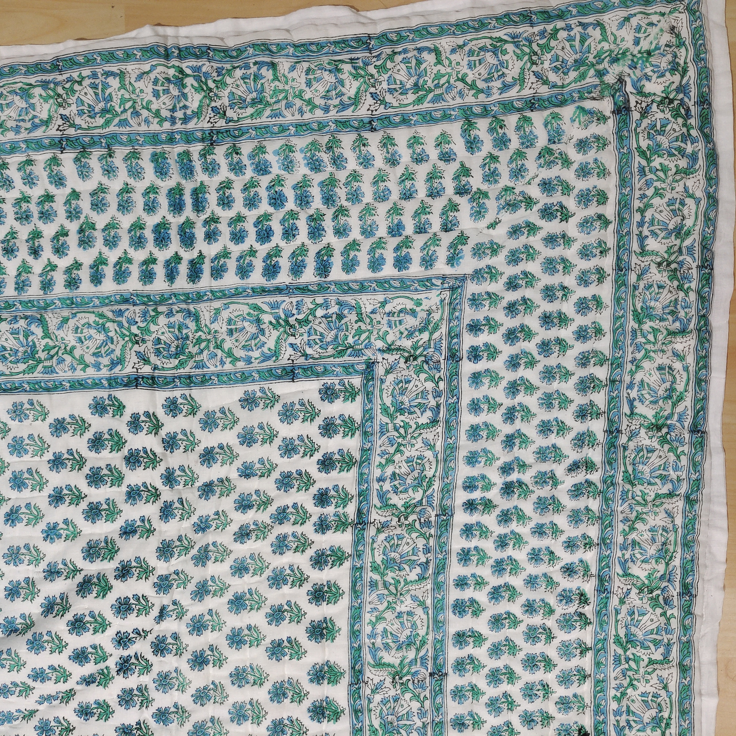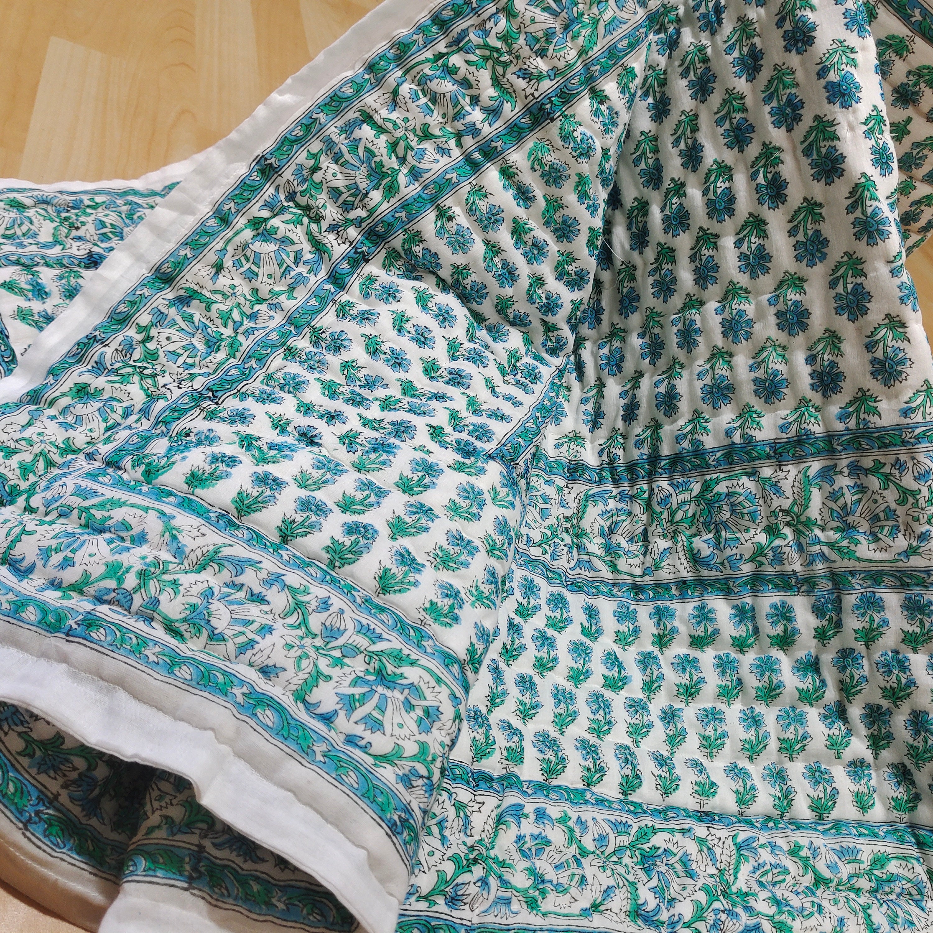 The art of block printing, a time-honored technique, involves skilled artisans carving intricate patterns onto wooden blocks. These blocks are then dipped in natural dyes and pressed onto the fabric, creating visually captivating designs that tell stories of heritage and tradition. The result is a quilt that not only serves a functional purpose but also stands as a piece of art with cultural depth.