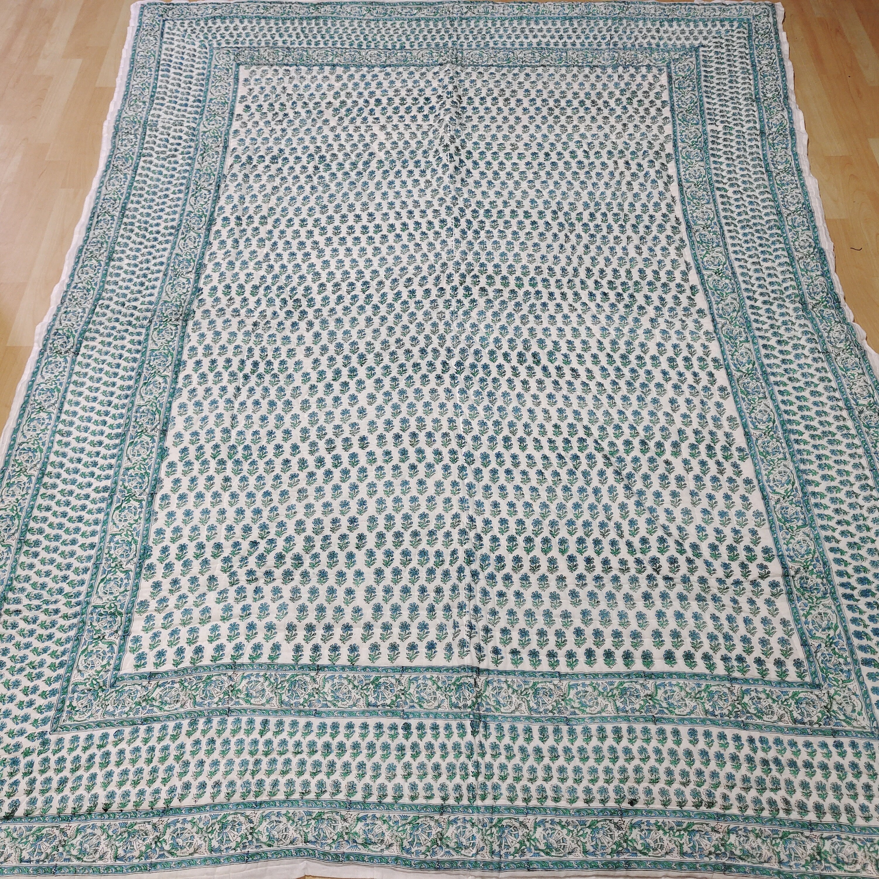 block print hand-stitched razais(quilts), filled with loose natural cotton and featuring fine hand-stitched quilting and reversible prints, embody a harmonious blend of tradition, craftsmanship, and modern sensibility. These quilts are not just pieces of bedding; they are cultural artifacts that encapsulate stories, honor craftsmanship, and provide a luxurious and sustainable embrace. As you wrap yourself in the warmth of these razais(quilts), you not only experience comfort but also connect with a legacy that transcends time and trends.International Shipping & Customs Notice We are proud to ship our handmade cotton quilts worldwide from Jaipur, India. Please be advised: