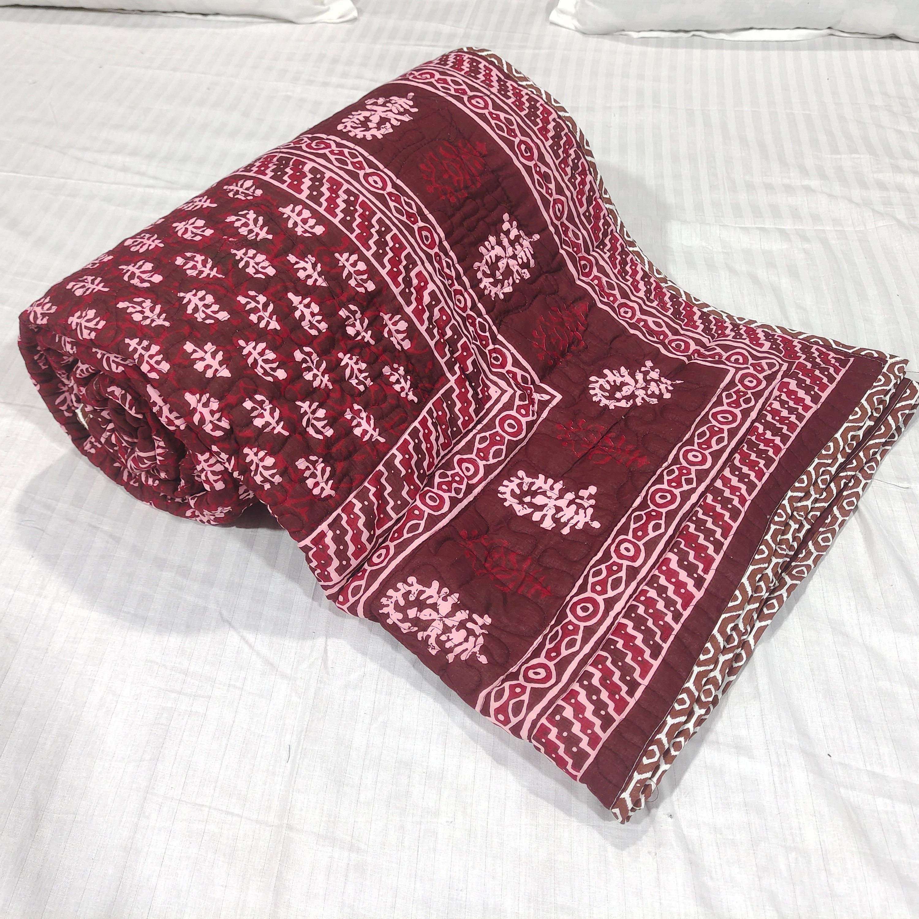 Indulge in the artistry of traditional craftsmanship with our exquisite Hand Stitched Hand Block Print Quilt. Each quilt is a masterpiece