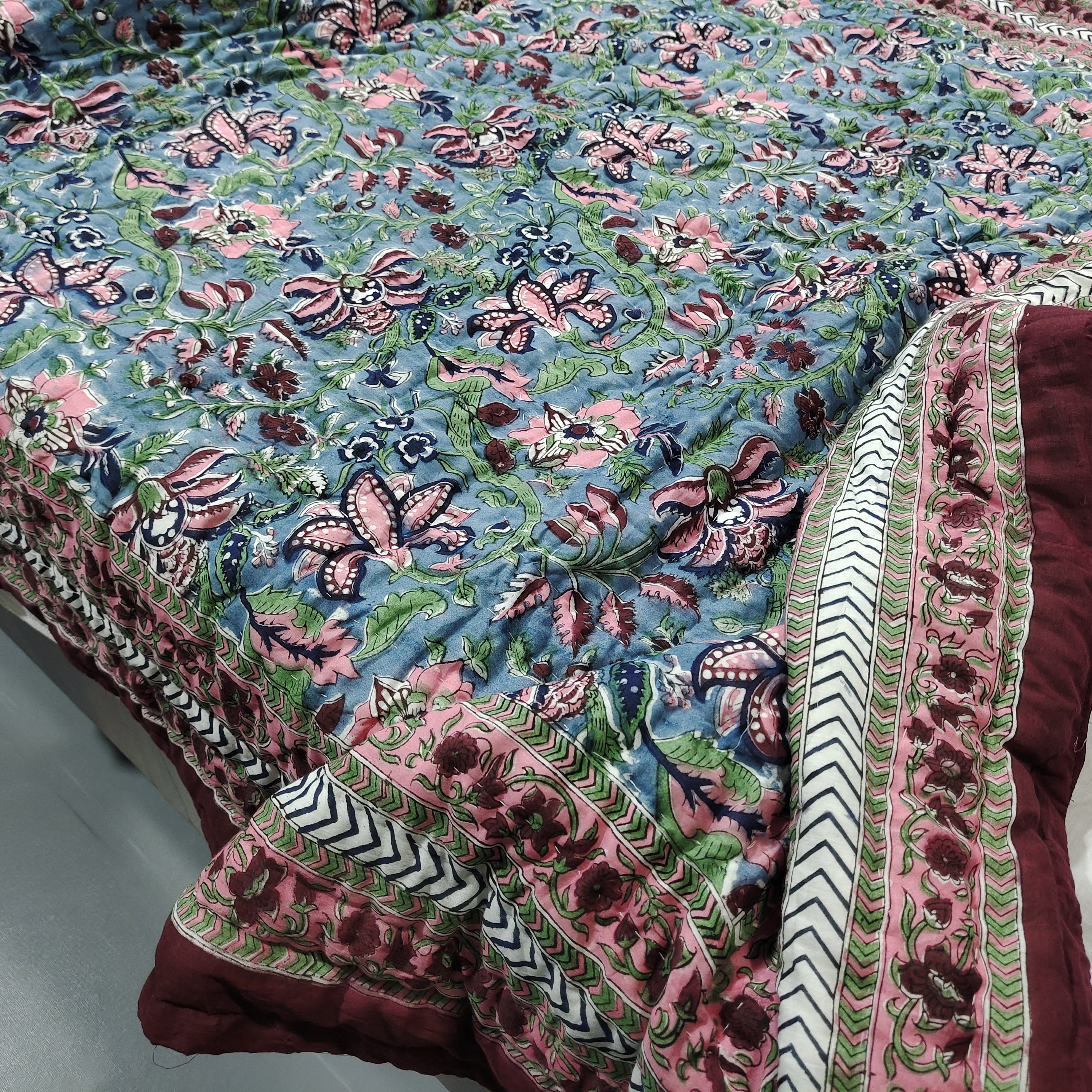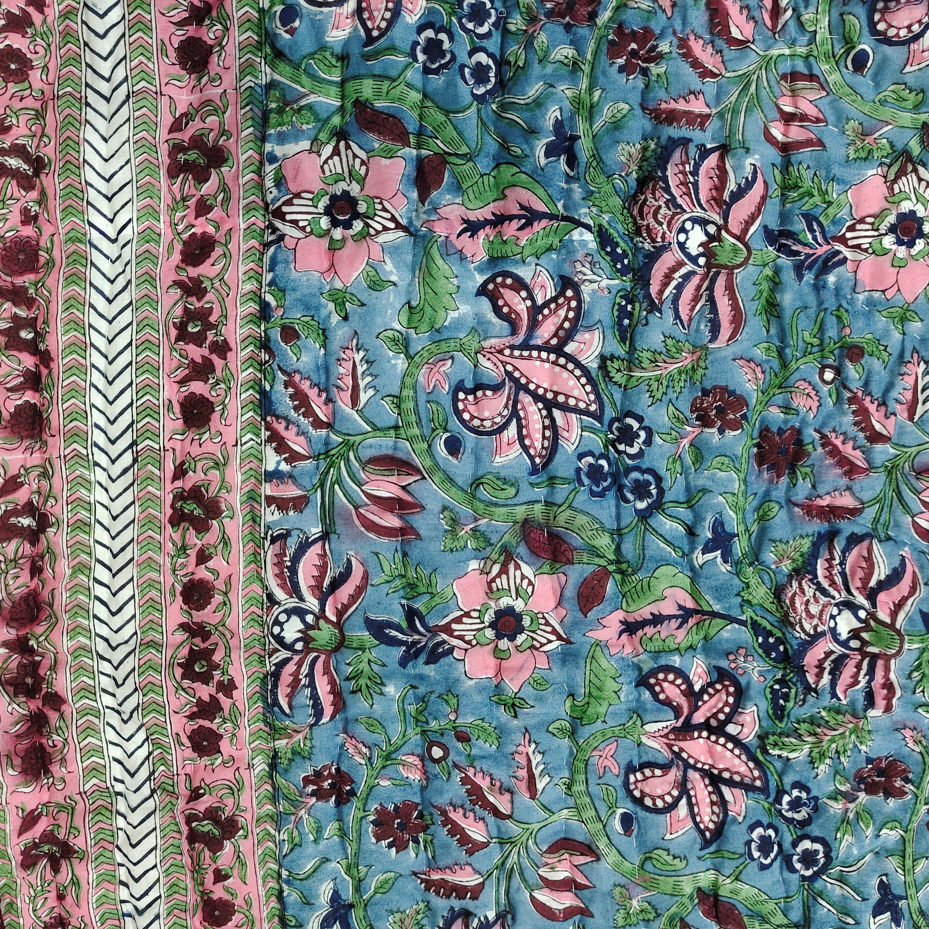 Indulge in the artistry of traditional craftsmanship with our exquisite Hand Stitched Hand Block Print Quilt. Each quilt is a masterpiece of skill and creativity, meticulously crafted by skilled artisans in Jaipur, India. From the intricate hand block printing to the careful stitching, every step in the process is a labor of love, resulting in a quilt that's as beautiful as it is functional.