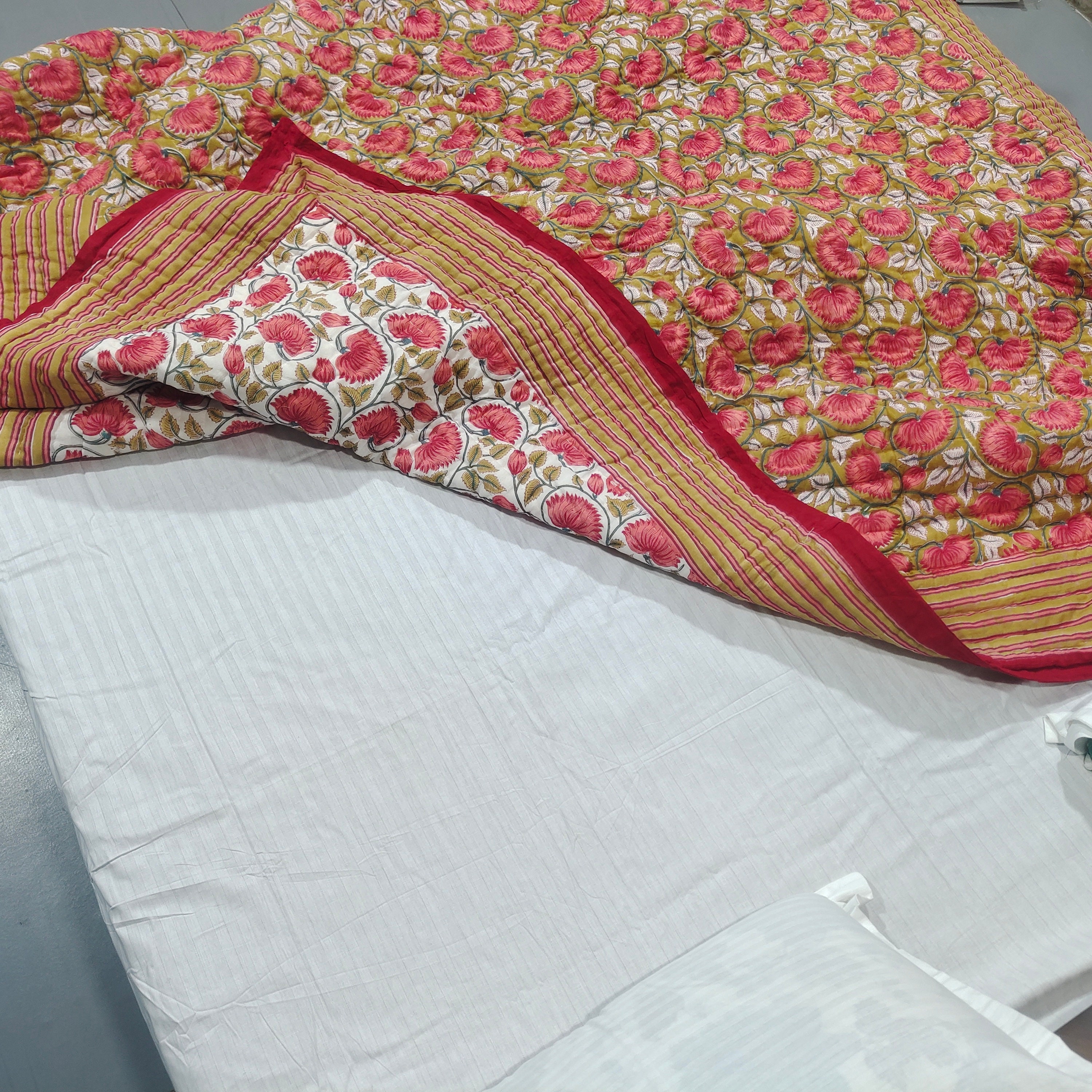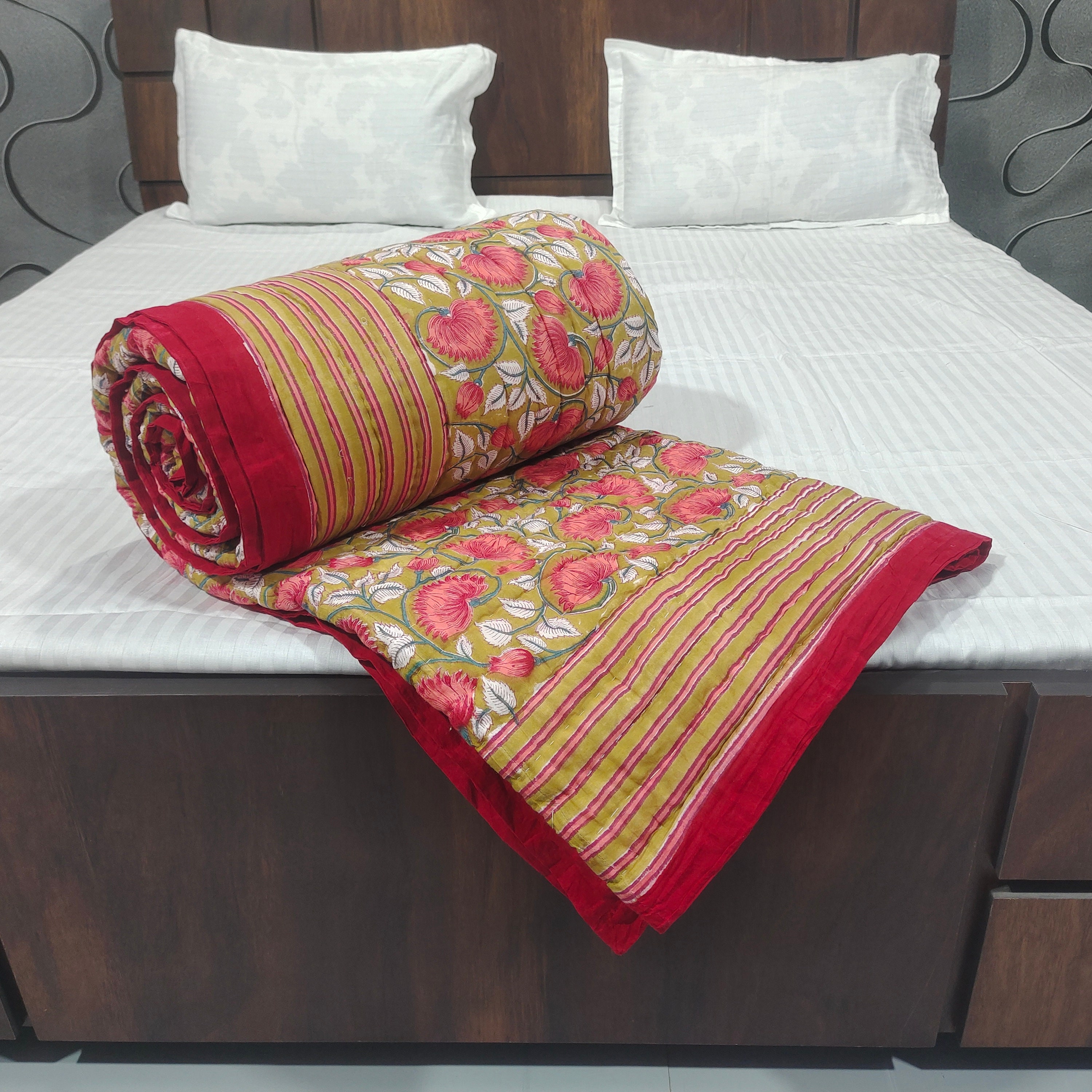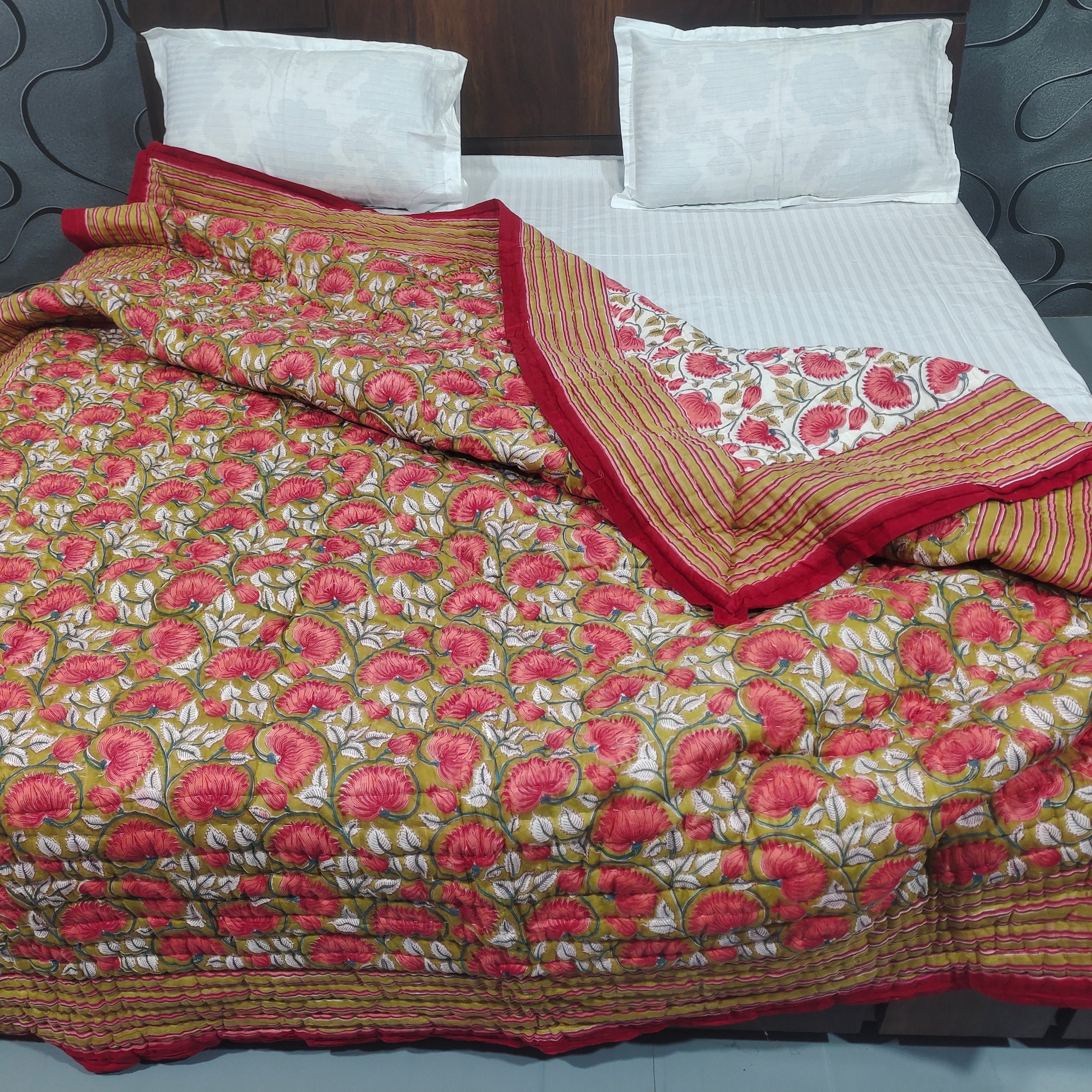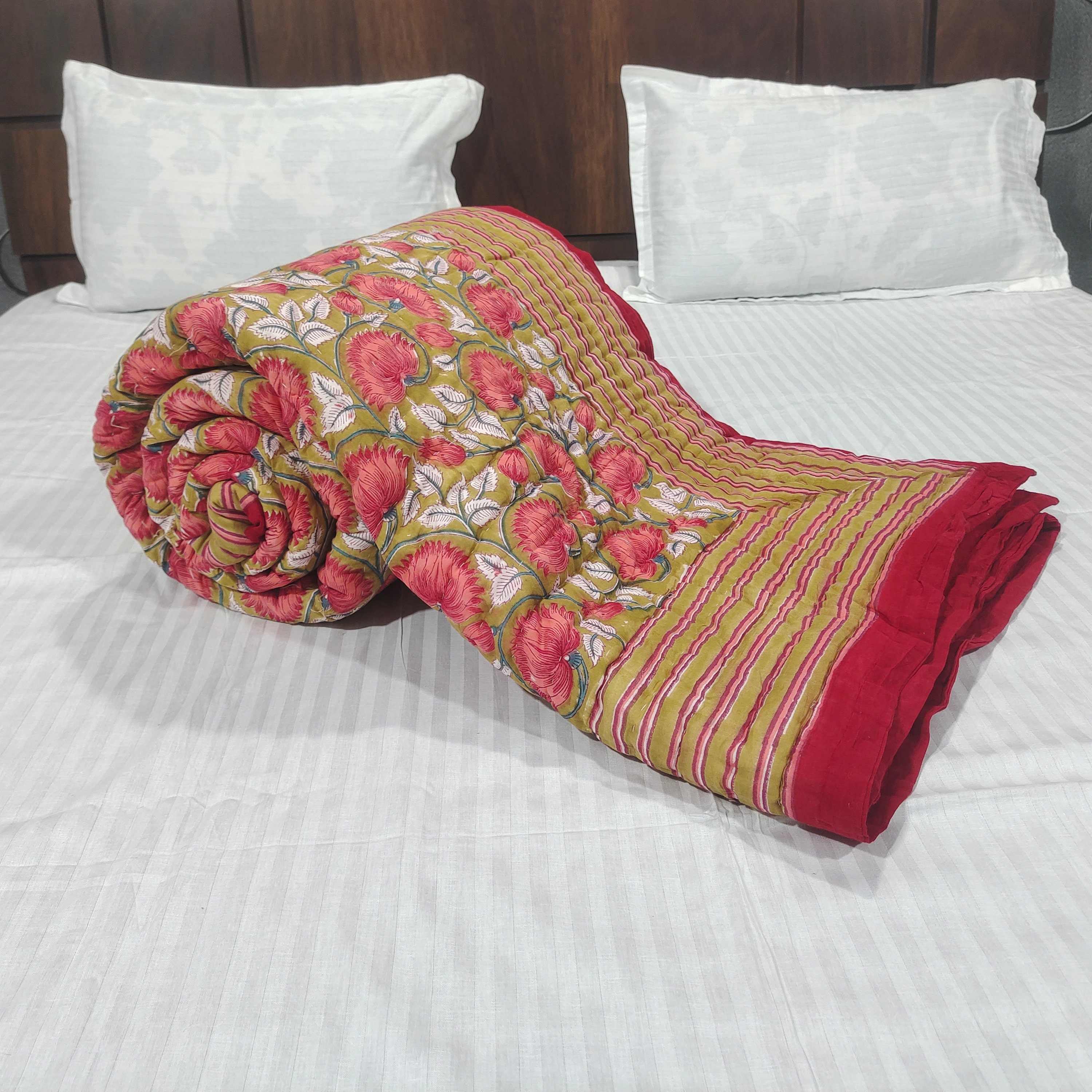 Indulge in the artistry of traditional craftsmanship with our exquisite Hand Stitched Hand Block Print Quilt. Each quilt is a masterpiece of skill and creativity, meticulously crafted by skilled artisans in Jaipur, India. From the intricate hand block printing to the careful stitching, every step in the process is a labor of love, resulting in a quilt that's as beautiful as it is functional.