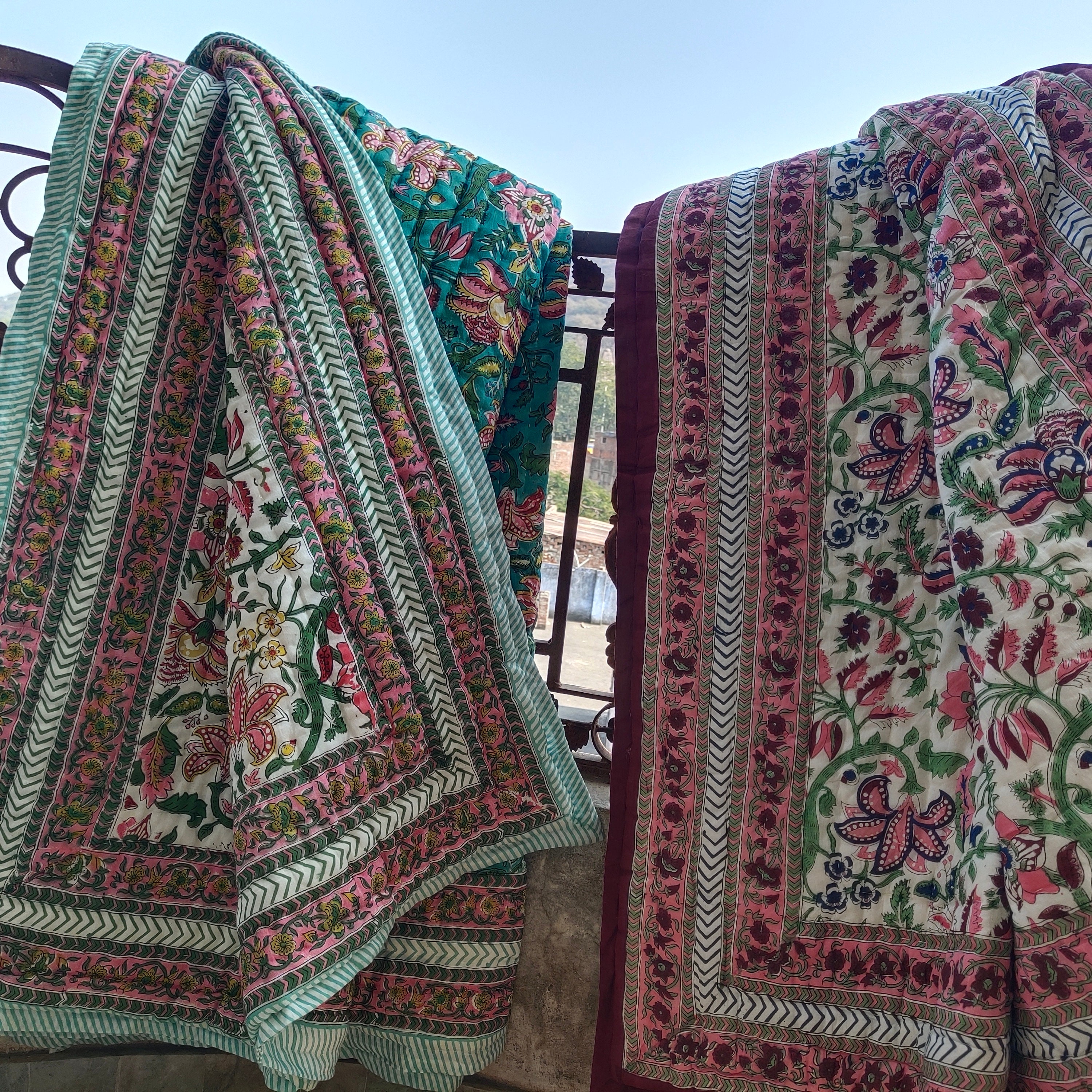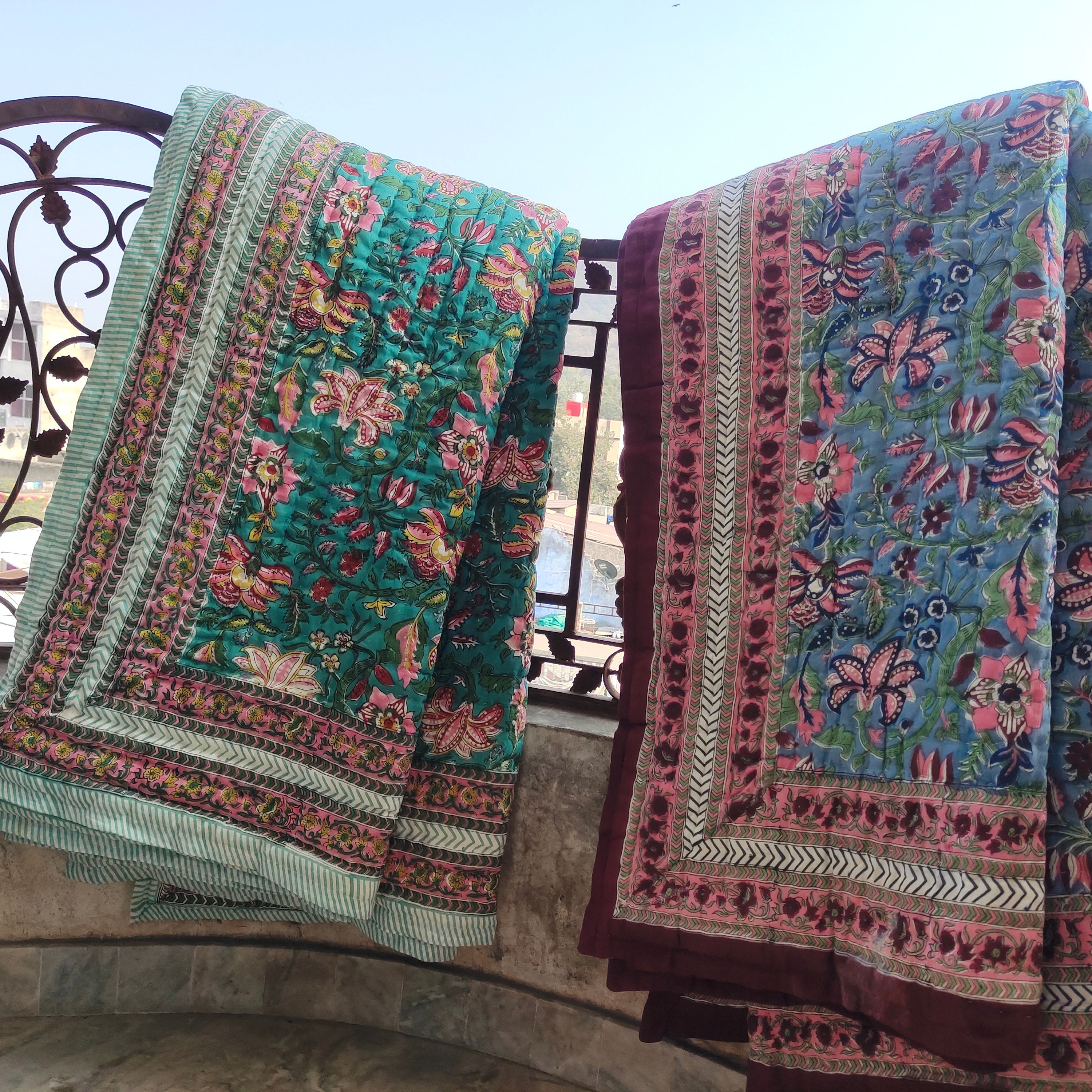 Beautiful Cotton Quilts Hand Block Printed with Hand Stitching Quilts