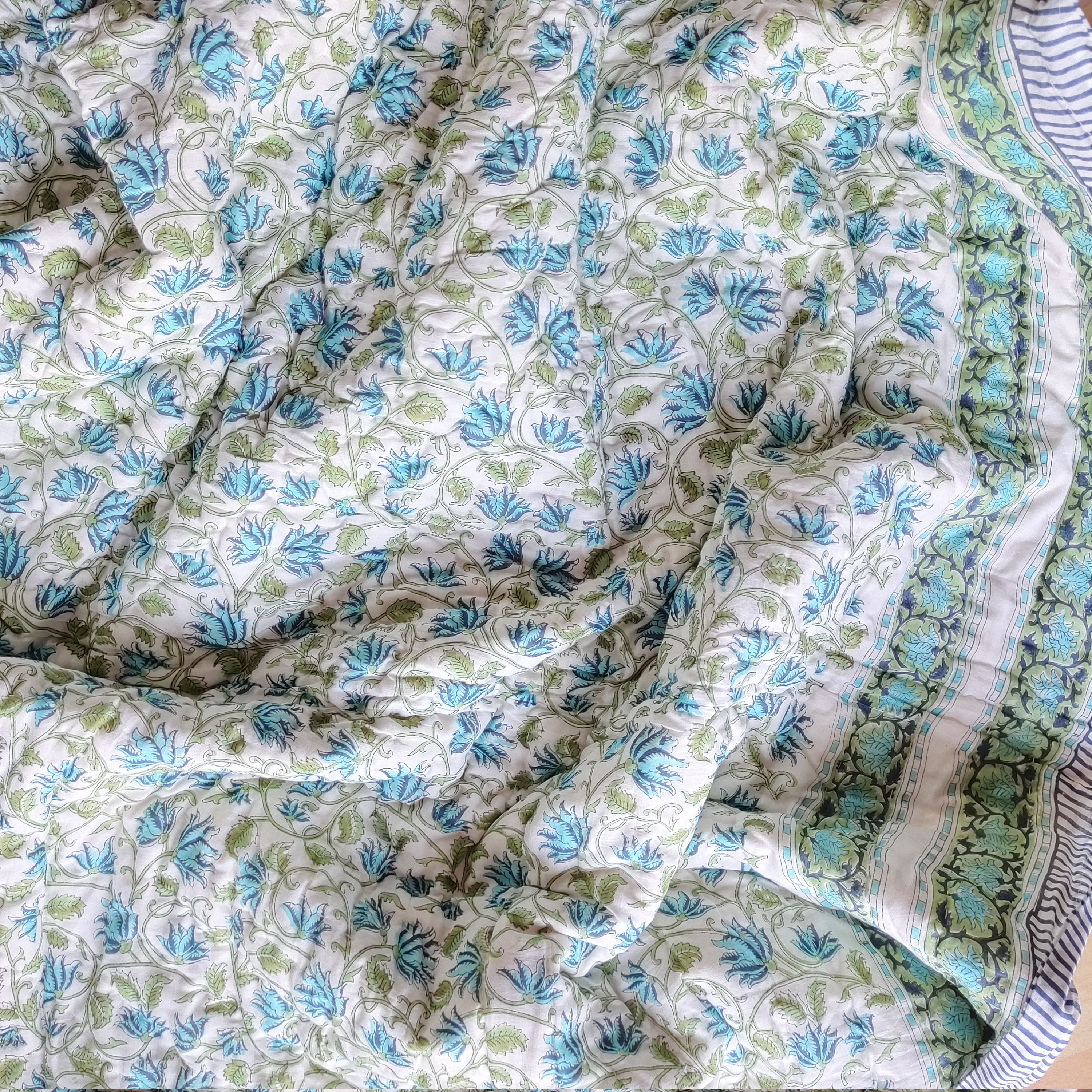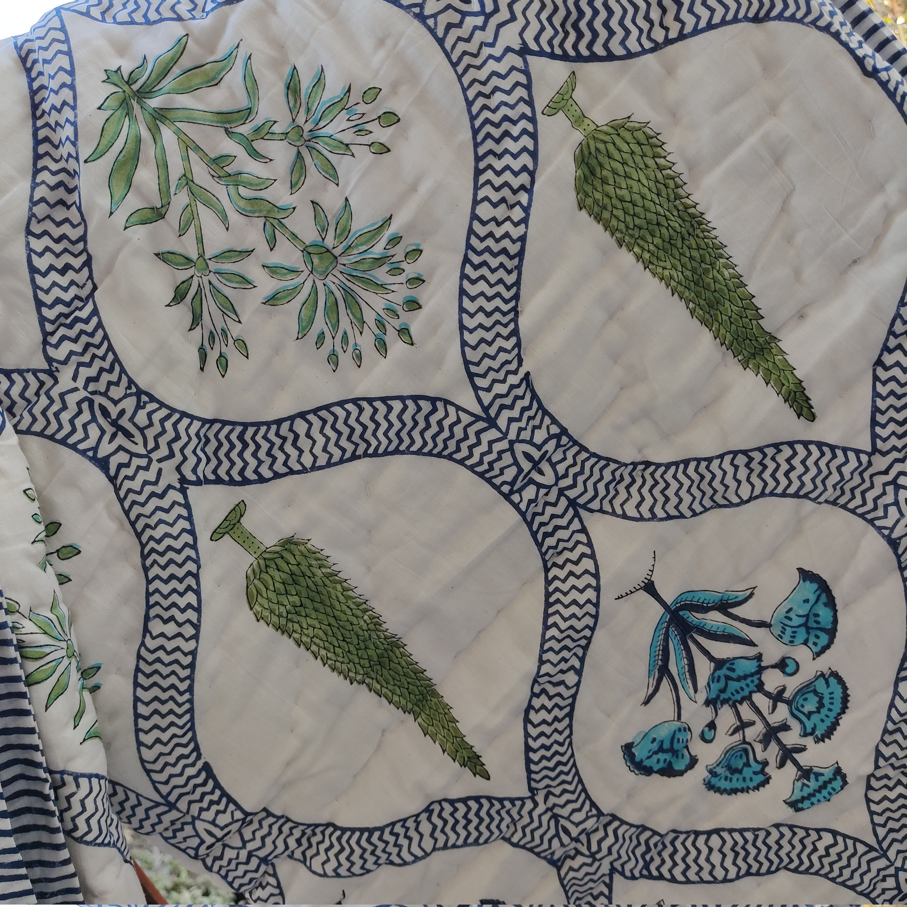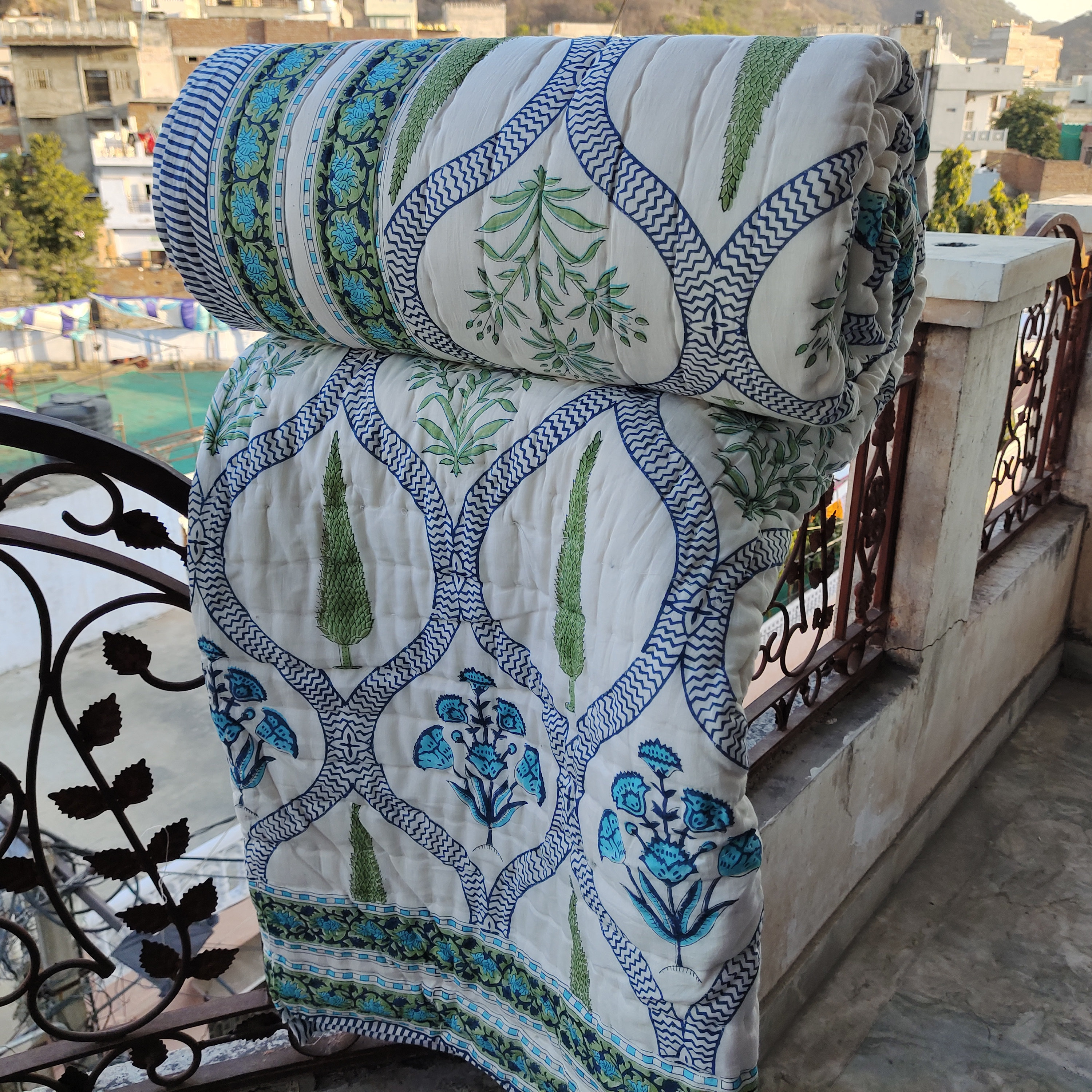Indulge in the artistry of traditional craftsmanship with our exquisite Hand Stitched Hand Block Print Quilt. Each quilt is a masterpiece of skill and creativity, meticulously crafted by skilled artisans in Jaipur, India. From the intricate hand block printing to the careful stitching, every step in the process is a labor of love, resulting in a quilt that's as beautiful as it is functional.