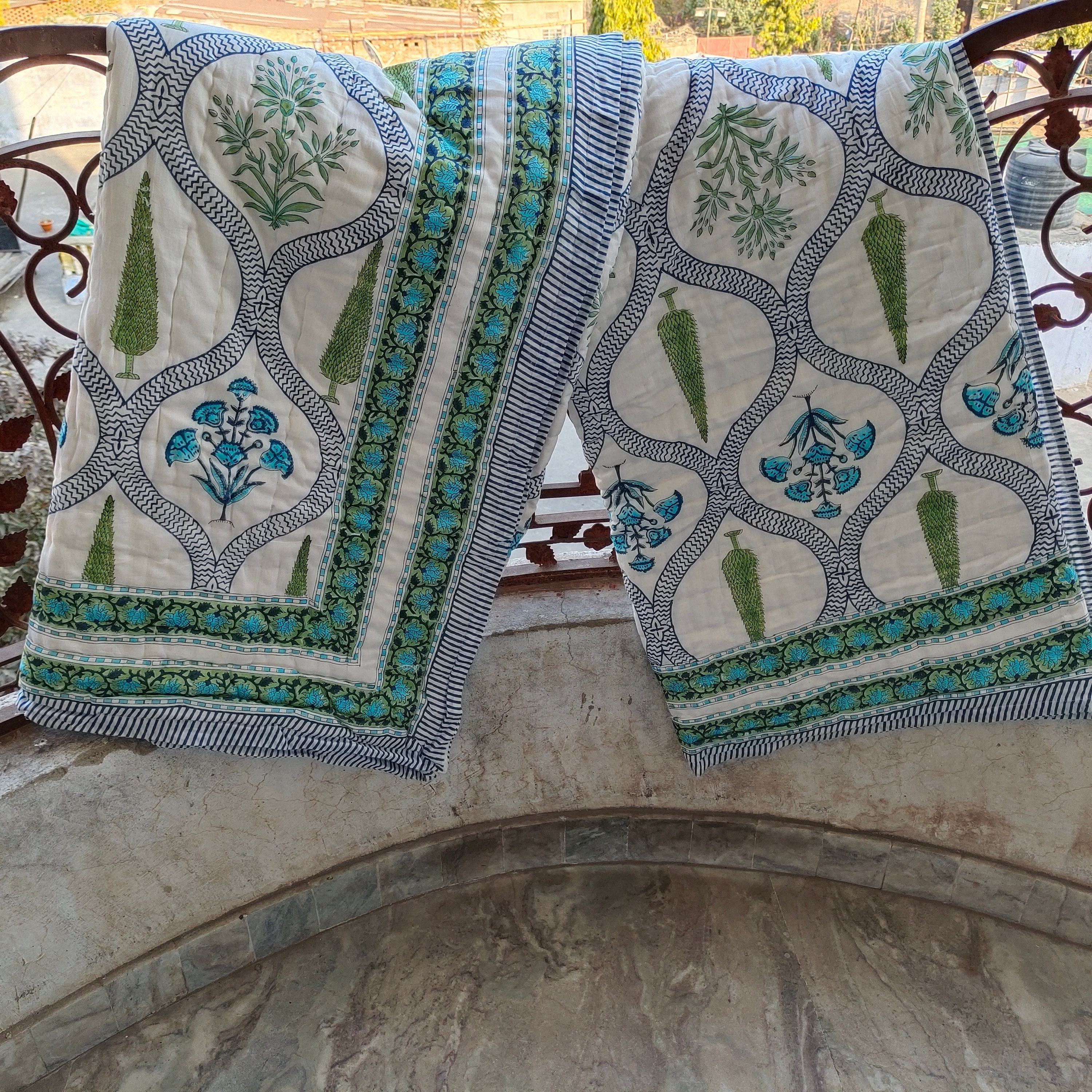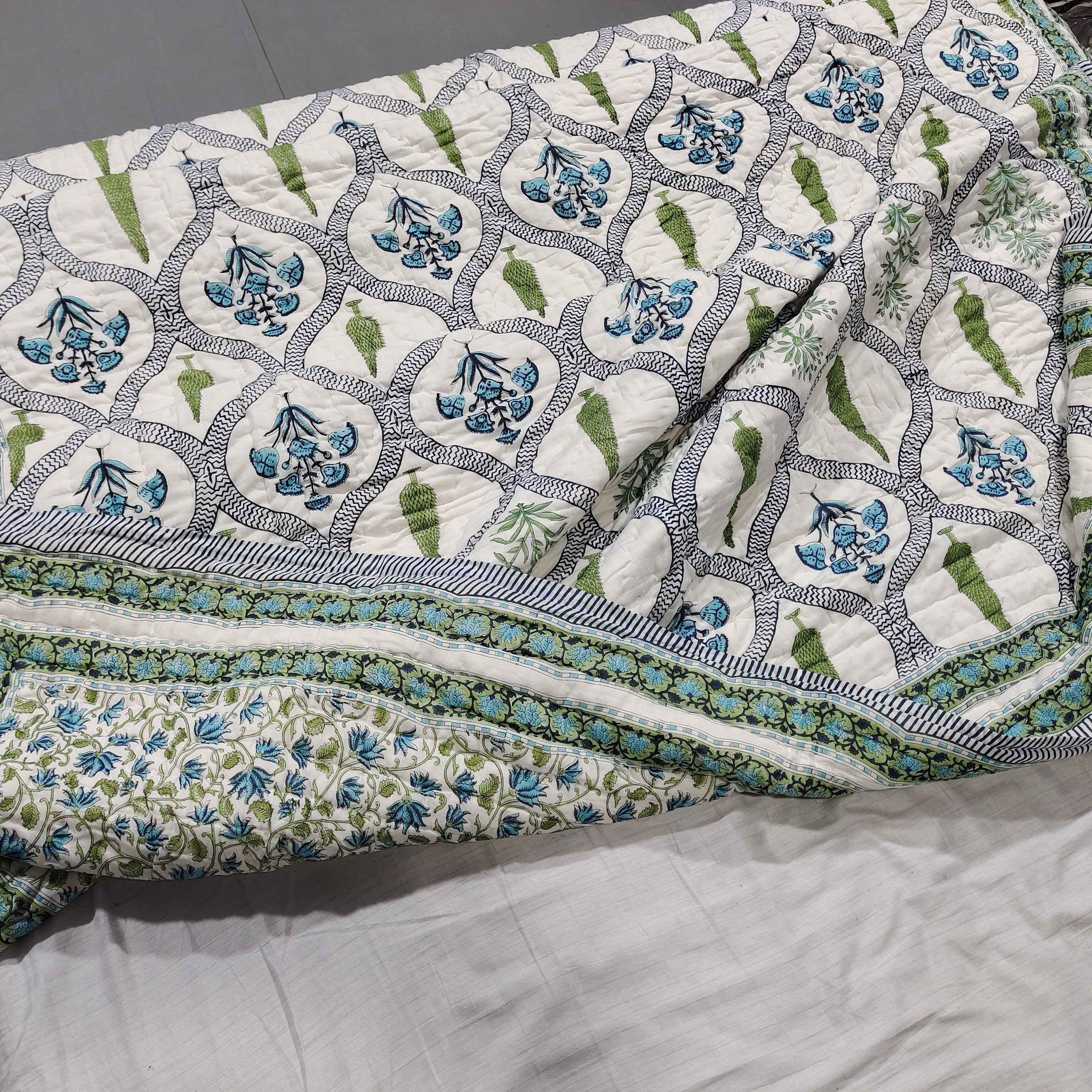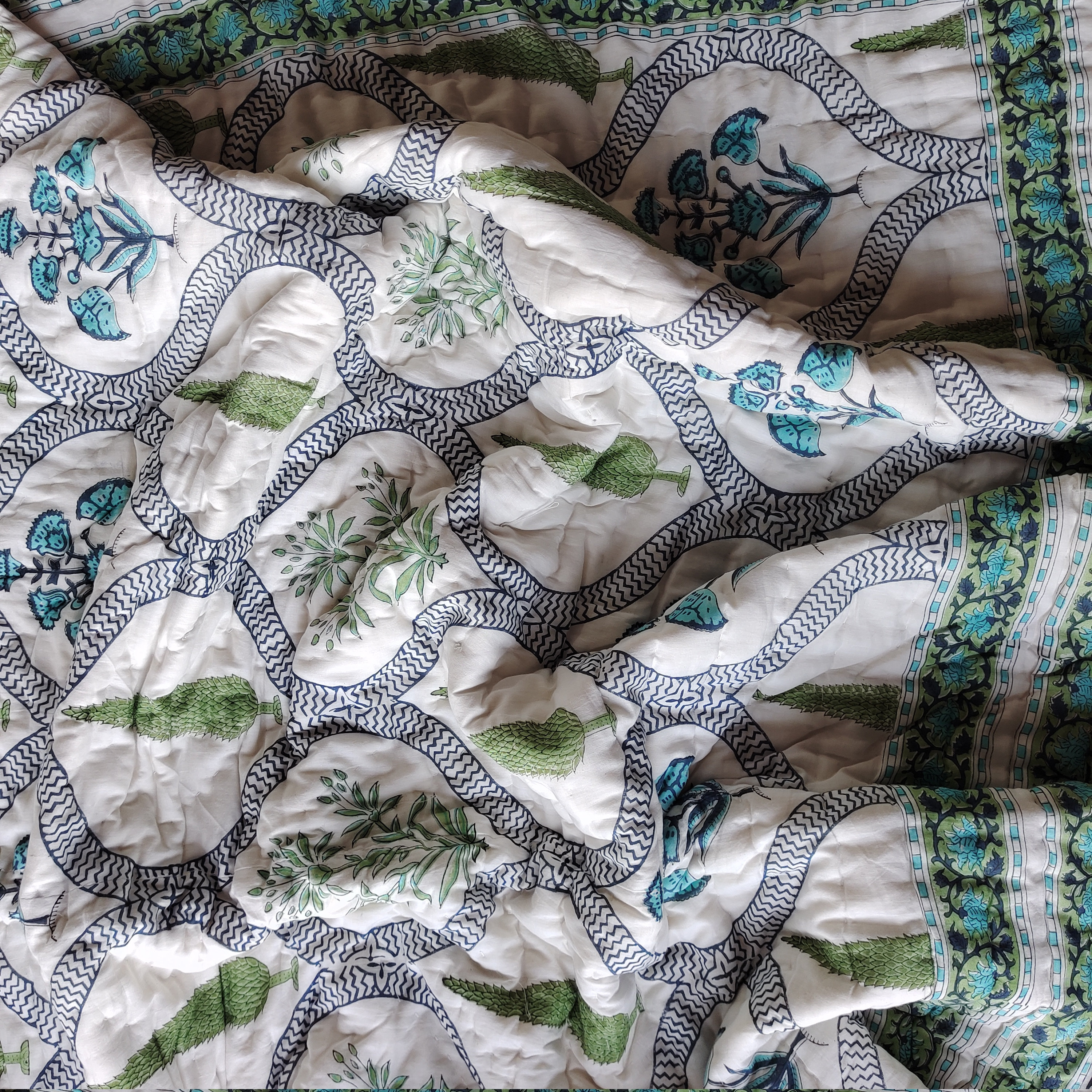 Indulge in the artistry of traditional craftsmanship with our exquisite Hand Stitched Hand Block Print Quilt. Each quilt is a masterpiece of skill and creativity, meticulously crafted by skilled artisans in Jaipur, India. From the intricate hand block printing to the careful stitching, every step in the process is a labor of love, resulting in a quilt that's as beautiful as it is functional.