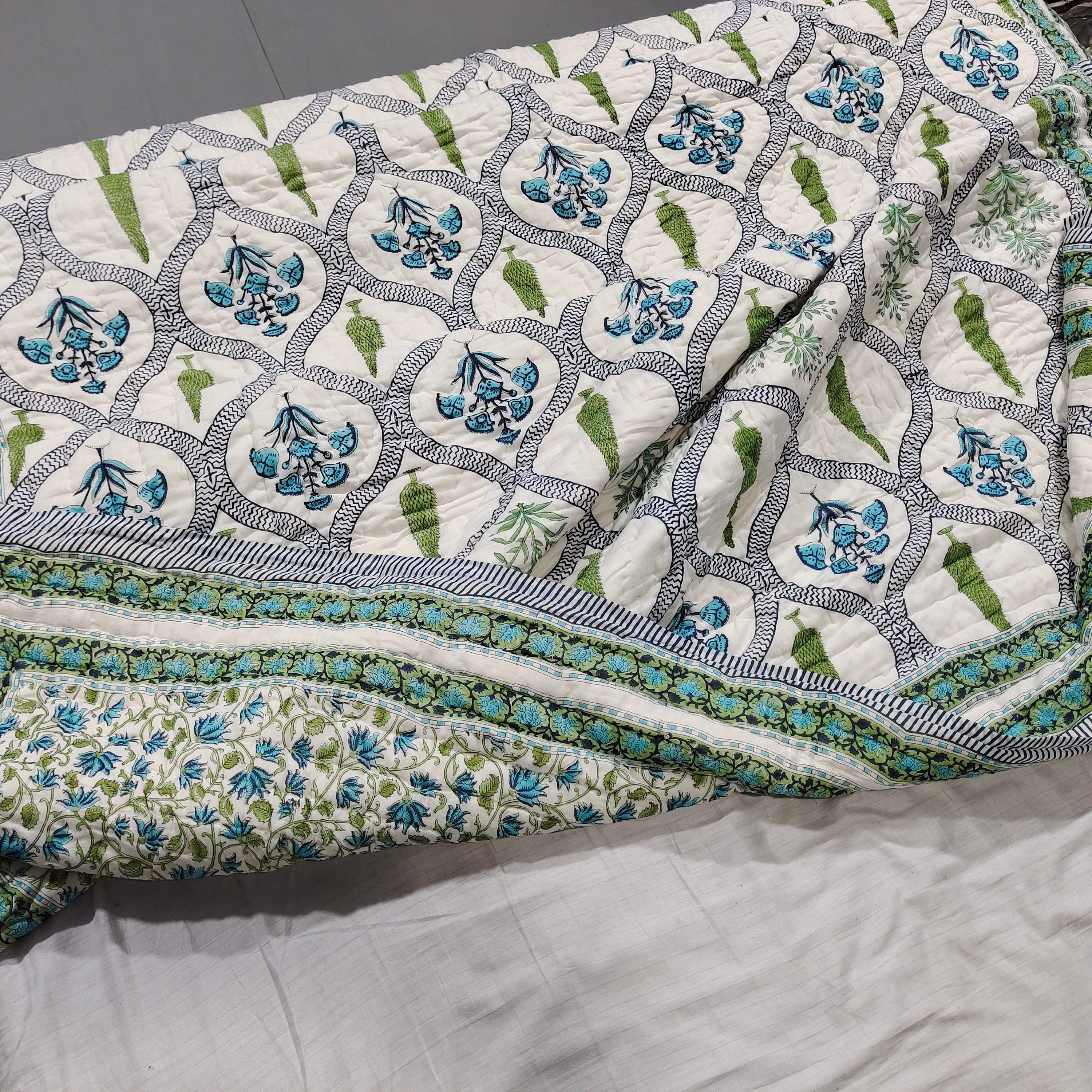 Indulge in the artistry of traditional craftsmanship with our exquisite Hand Stitched Hand Block Print Quilt. Each quilt is a masterpiece