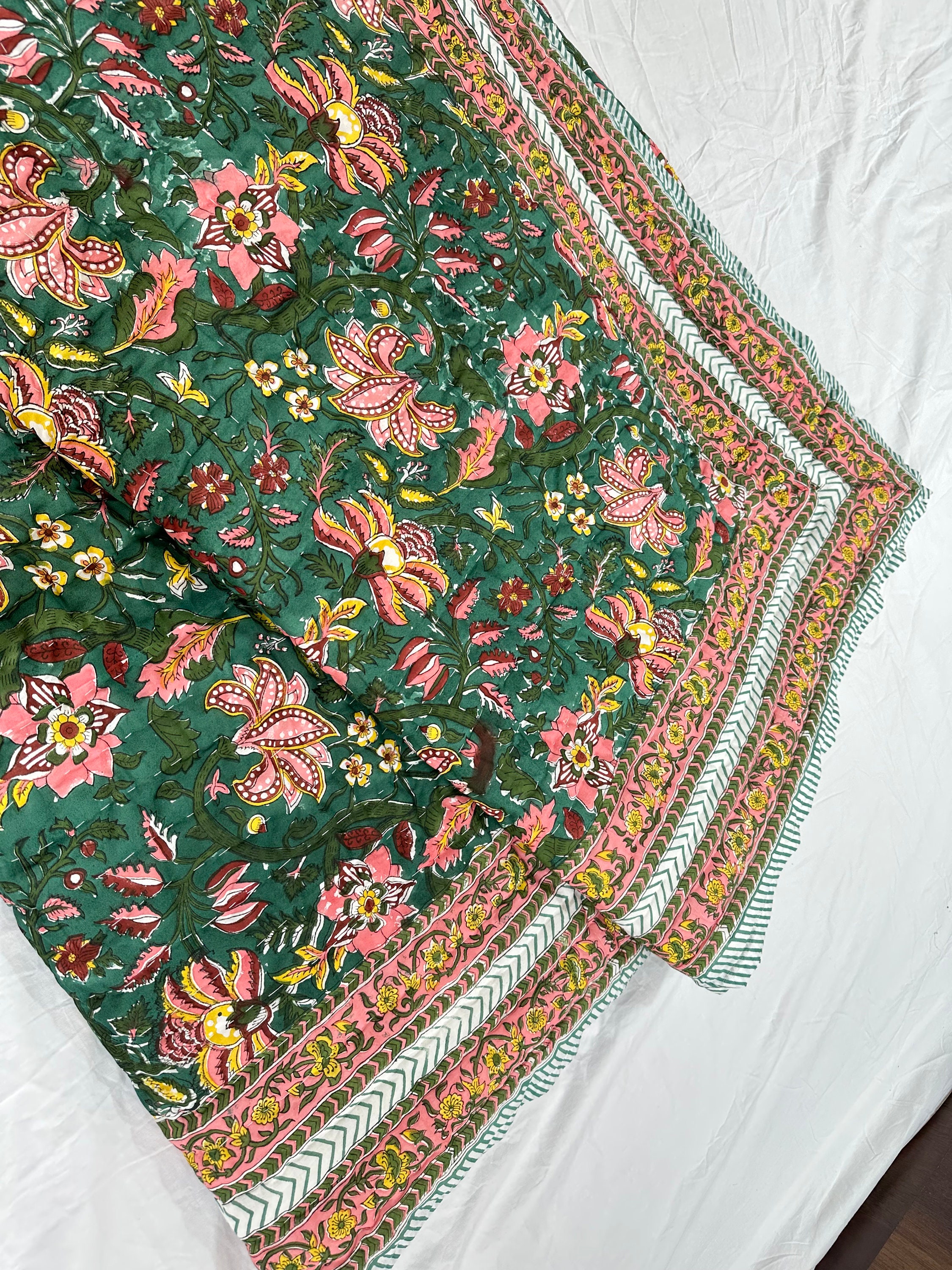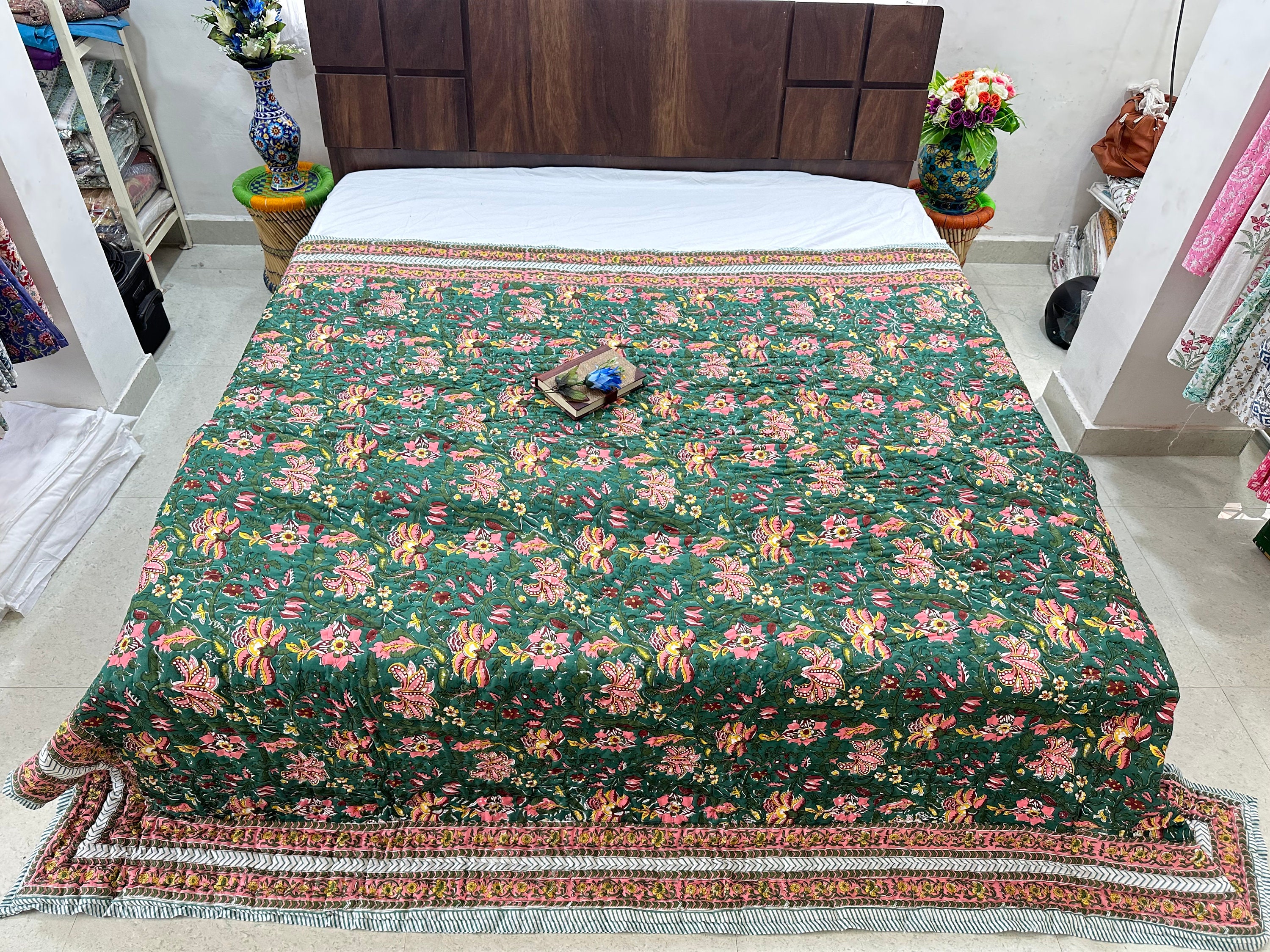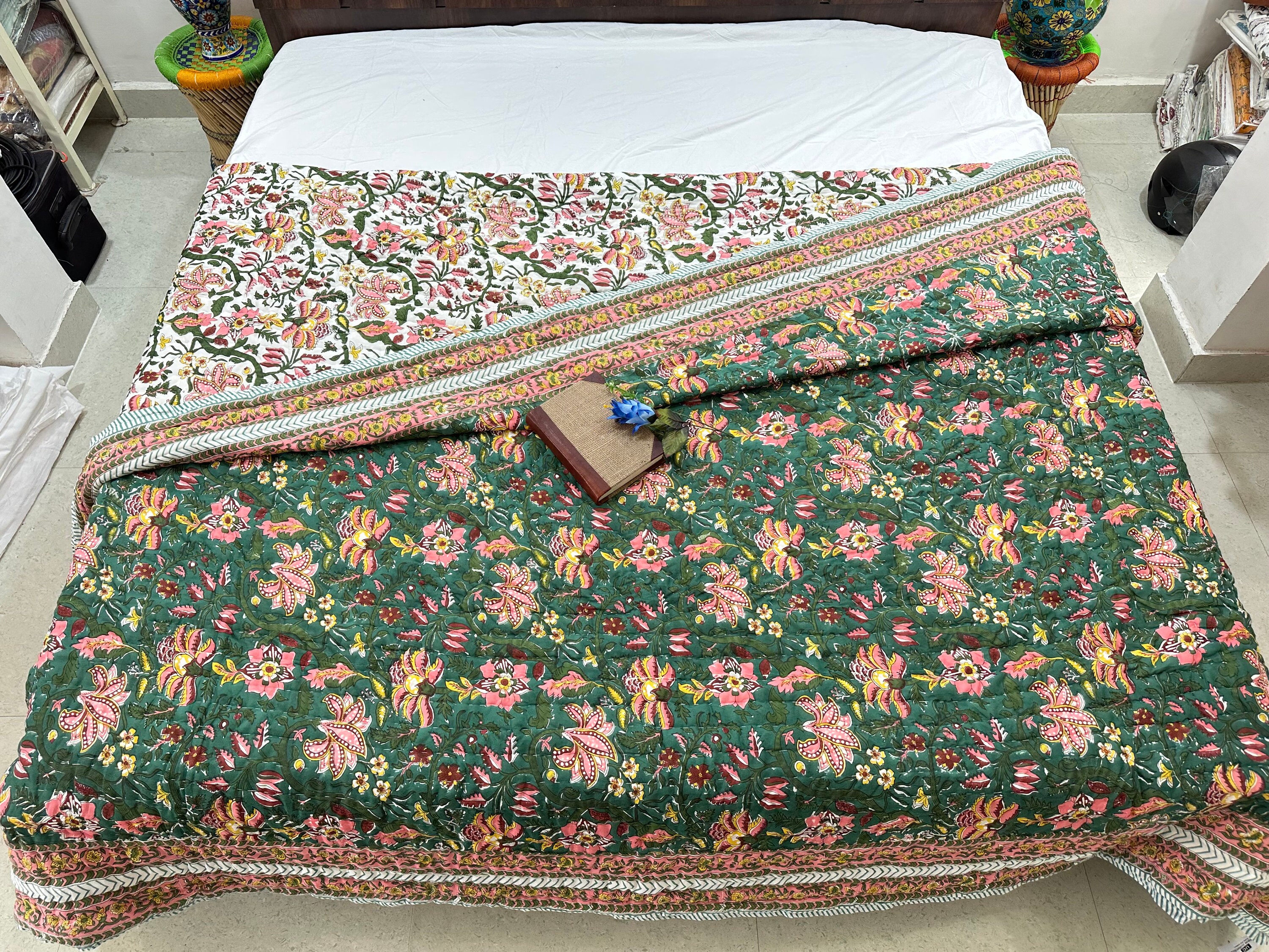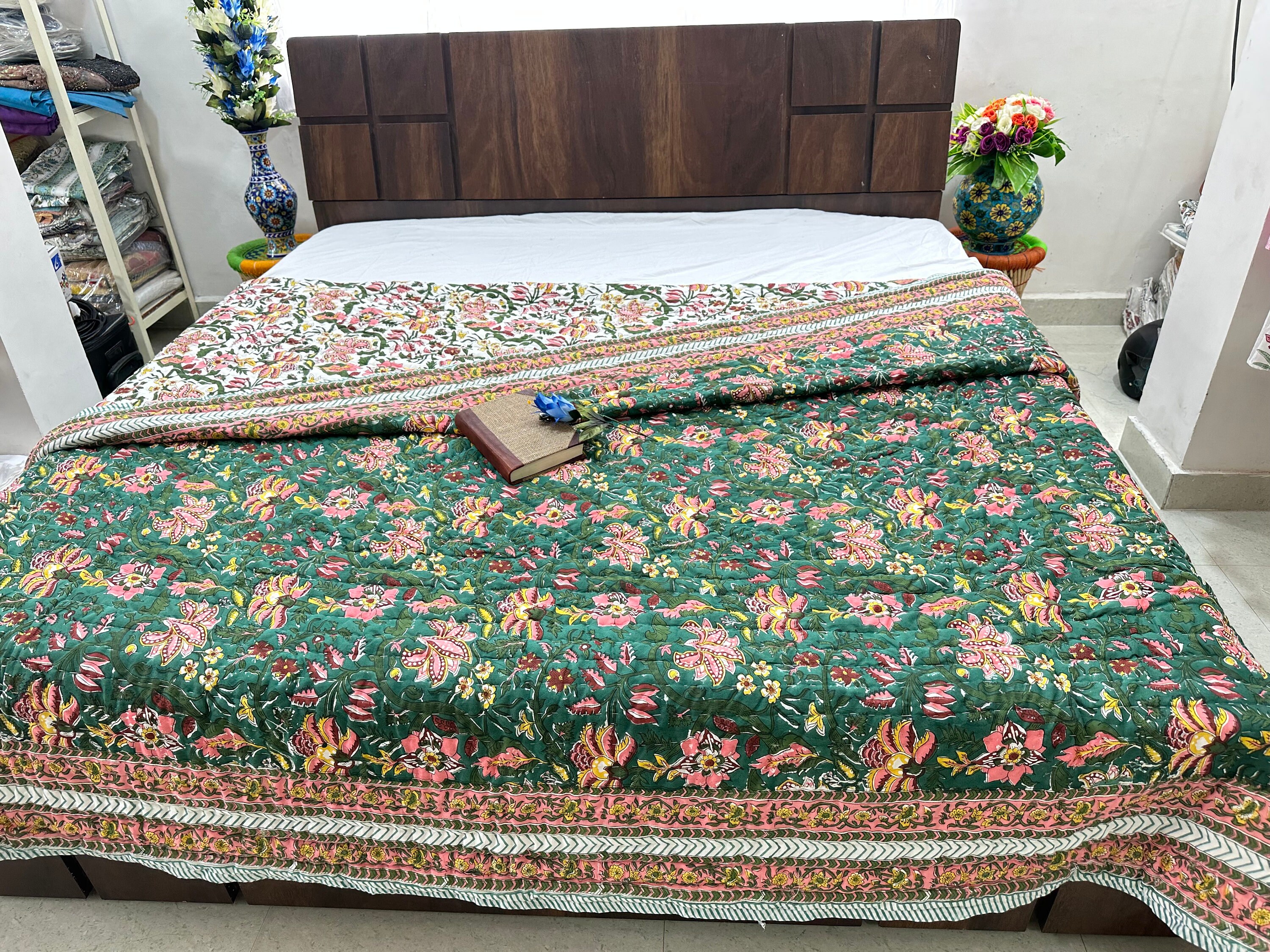Indulge in the artistry of traditional craftsmanship with our exquisite Hand Stitched Hand Block Print Quilt. Each quilt is a masterpiece of skill and creativity, meticulously crafted by skilled artisans in Jaipur, India. From the intricate hand block printing to the careful stitching, every step in the process is a labor of love, resulting in a quilt that's as beautiful as it is functional.