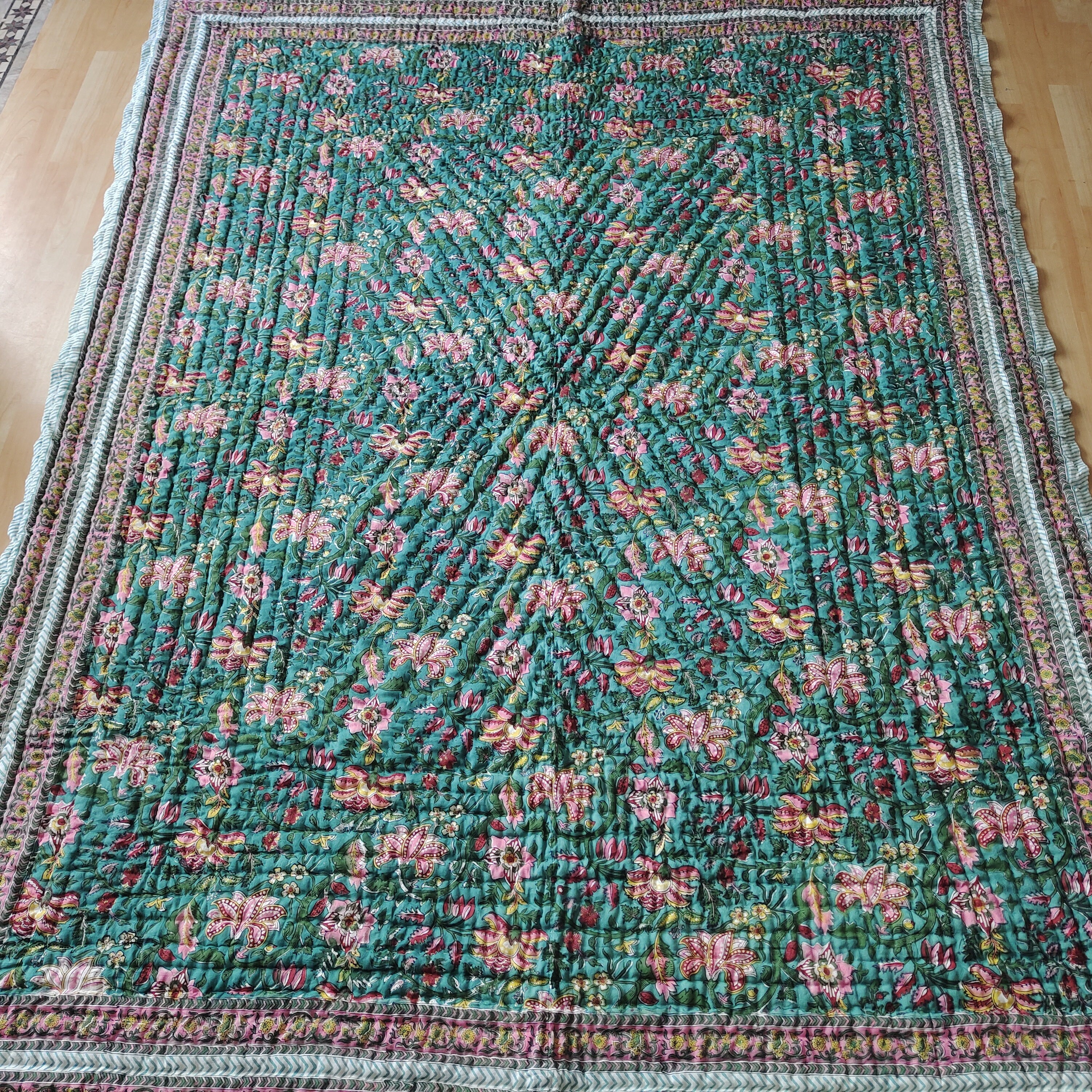 Hand Stitched Block Print Cotton Quilt: Queen Size Bedding cover