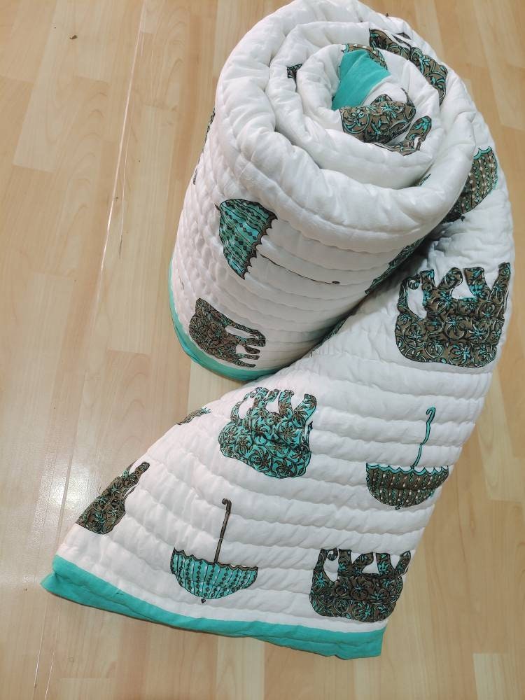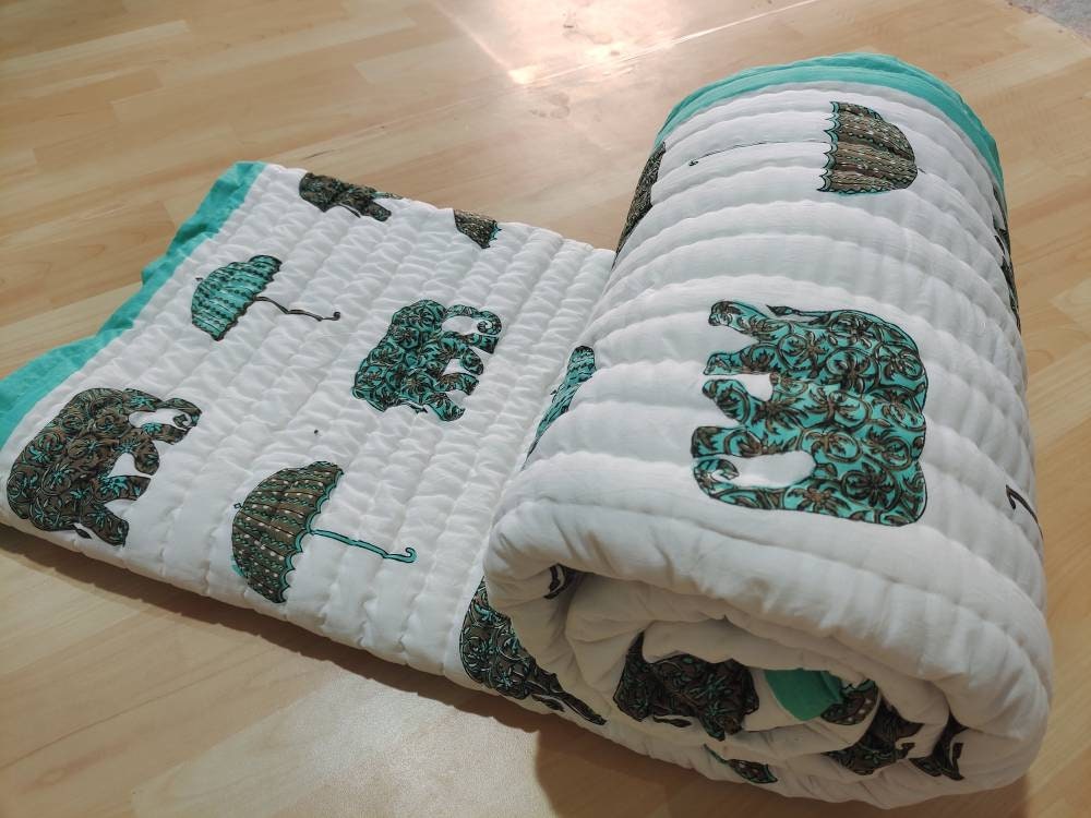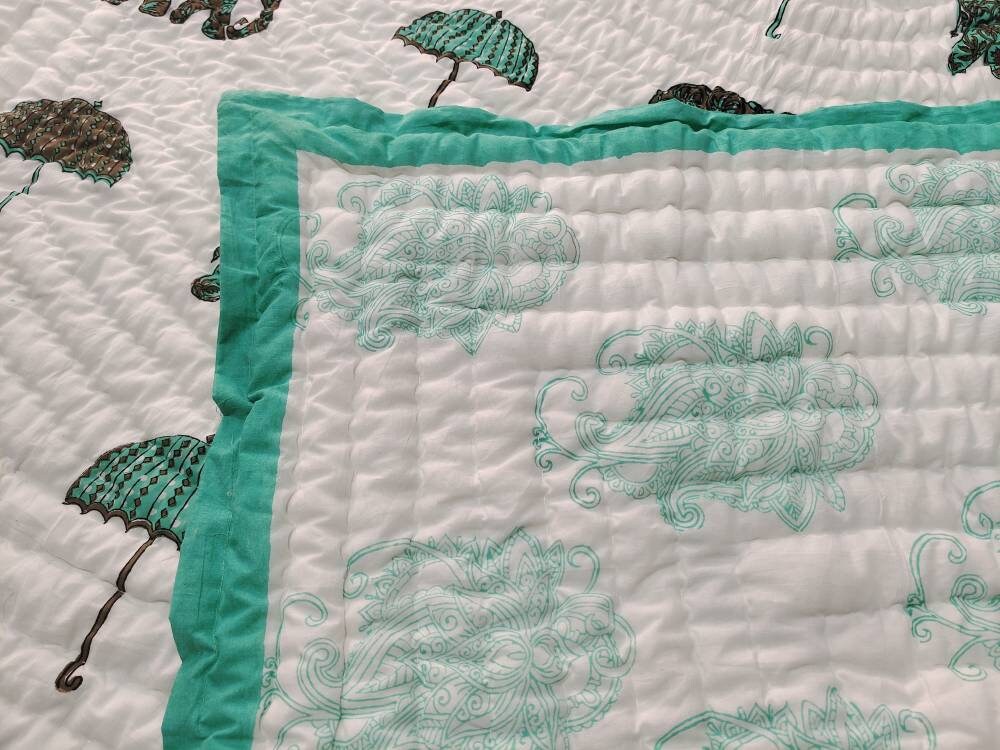 Indulge in the artistry of traditional craftsmanship with our exquisite Hand Stitched Hand Block Print Quilt. Each quilt is a masterpiece of skill and creativity, meticulously crafted by skilled artisans in Jaipur, India. From the intricate hand block printing to the careful stitching, every step in the process is a labor of love, resulting in a quilt that's as beautiful as it is functional.