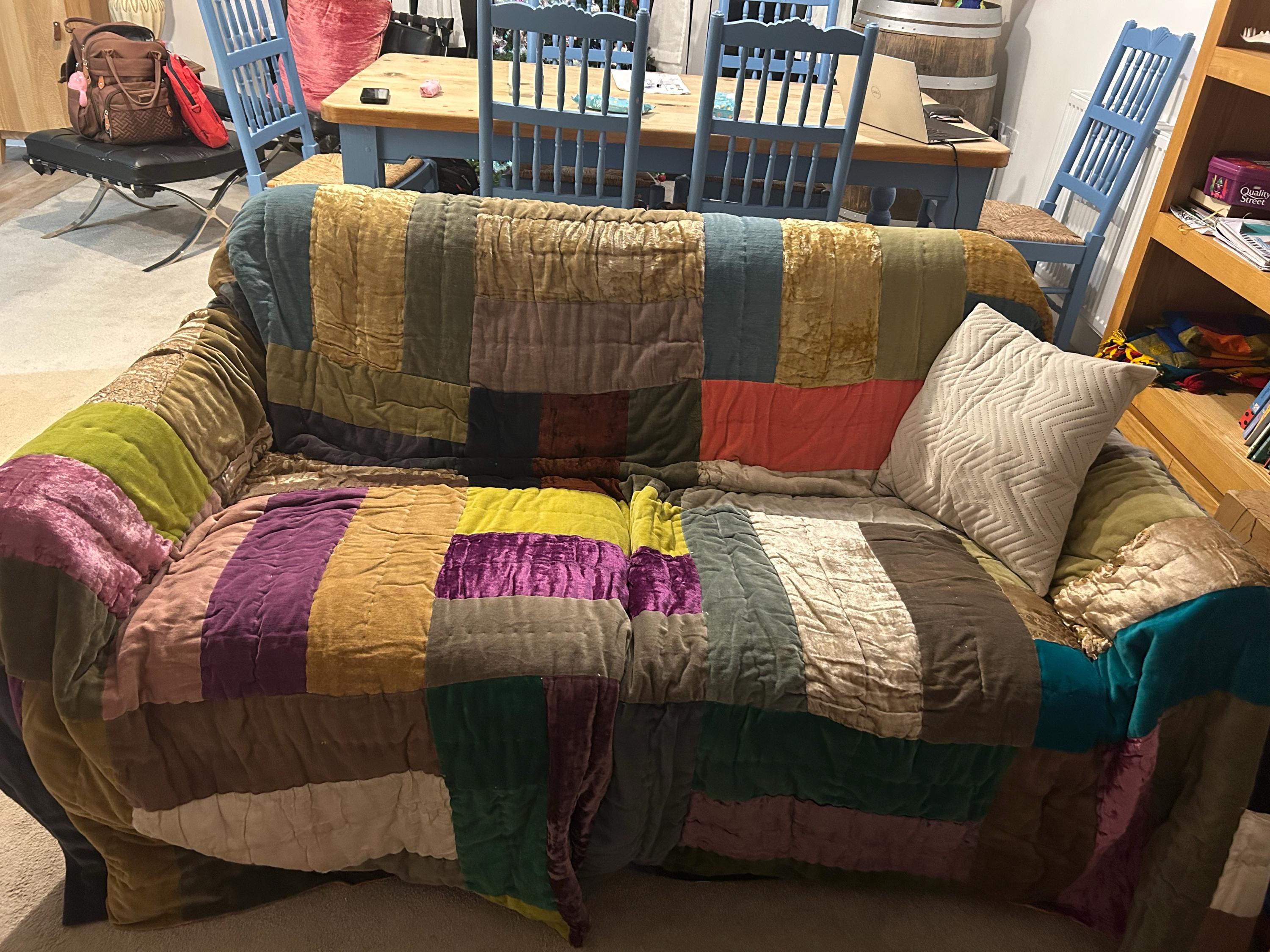 Hand Stitched Velvet Patchwork Quilt: Reversible Cotton Queen Bedding