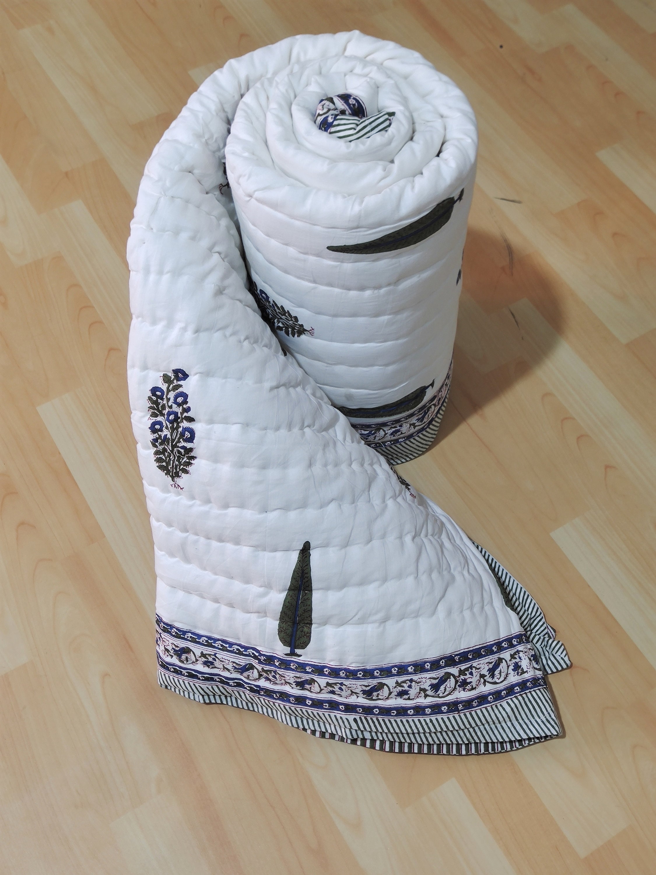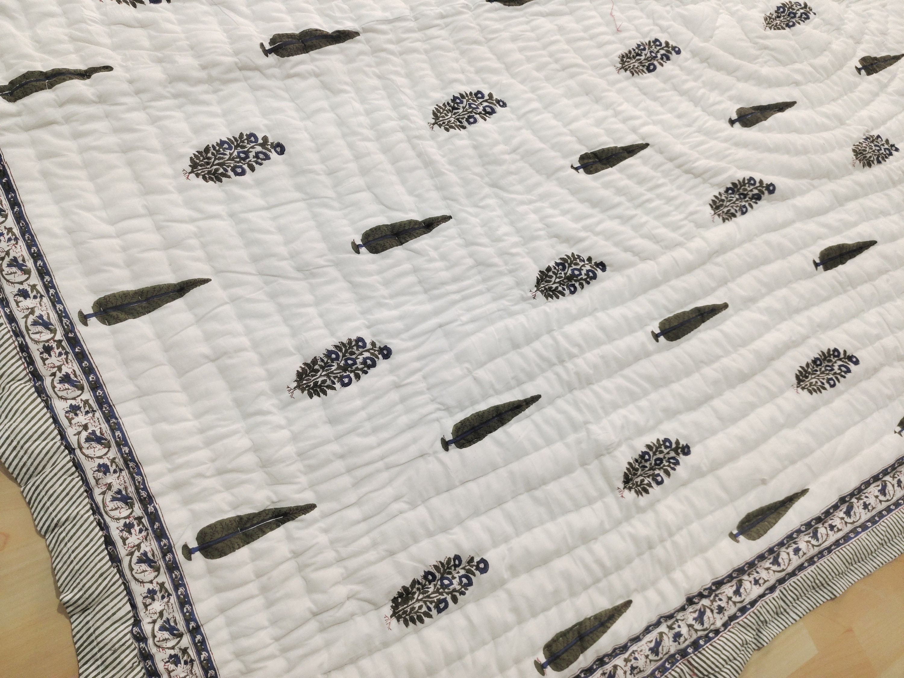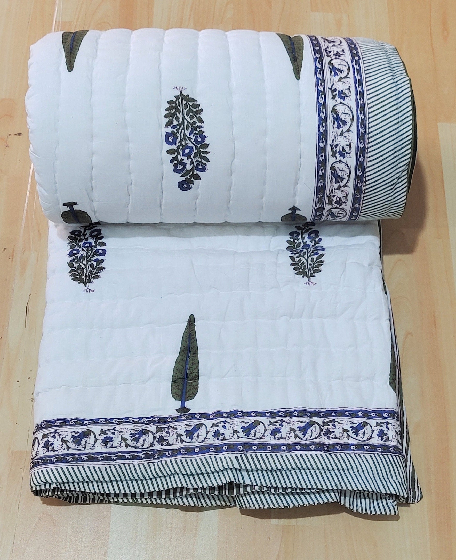 Indulge in the artistry of traditional craftsmanship with our exquisite Hand Stitched Hand Block Print Quilt. Each quilt is a masterpiece of skill and creativity, meticulously crafted by skilled artisans in Jaipur, India. From the intricate hand block printing to the careful stitching, every step in the process is a labor of love, resulting in a quilt that's as beautiful as it is functional.