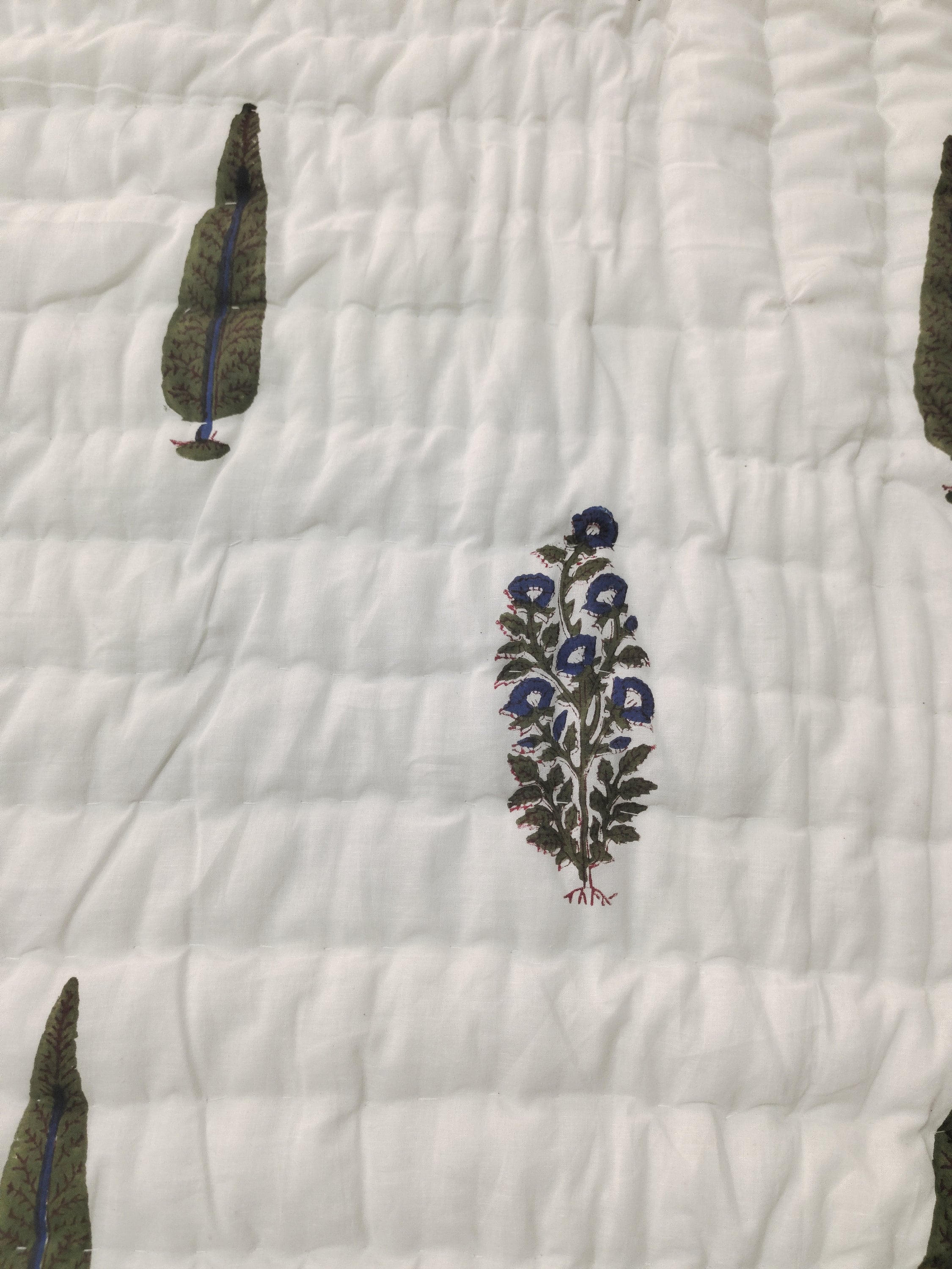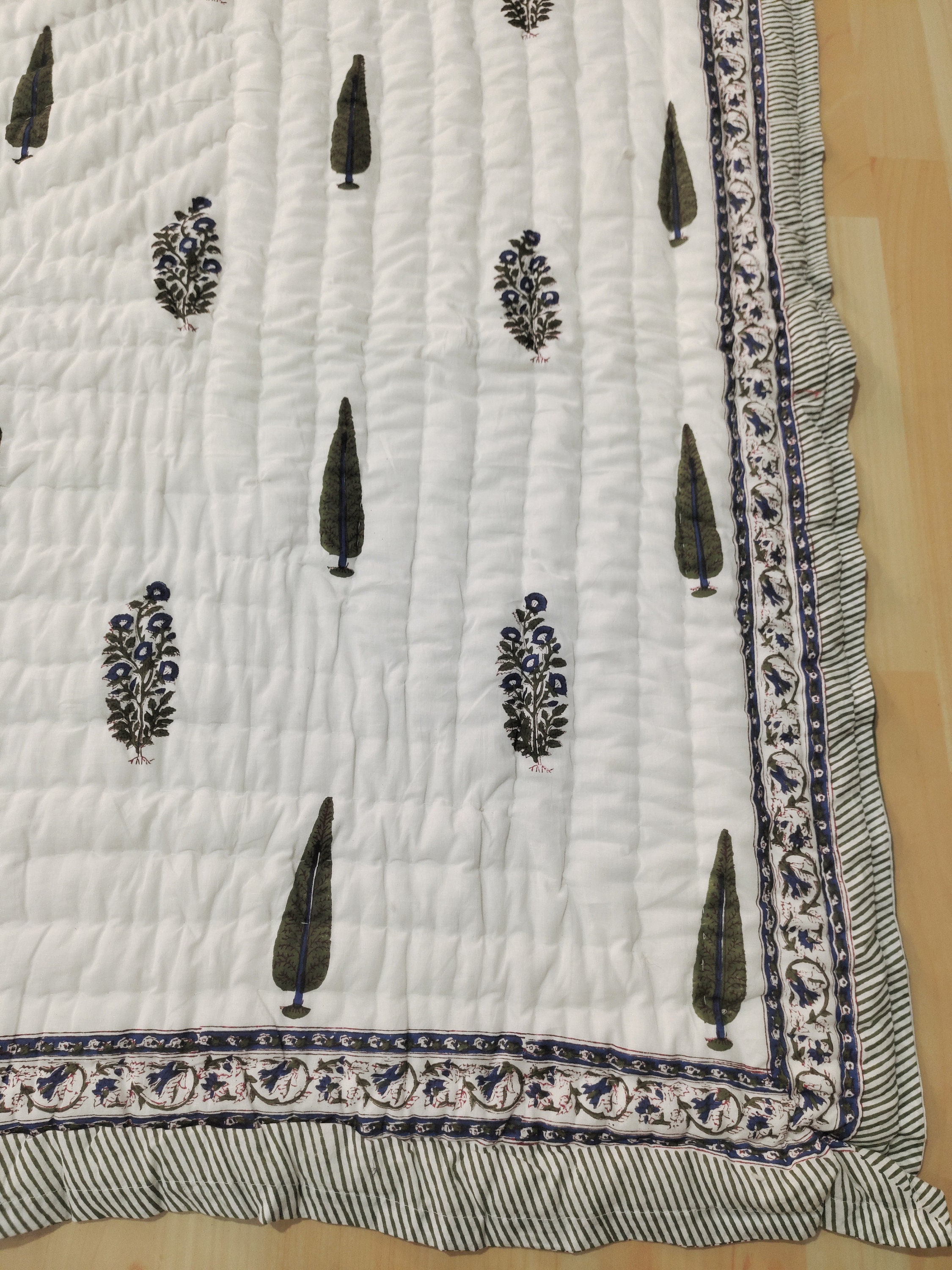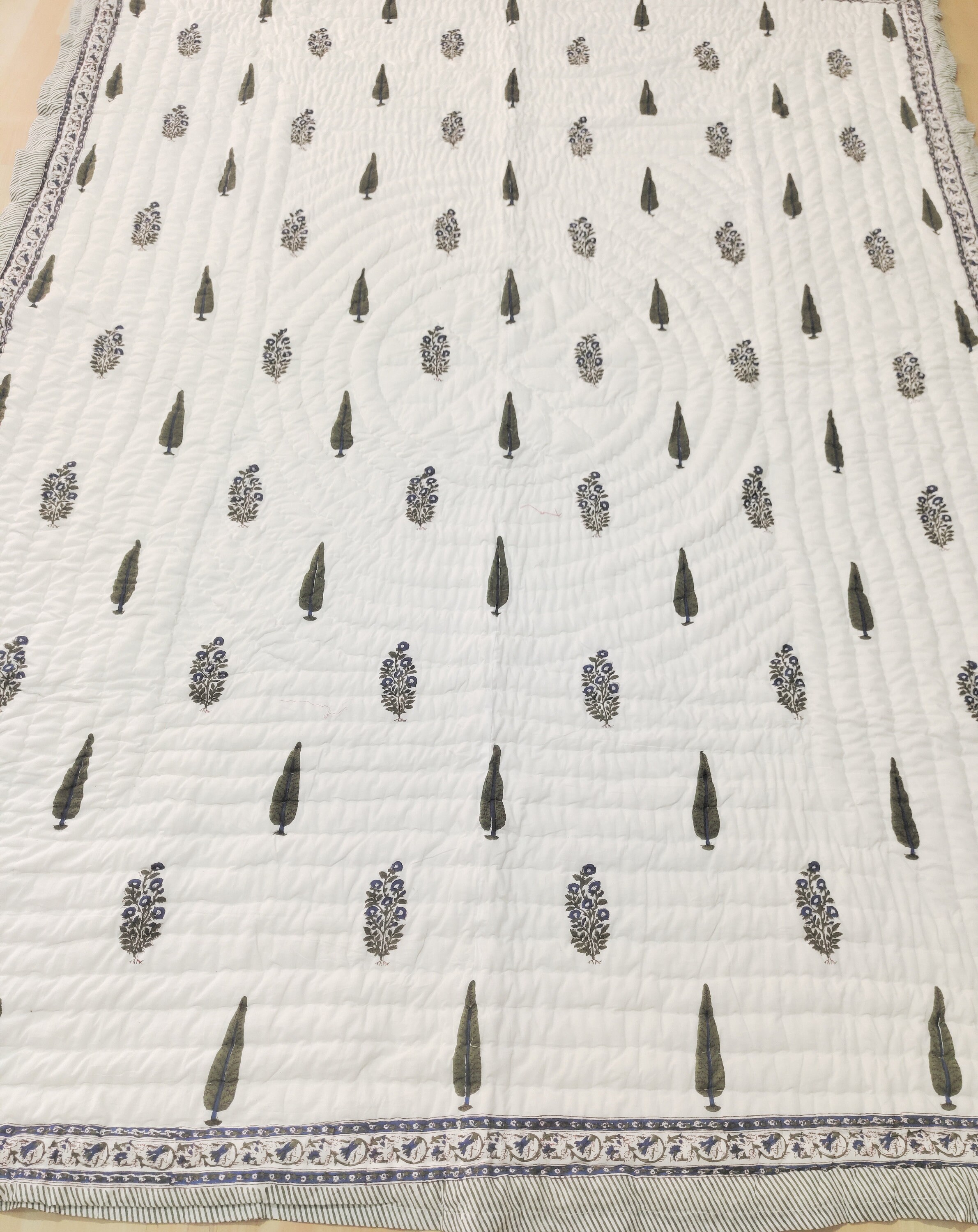 Indulge in the artistry of traditional craftsmanship with our exquisite Hand Stitched Hand Block Print Quilt. Each quilt is a masterpiece of skill and creativity, meticulously crafted by skilled artisans in Jaipur, India. From the intricate hand block printing to the careful stitching, every step in the process is a labor of love, resulting in a quilt that's as beautiful as it is functional.