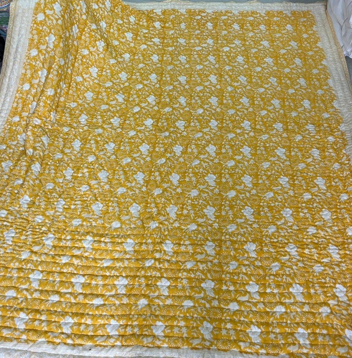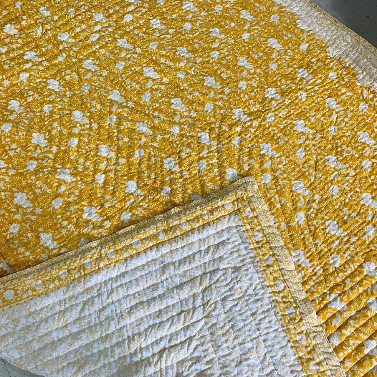 Indulge in the artistry of traditional craftsmanship with our exquisite Hand Stitched Hand Block Print Quilt. Each quilt is a masterpiece