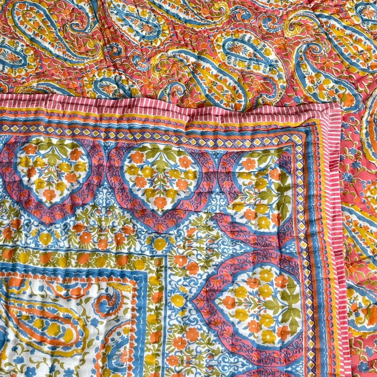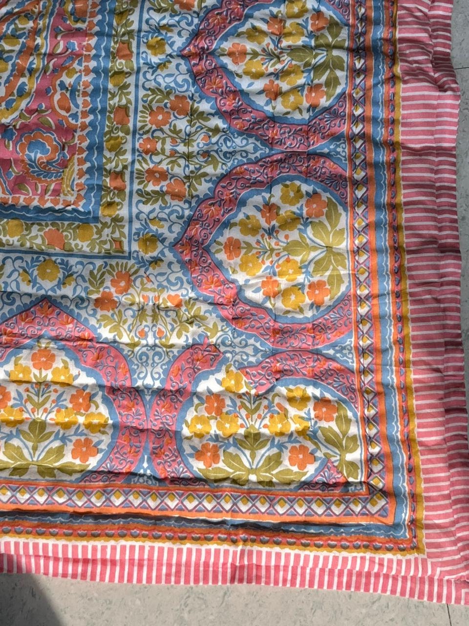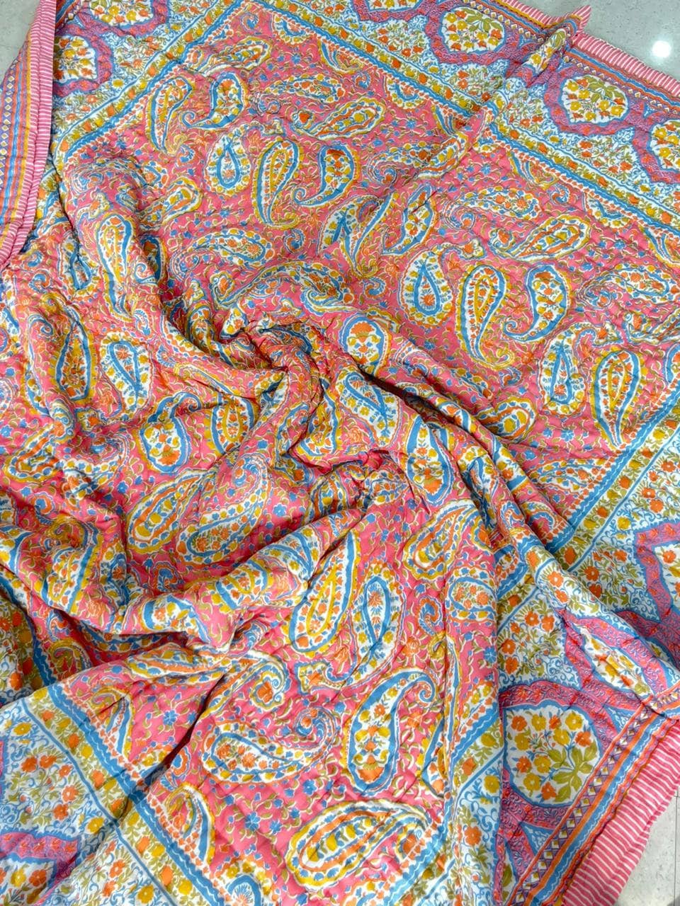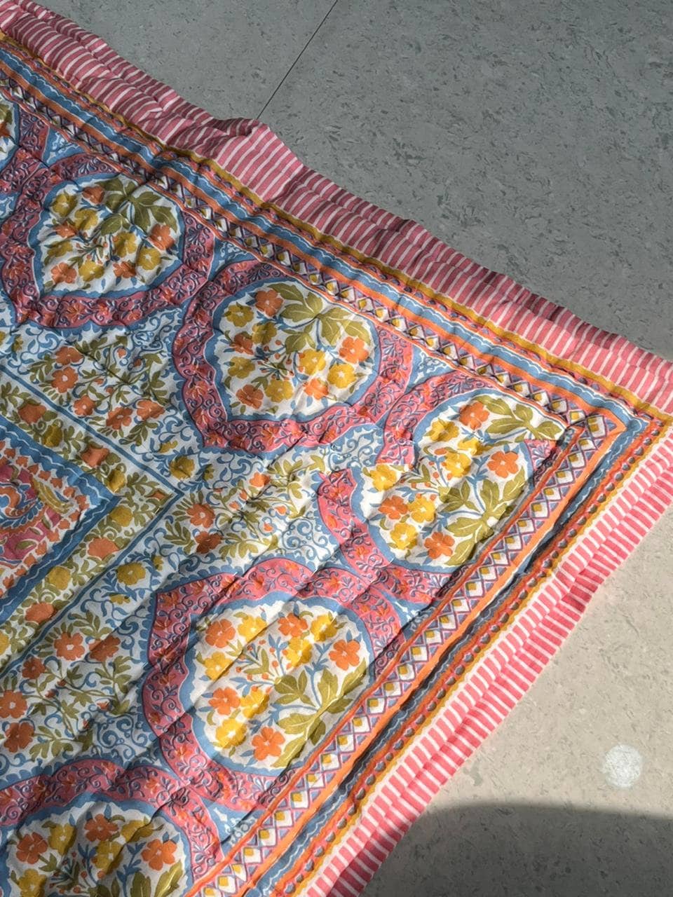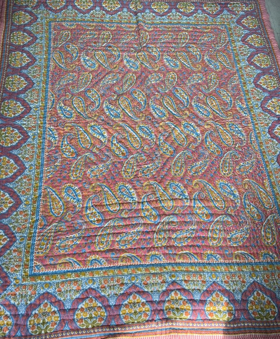 Indulge in the artistry of traditional craftsmanship with our exquisite Hand Stitched Hand Block Print Quilt. Each quilt is a masterpiece of skill and creativity, meticulously crafted by skilled artisans in Jaipur, India. From the intricate hand block printing to the careful stitching, every step in the process is a labor of love, resulting in a quilt that's as beautiful as it is functional.