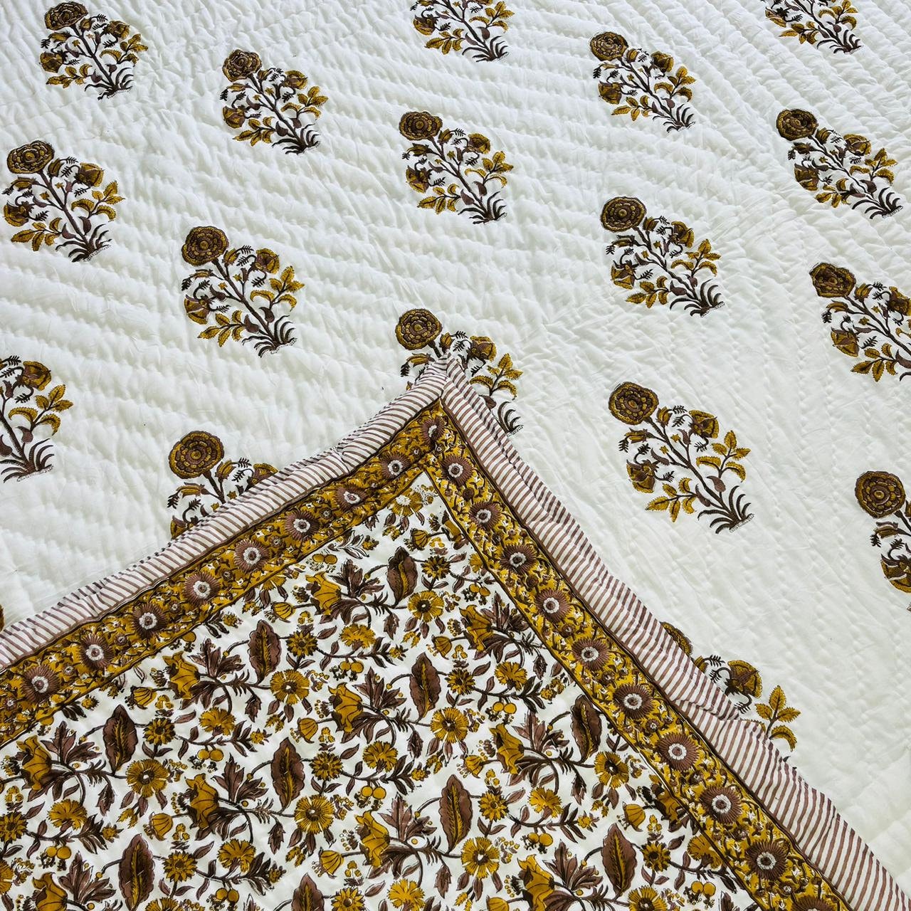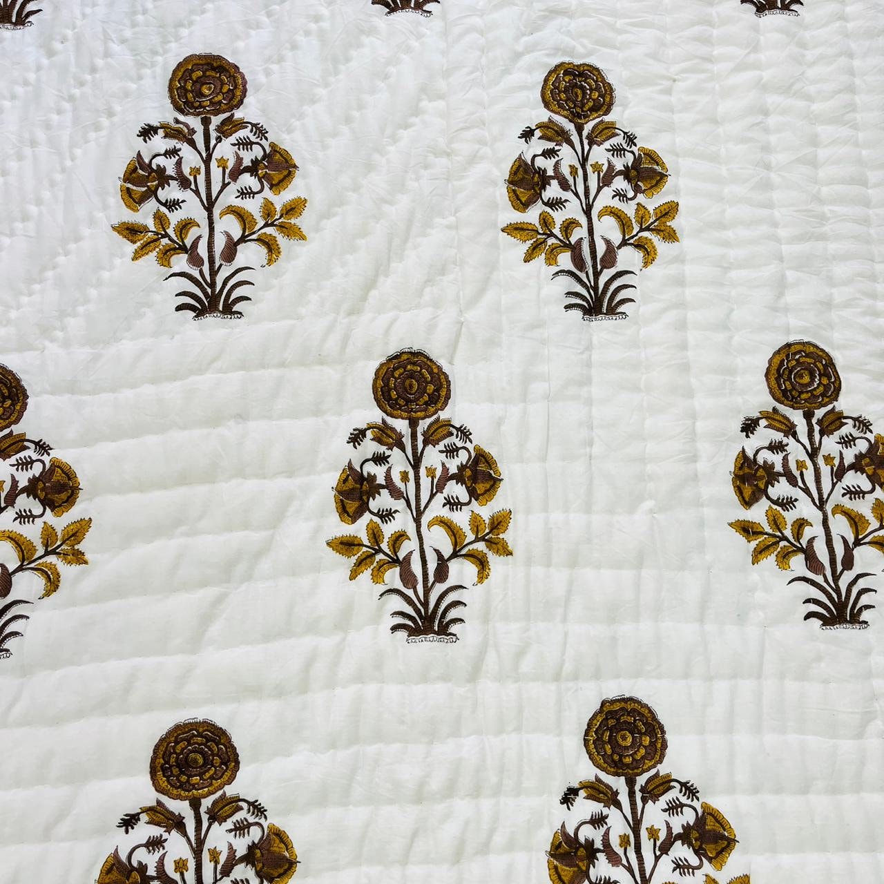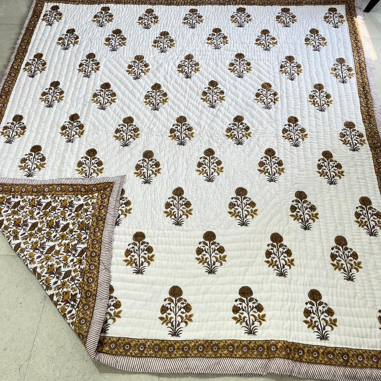 Hand Block Print Cotton Quilt: Mughal Buta Design, Reversible Razai