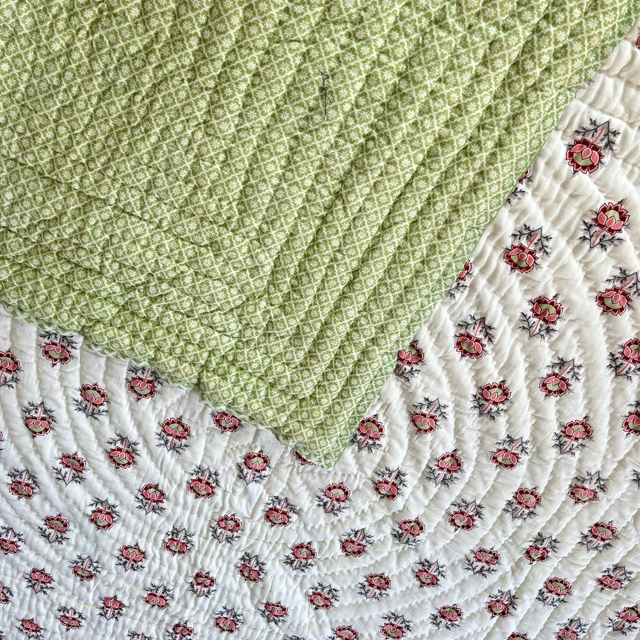 Hand Block Print Queen Quilt: Hand Stitched Cotton Bedding