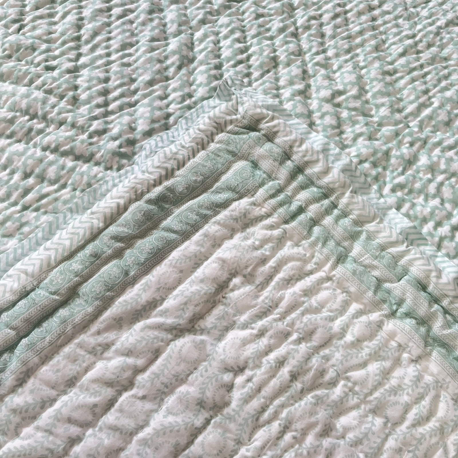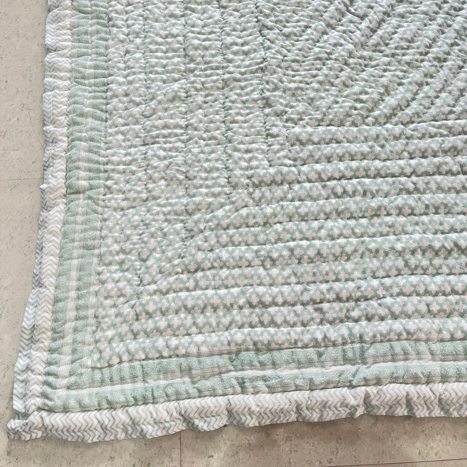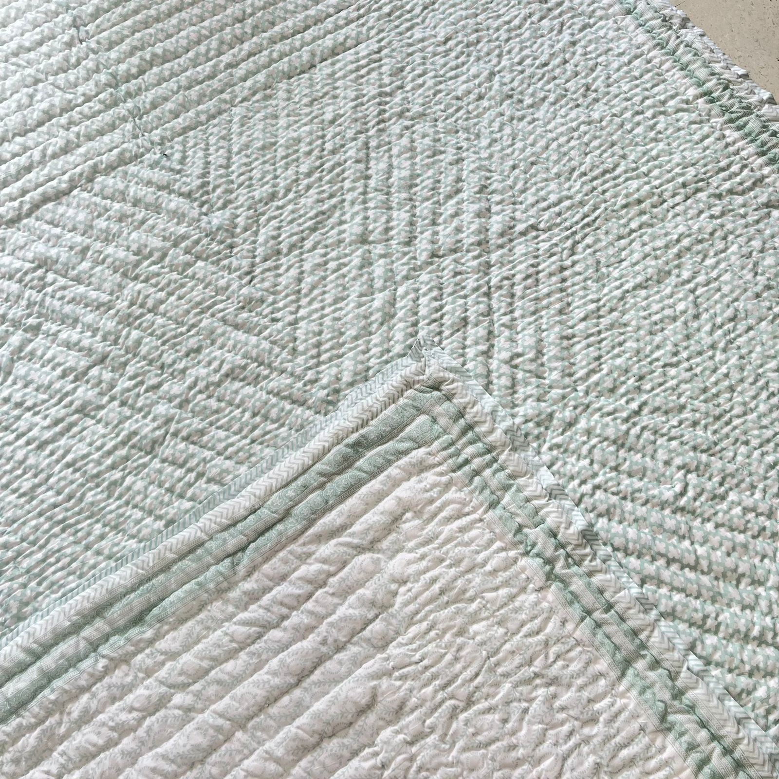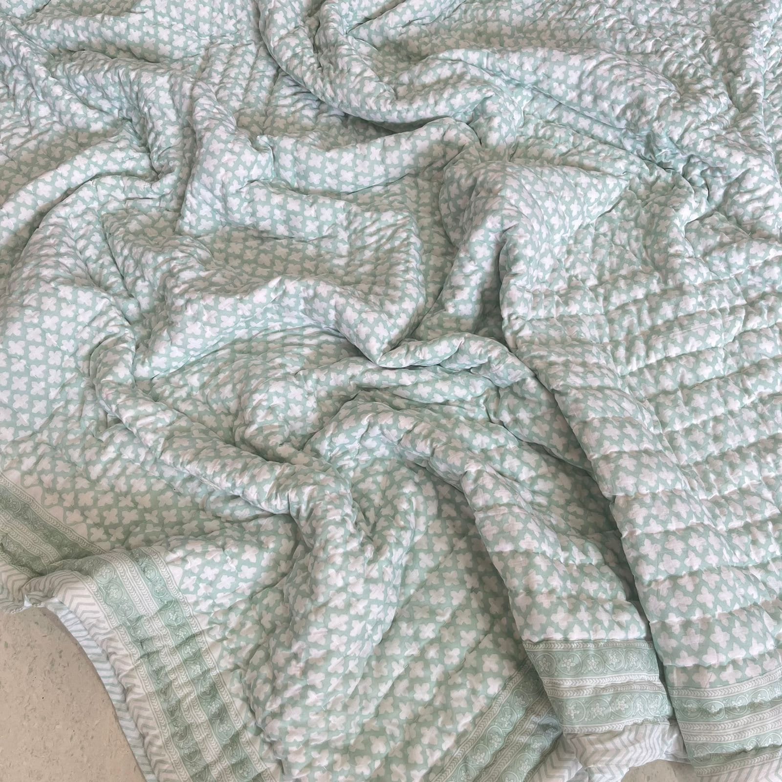 Hand Block Printed Cotton Quilt: Hand-Stitched Bedding (Dry Clean Only)