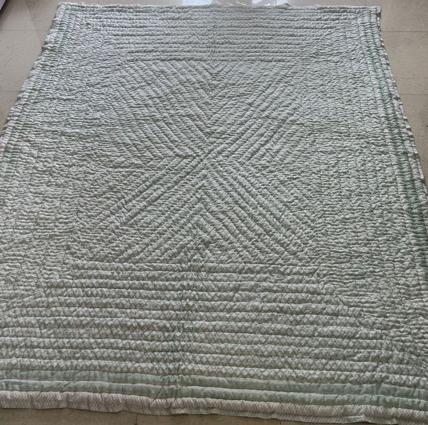 The listing photos display the quilt only, but please note that in the same pattern, it is possible to make an AC Blanket (Dohar) for this design as well. Visit our AC Blanket (Dohar) section to view similar patterns and explore the versatility of our designs.