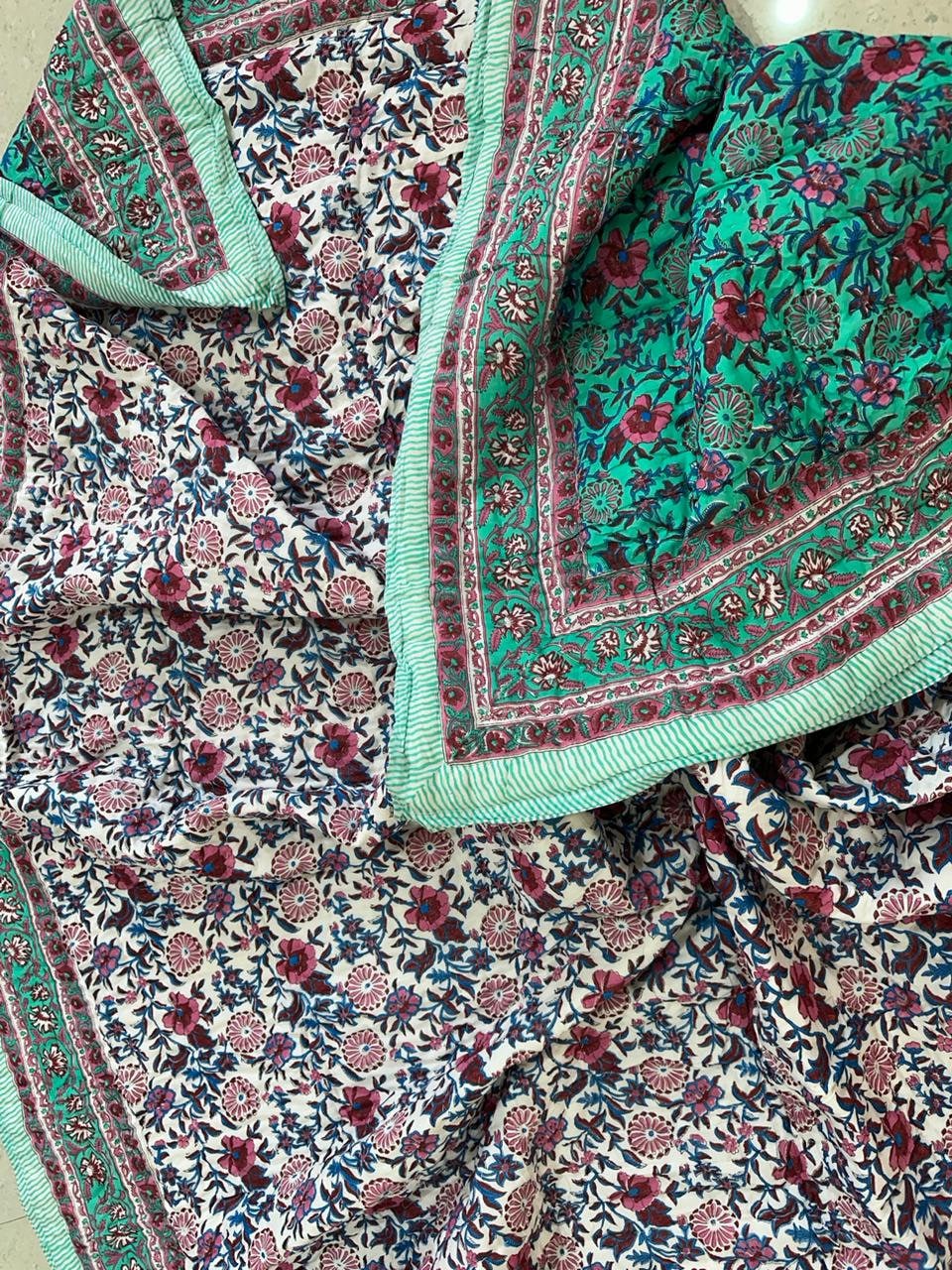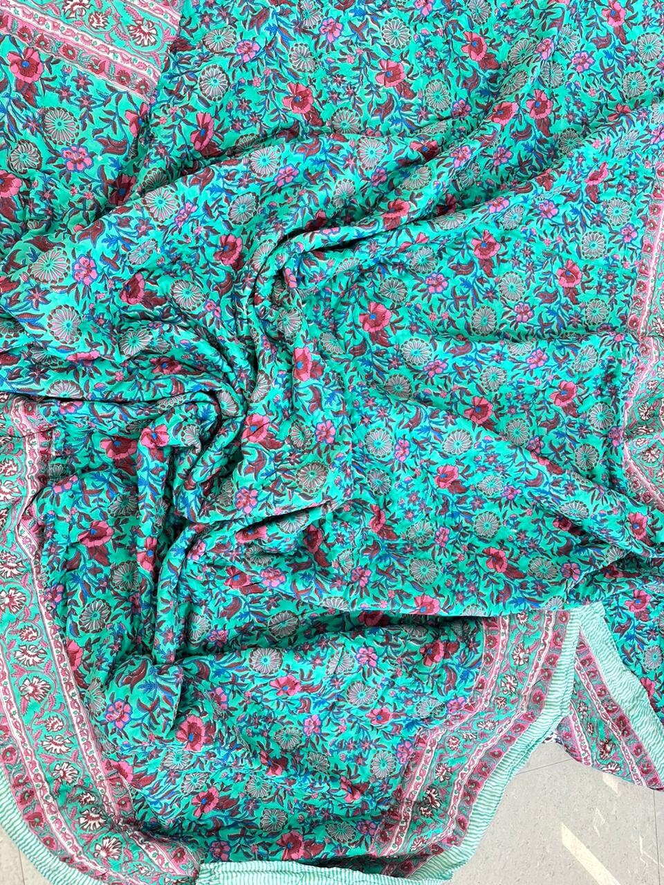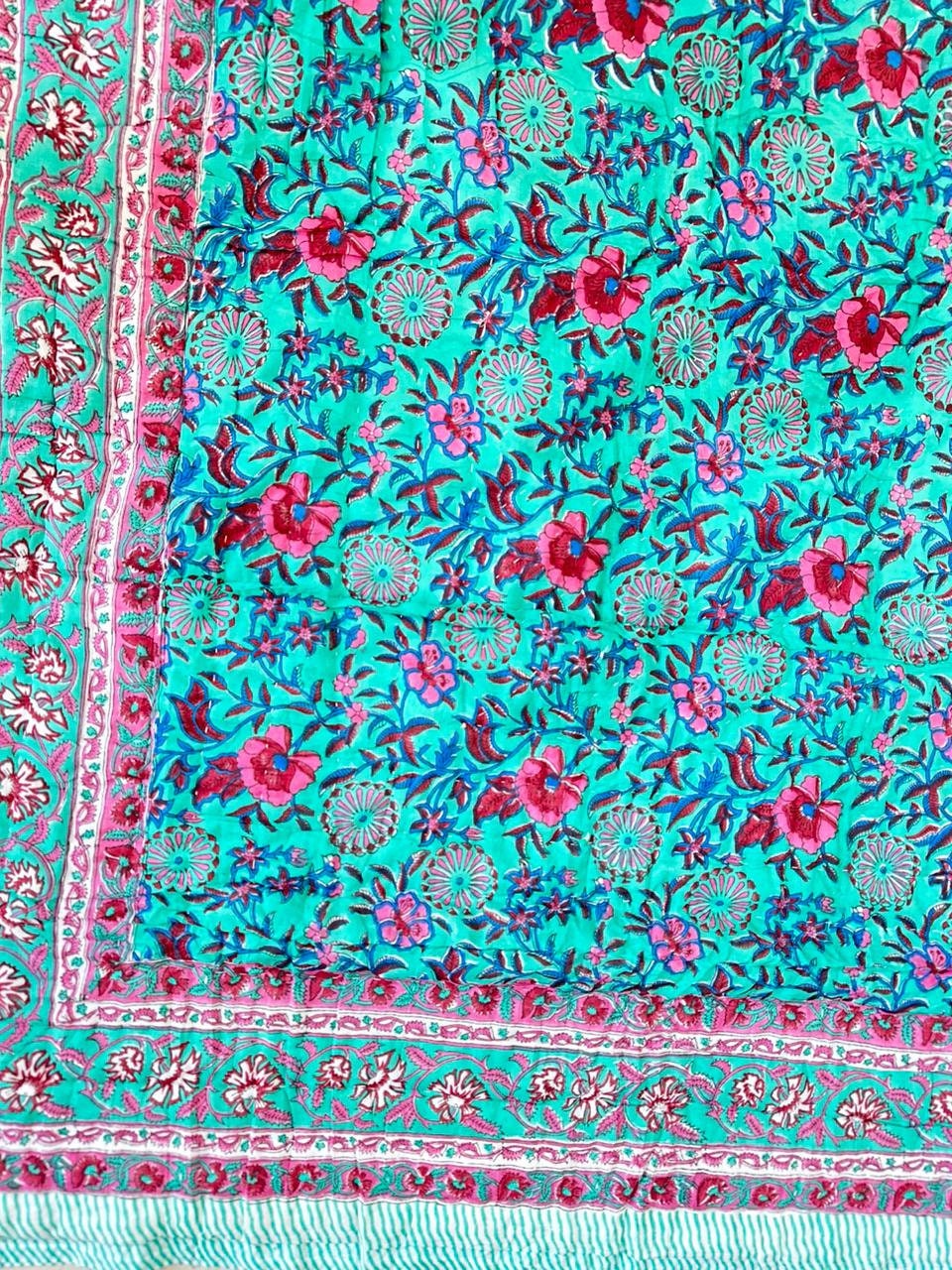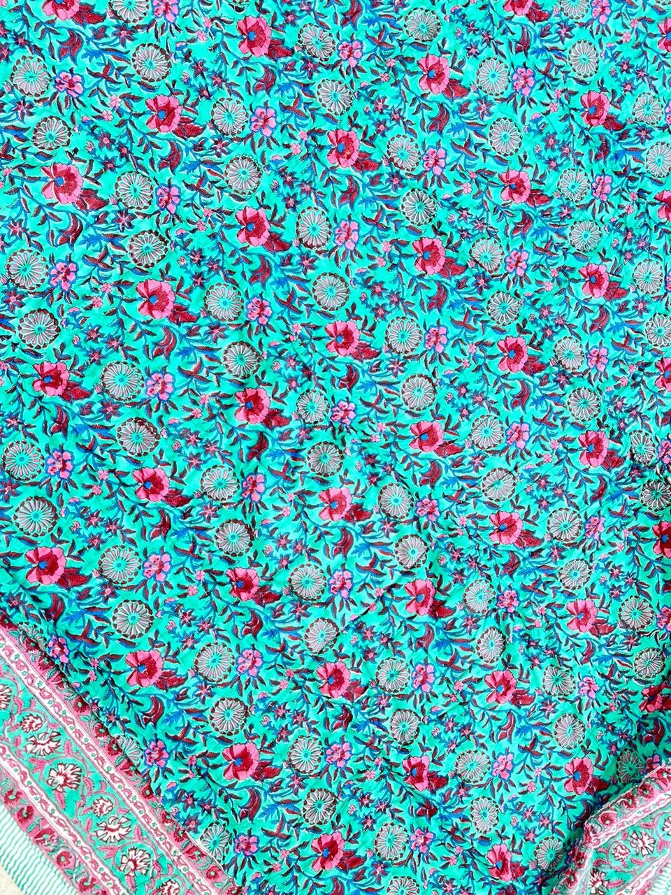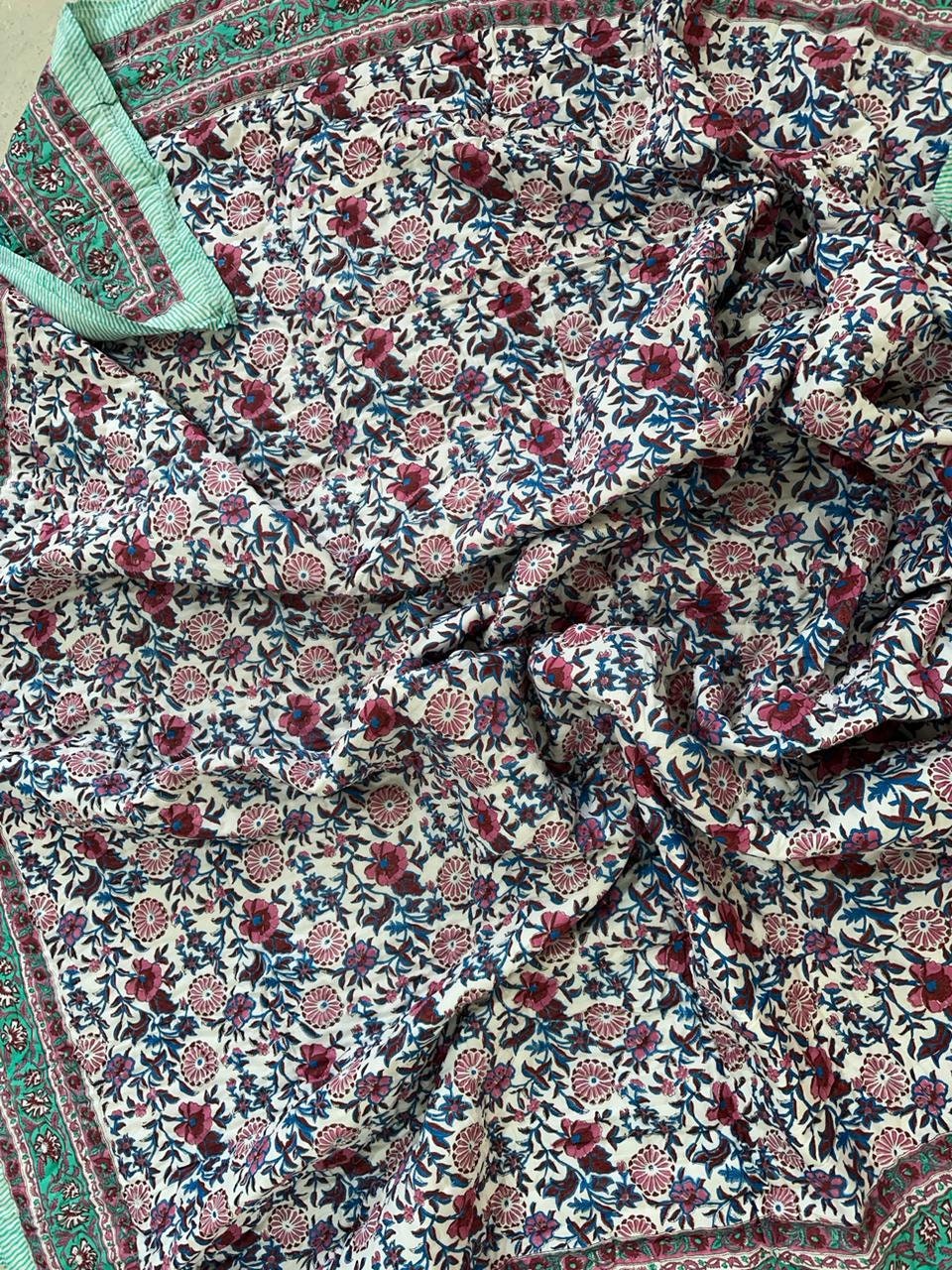 Indulge in the artistry of traditional craftsmanship with our exquisite Hand Stitched Hand Block Print Quilt. Each quilt is a masterpiece of skill and creativity, meticulously crafted by skilled artisans in Jaipur, India. From the intricate hand block printing to the careful stitching, every step in the process is a labor of love, resulting in a quilt that's as beautiful as it is functional.