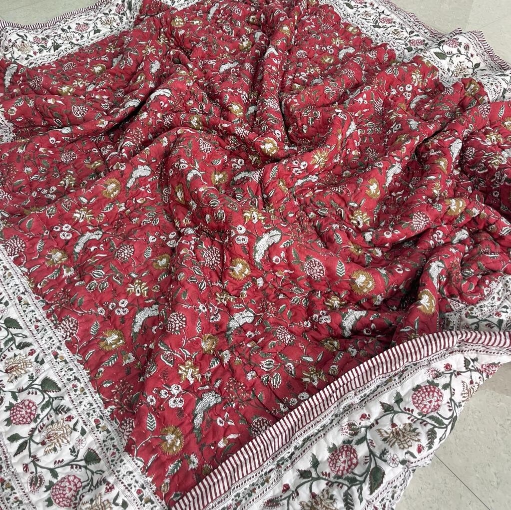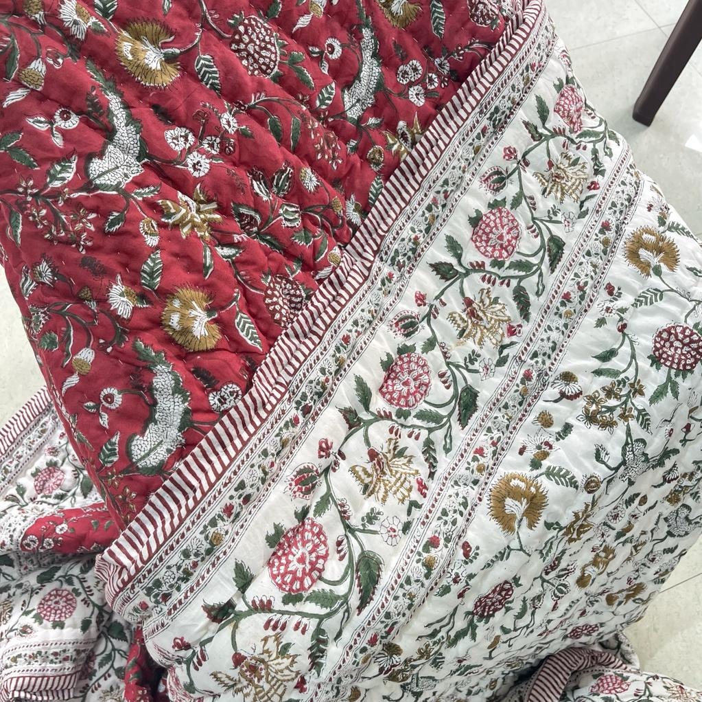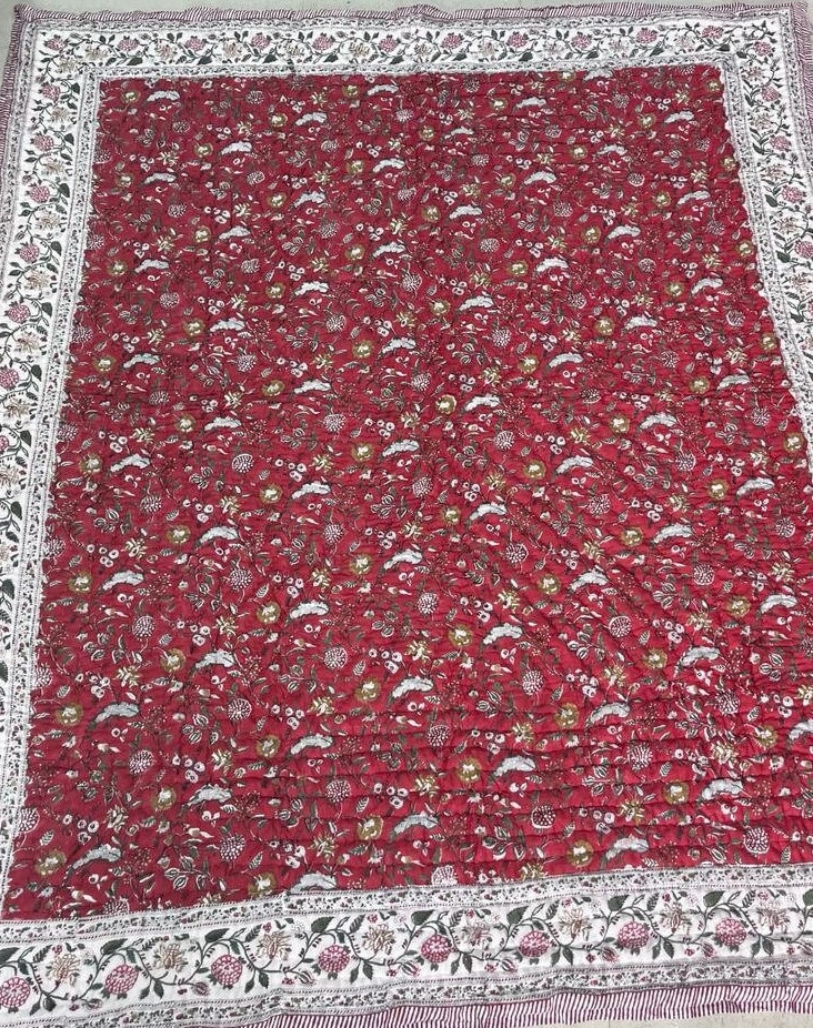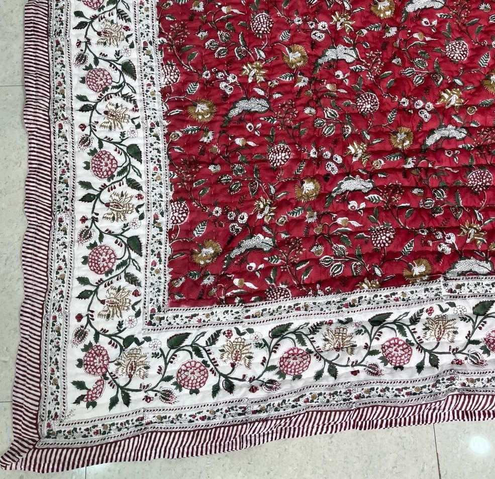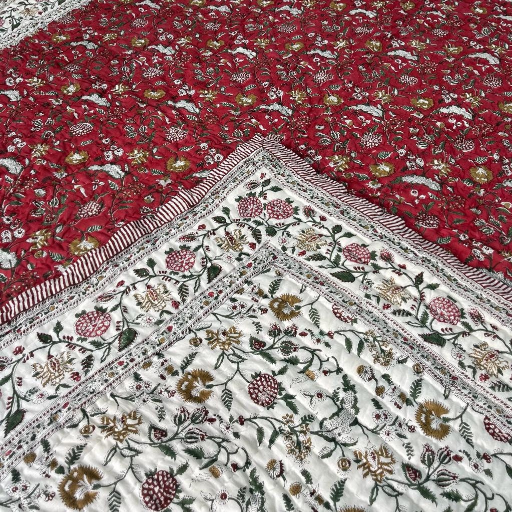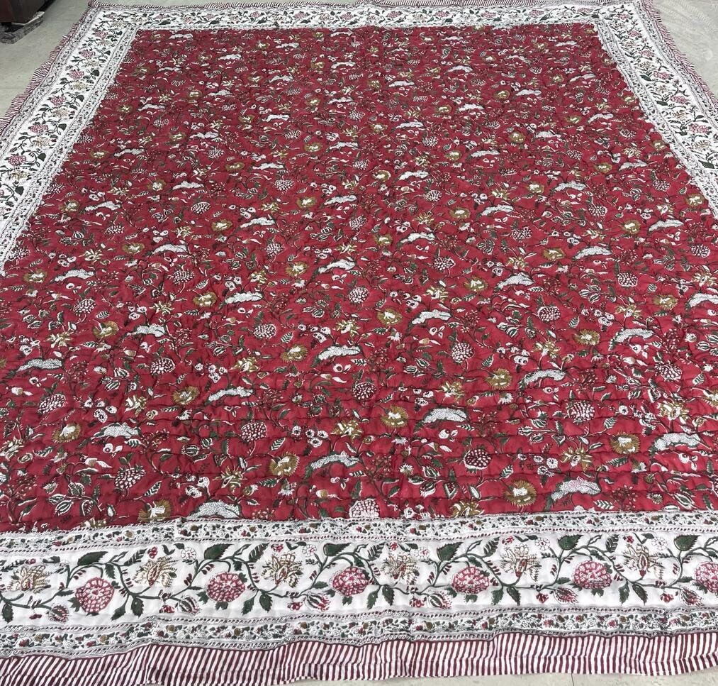 Hand Block Printed Quilt, Hand-Stitched Cotton Bedding, Jaipur India