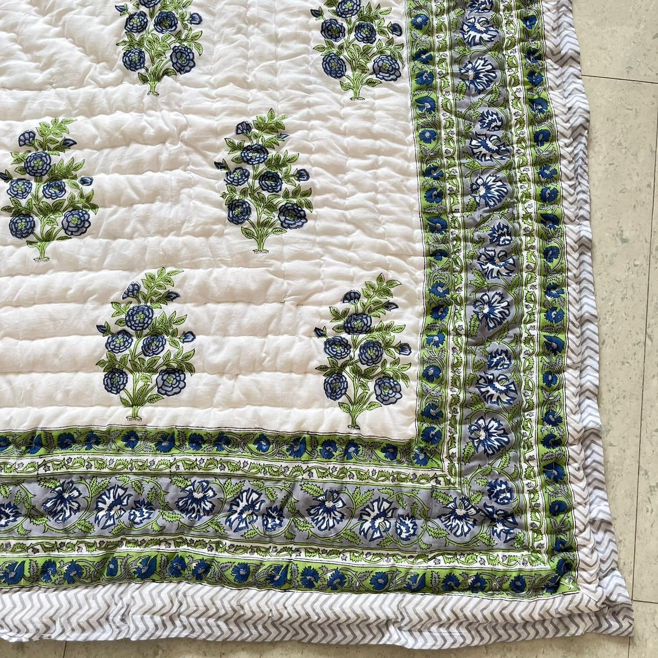 Indulge in the artistry of traditional craftsmanship with our exquisite Hand Stitched Hand Block Print Quilt. Each quilt is a masterpiece of skill and creativity, meticulously crafted by skilled artisans in Jaipur, India. From the intricate hand block printing to the careful stitching, every step in the process is a labor of love, resulting in a quilt that's as beautiful as it is functional.