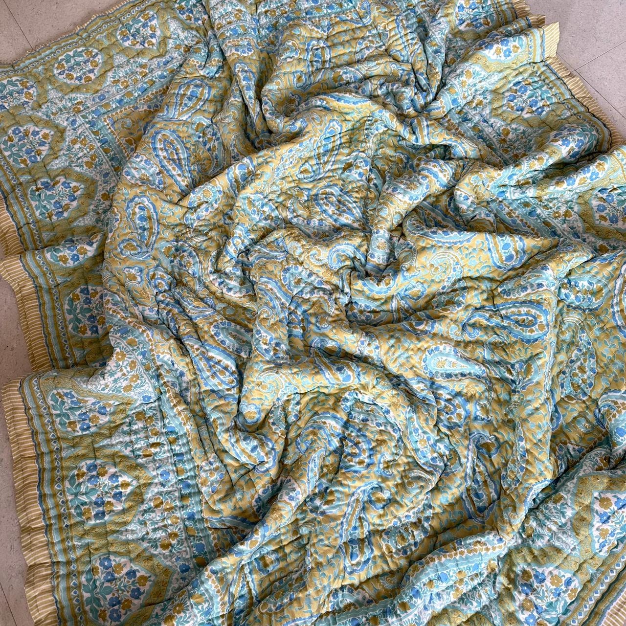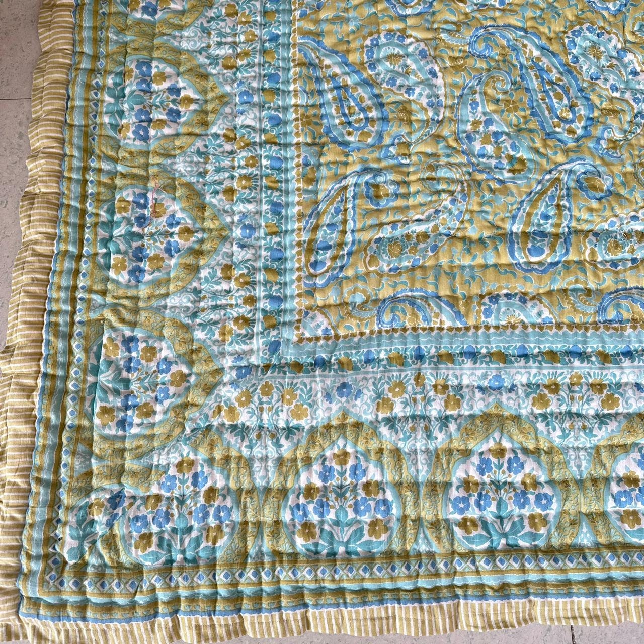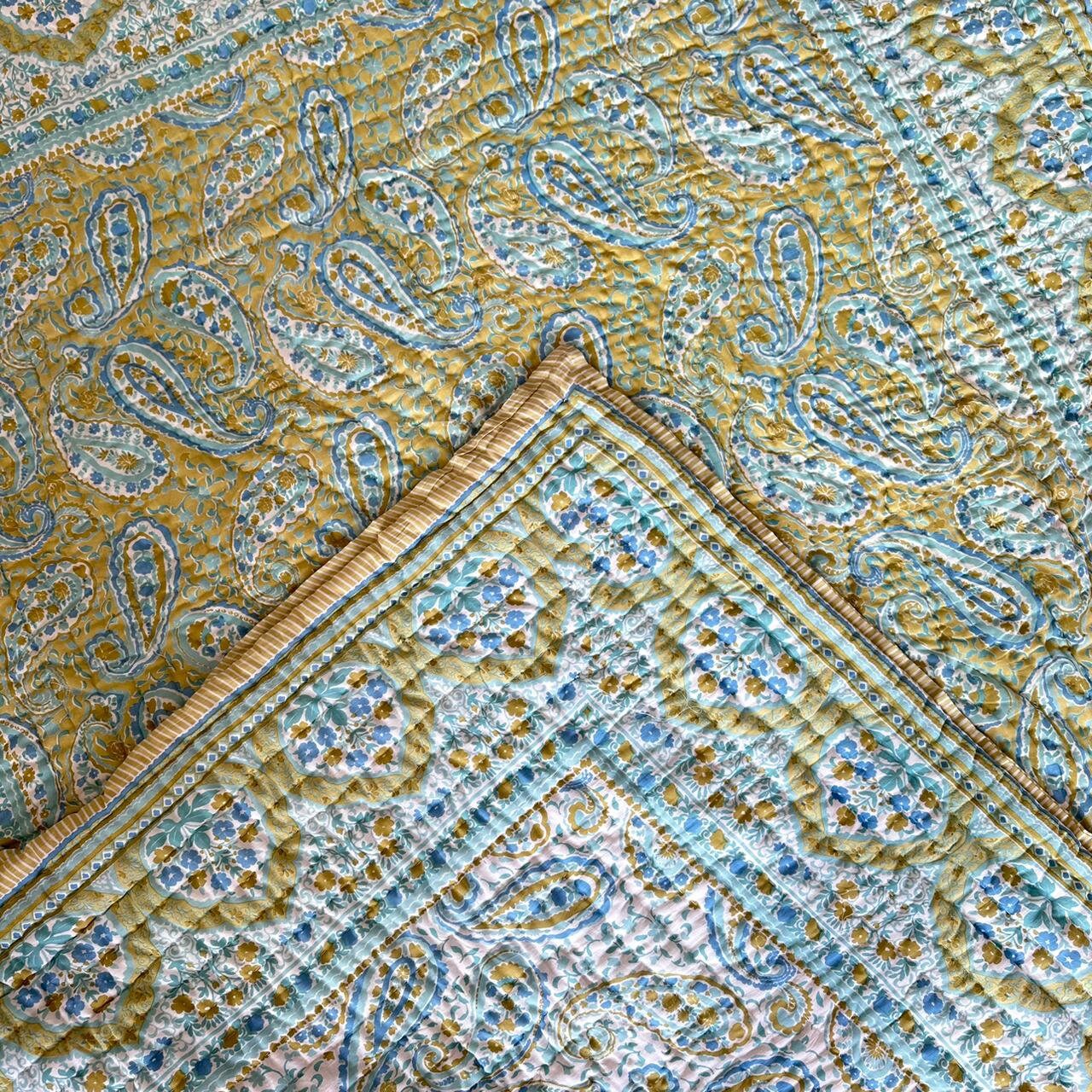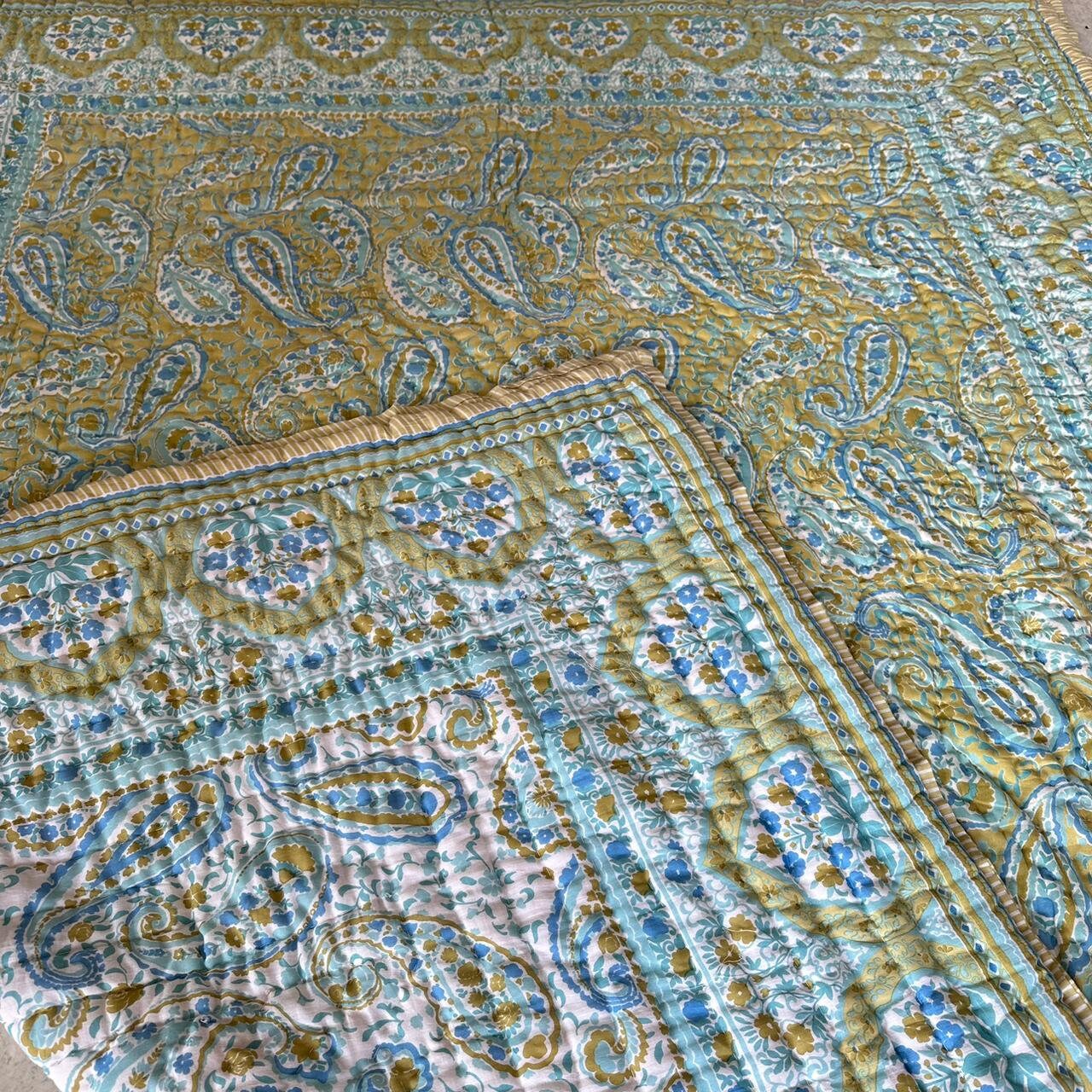 Indulge in the artistry of traditional craftsmanship with our exquisite Hand Stitched Hand Block Print Quilt. Each quilt is a masterpiece of skill and creativity, meticulously crafted by skilled artisans in Jaipur, India. From the intricate hand block printing to the careful stitching, every step in the process is a labor of love, resulting in a quilt that's as beautiful as it is functional.