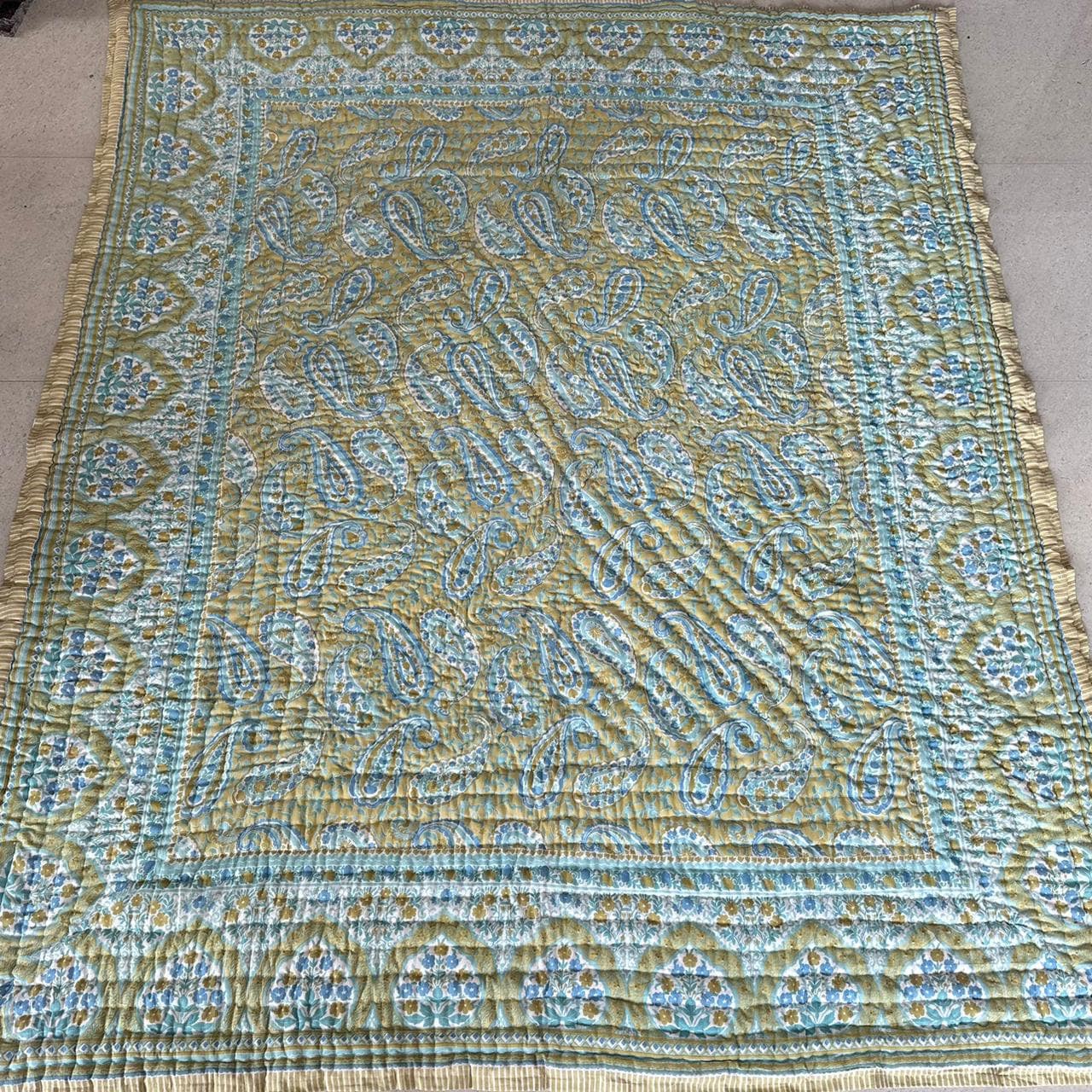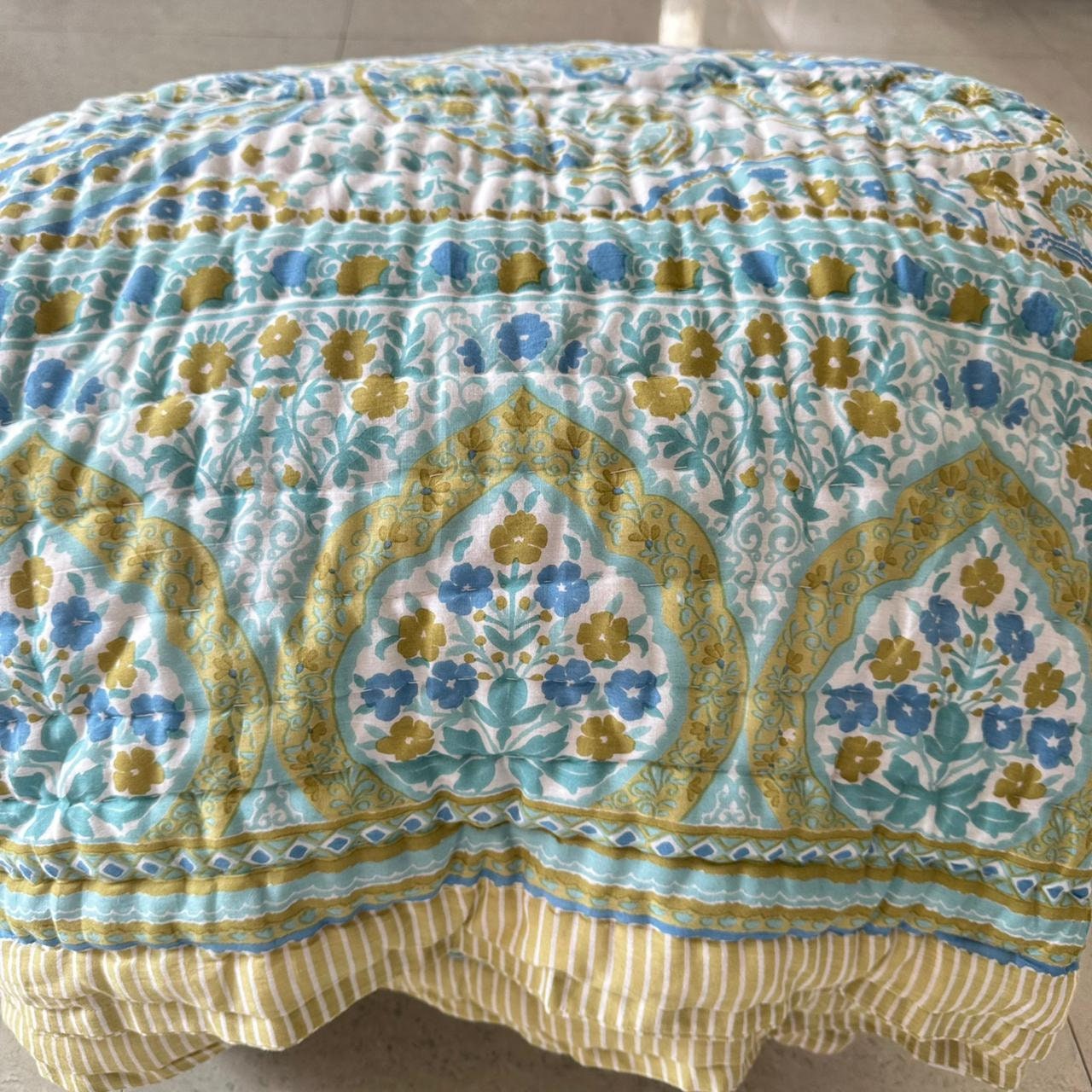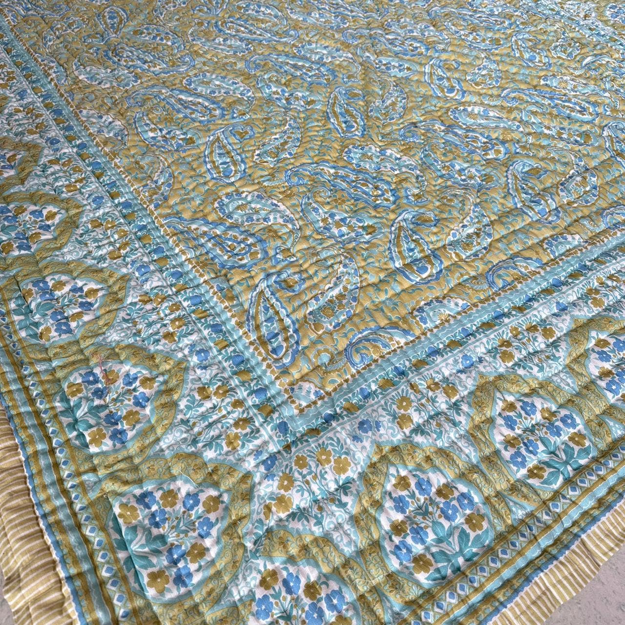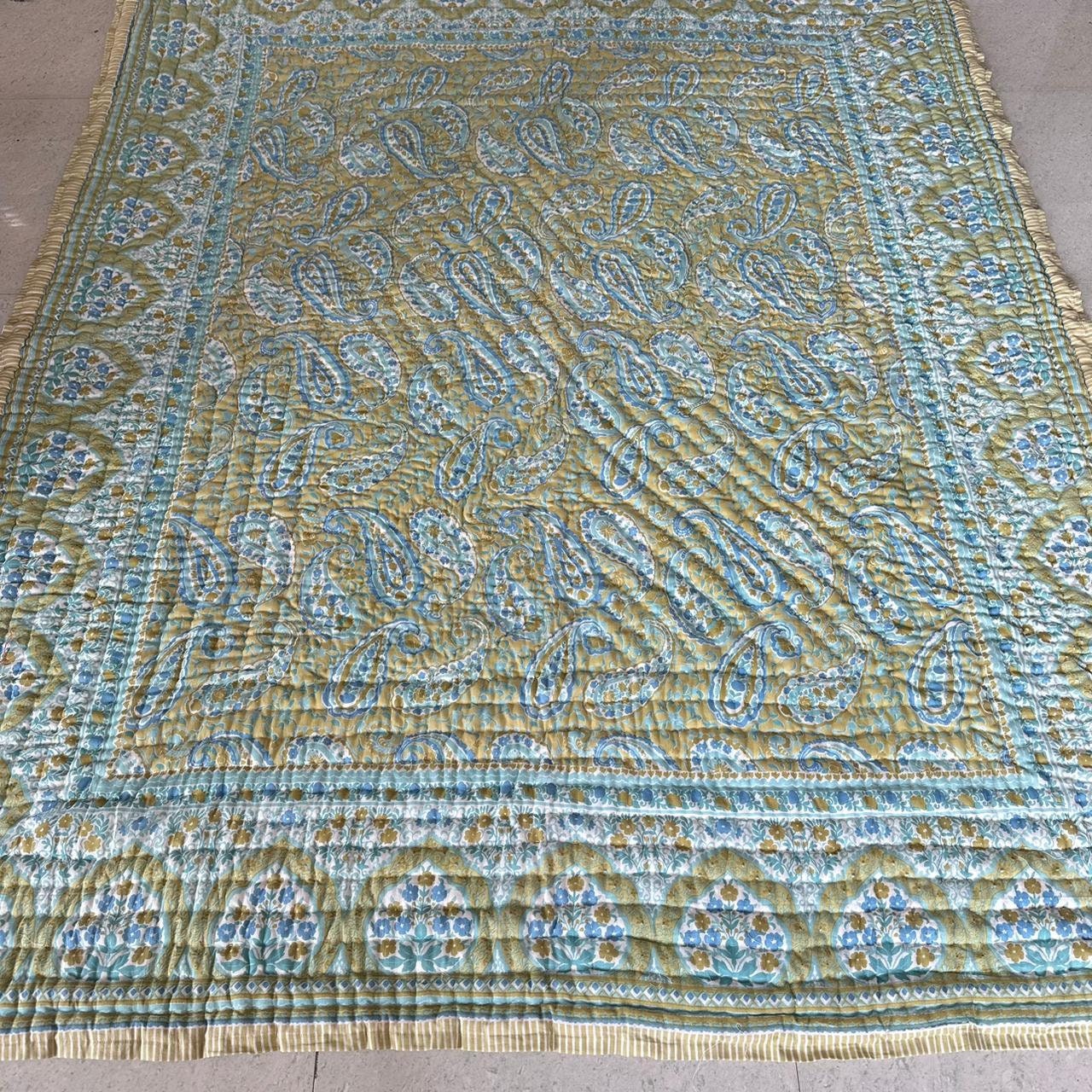 Indulge in the artistry of traditional craftsmanship with our exquisite Hand Stitched Hand Block Print Quilt. Each quilt is a masterpiece of skill and creativity, meticulously crafted by skilled artisans in Jaipur, India. From the intricate hand block printing to the careful stitching, every step in the process is a labor of love, resulting in a quilt that's as beautiful as it is functional.