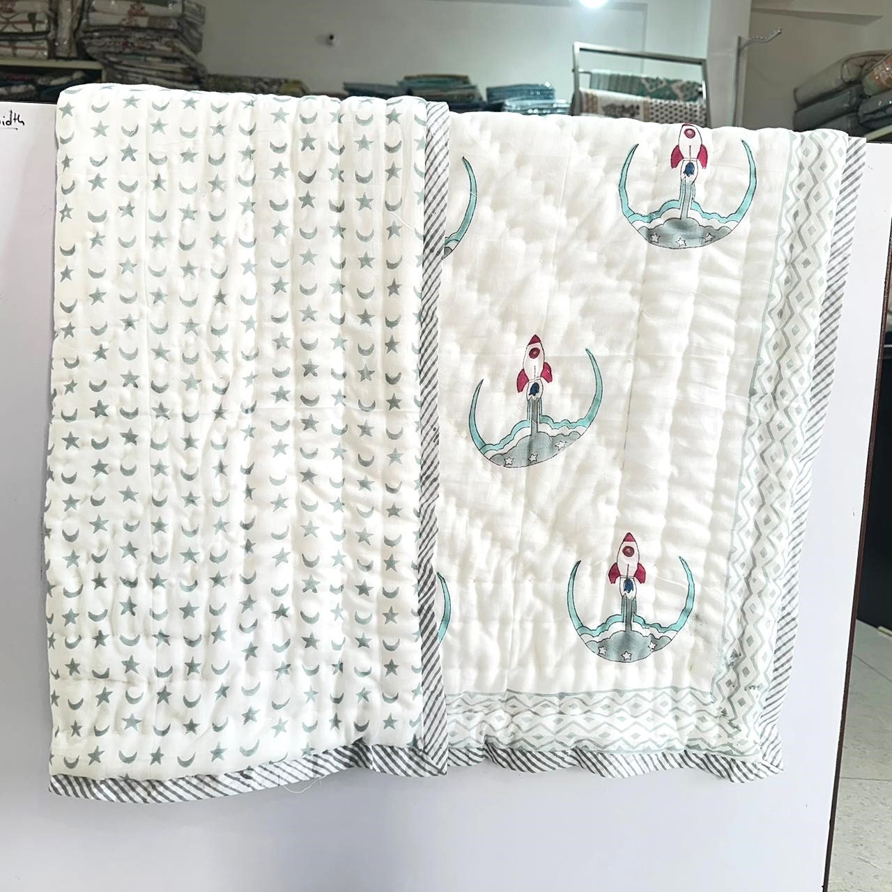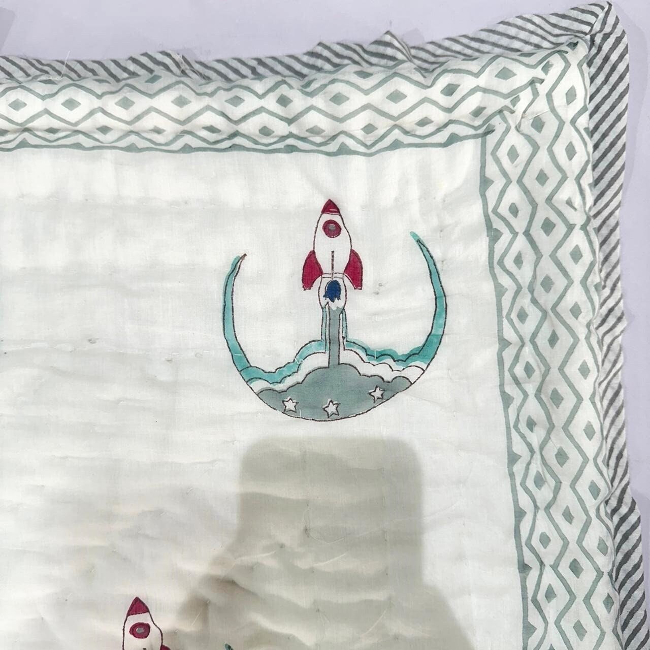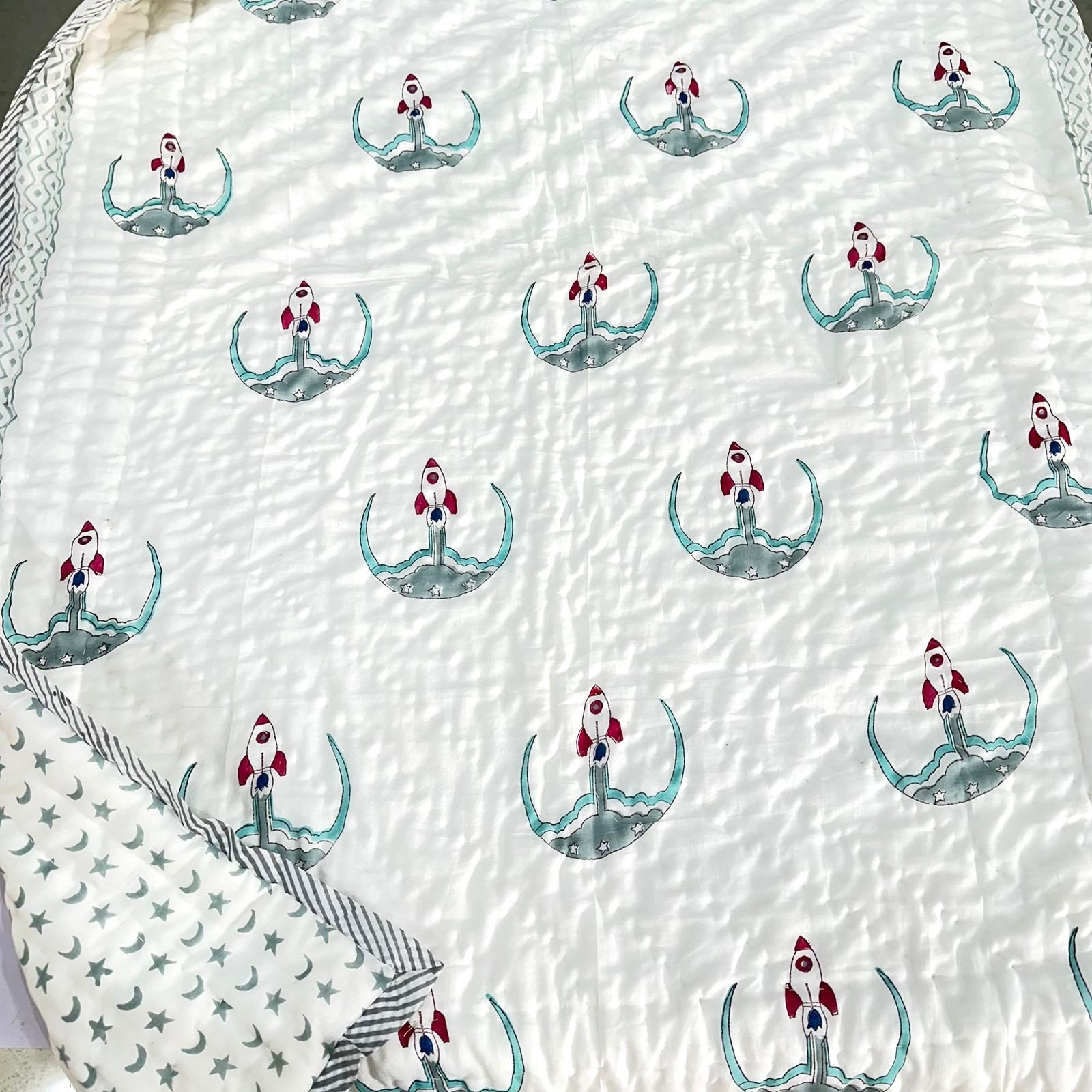 Policy- Buyer Are Responsible to Pay Duty and Taxes Charges,New Rocket Launcher Design Block Print Cotton Comforter, Handmade Baby Quilt, Warm Winter Filling For Baby Bedding