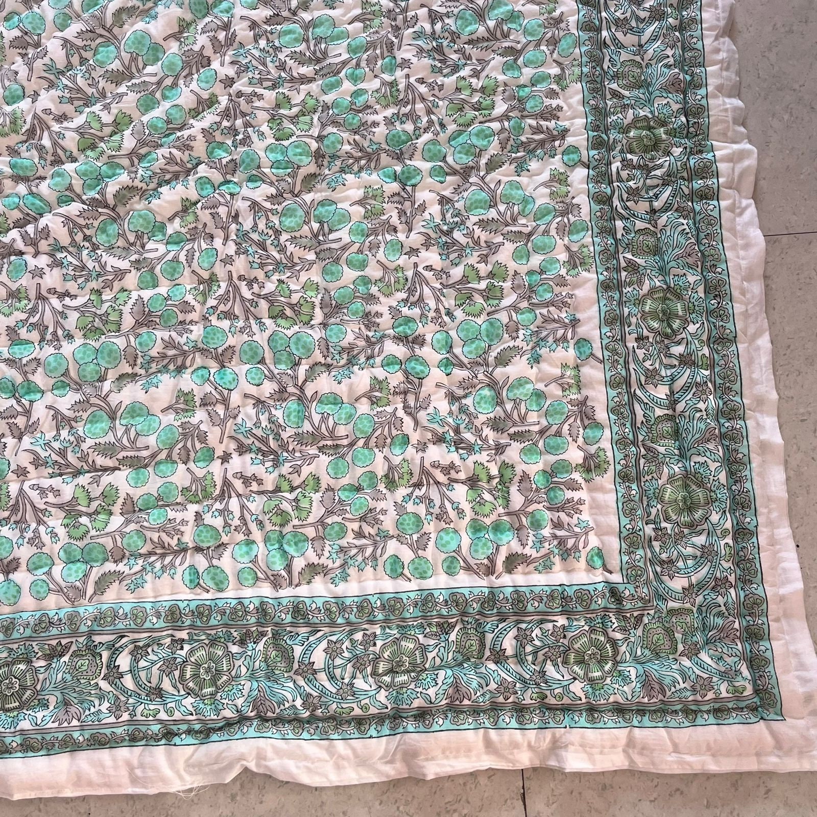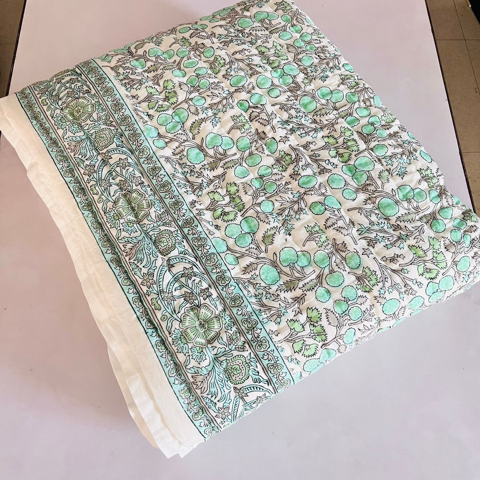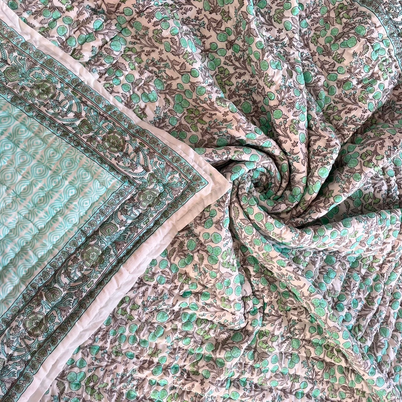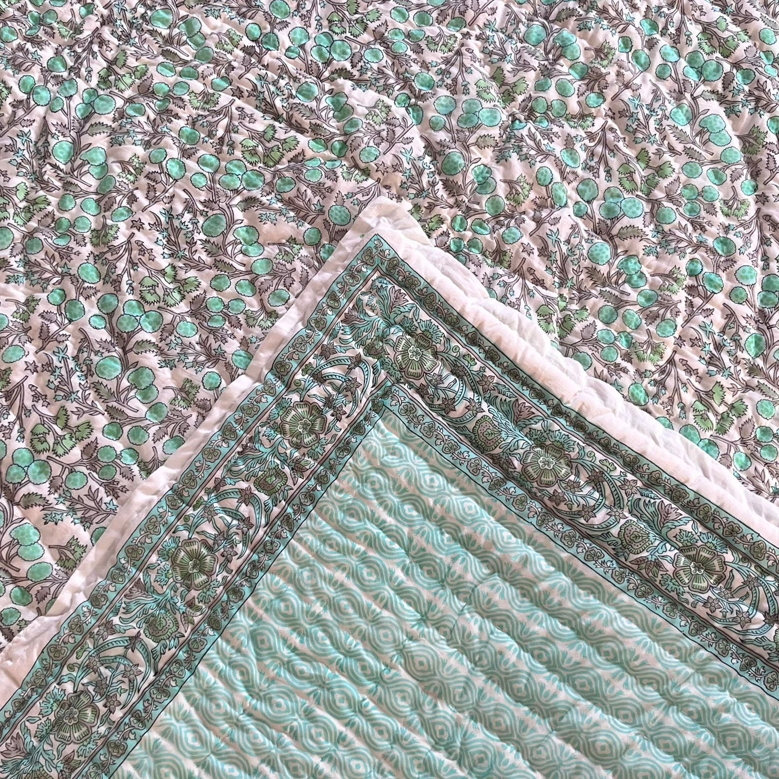 Hand Block Printed Cotton Quilt, Reversible Floral Comforter