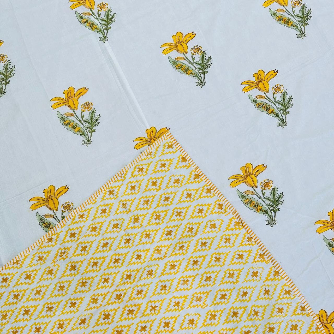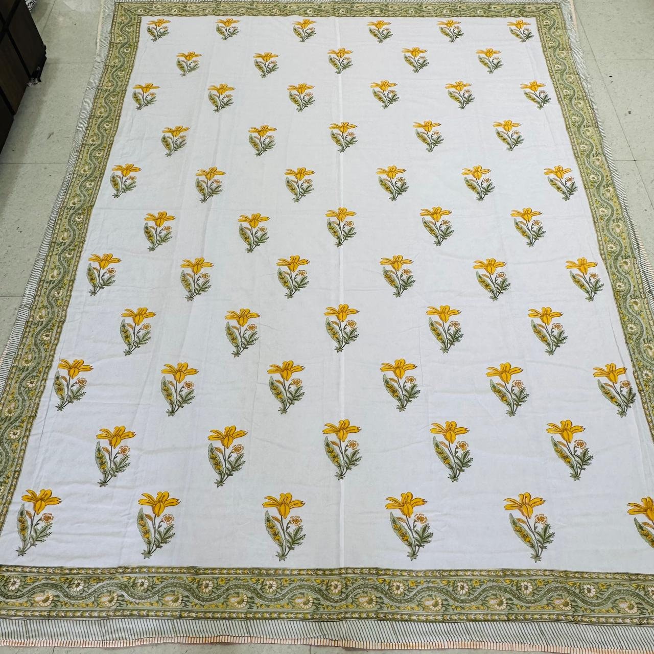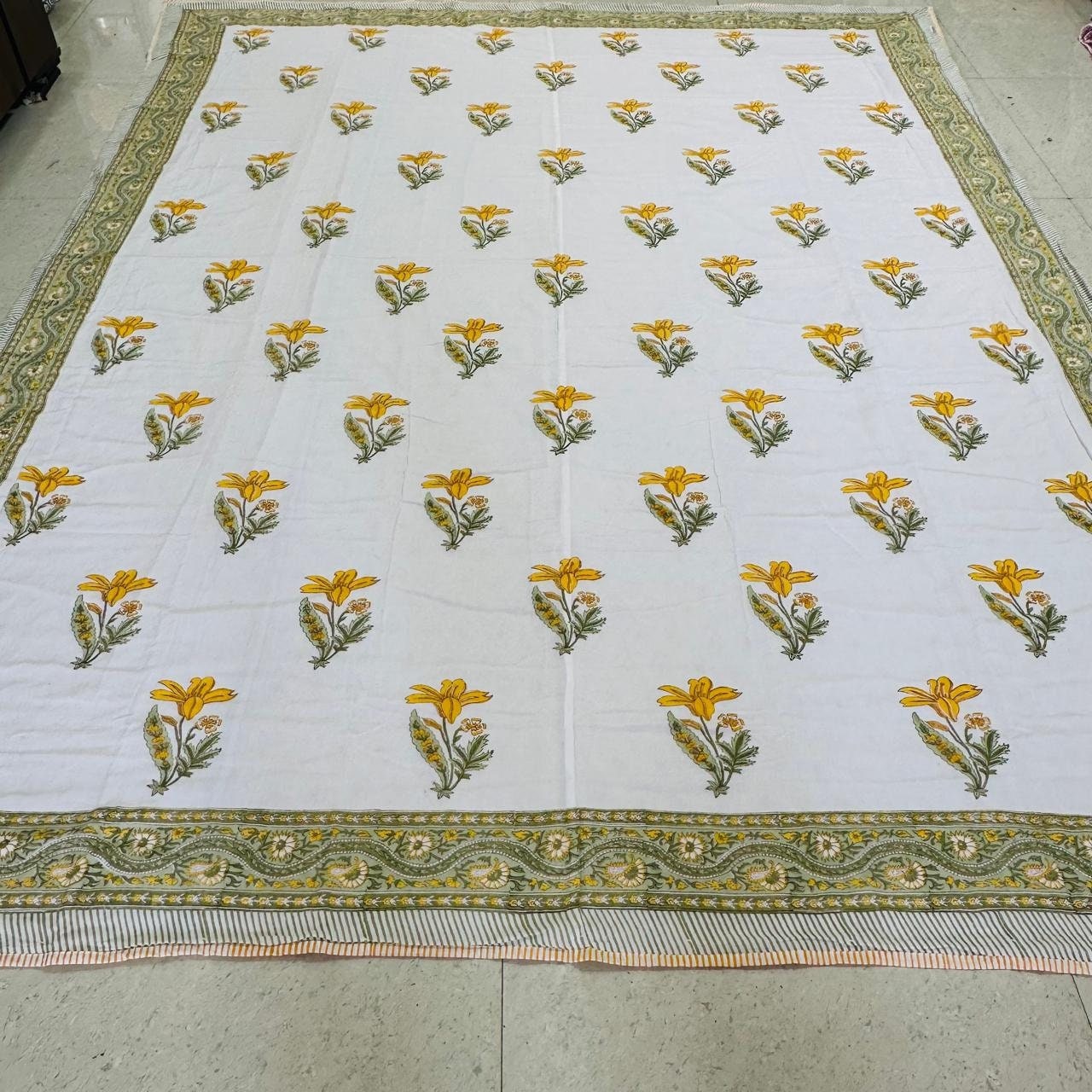 Experience the perfect blend of comfort and style with our Hand Block Printed AC Blanket (Dohar). Crafted with the same exquisite artistry as our quilts, this lightweight blanket is designed for optimal airflow and cooling comfort during warmer months. Made from soft and breathable mal mal fabric, each blanket features intricate hand block printing, adding a touch of artisanal elegance to your bedroom decor.