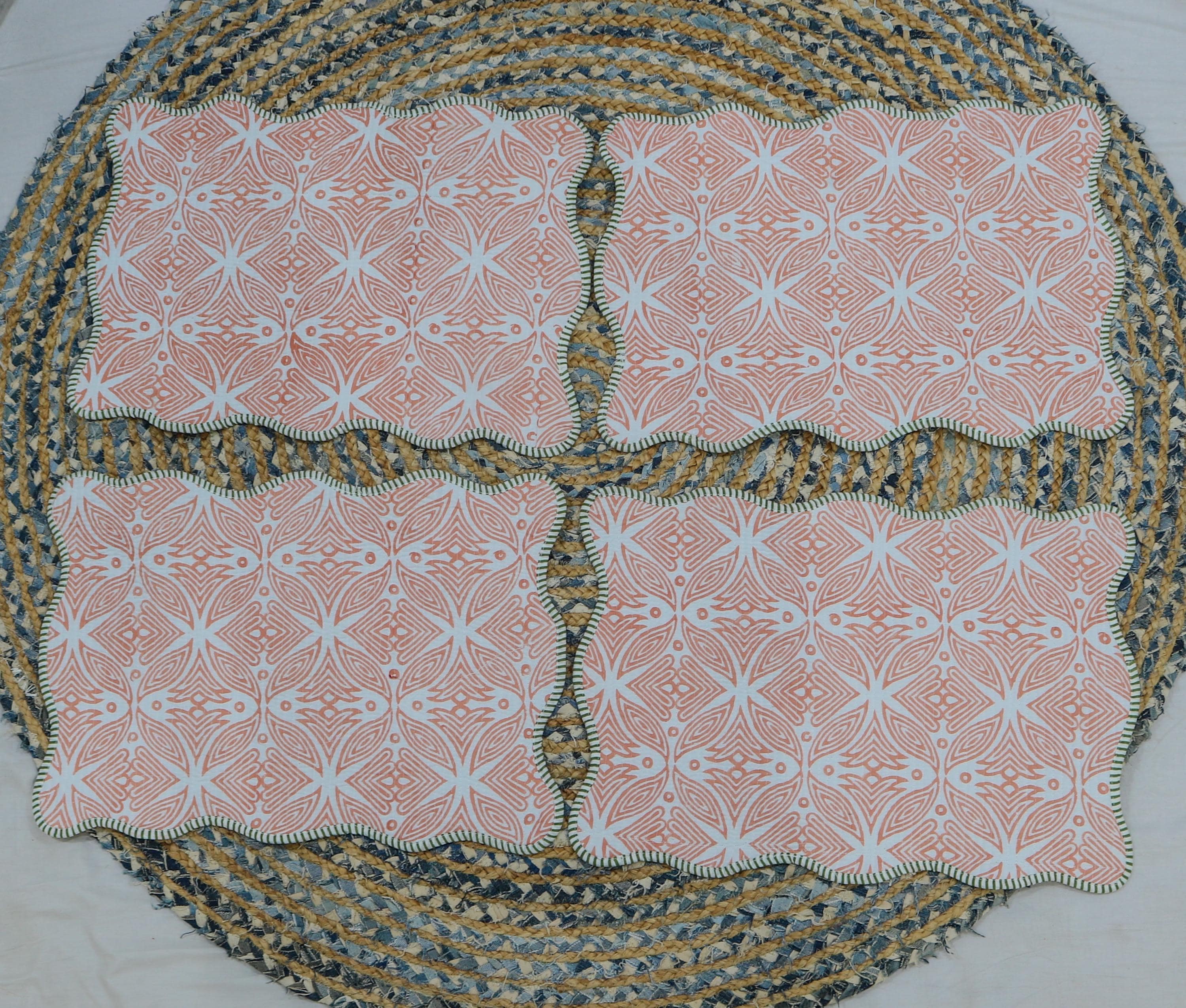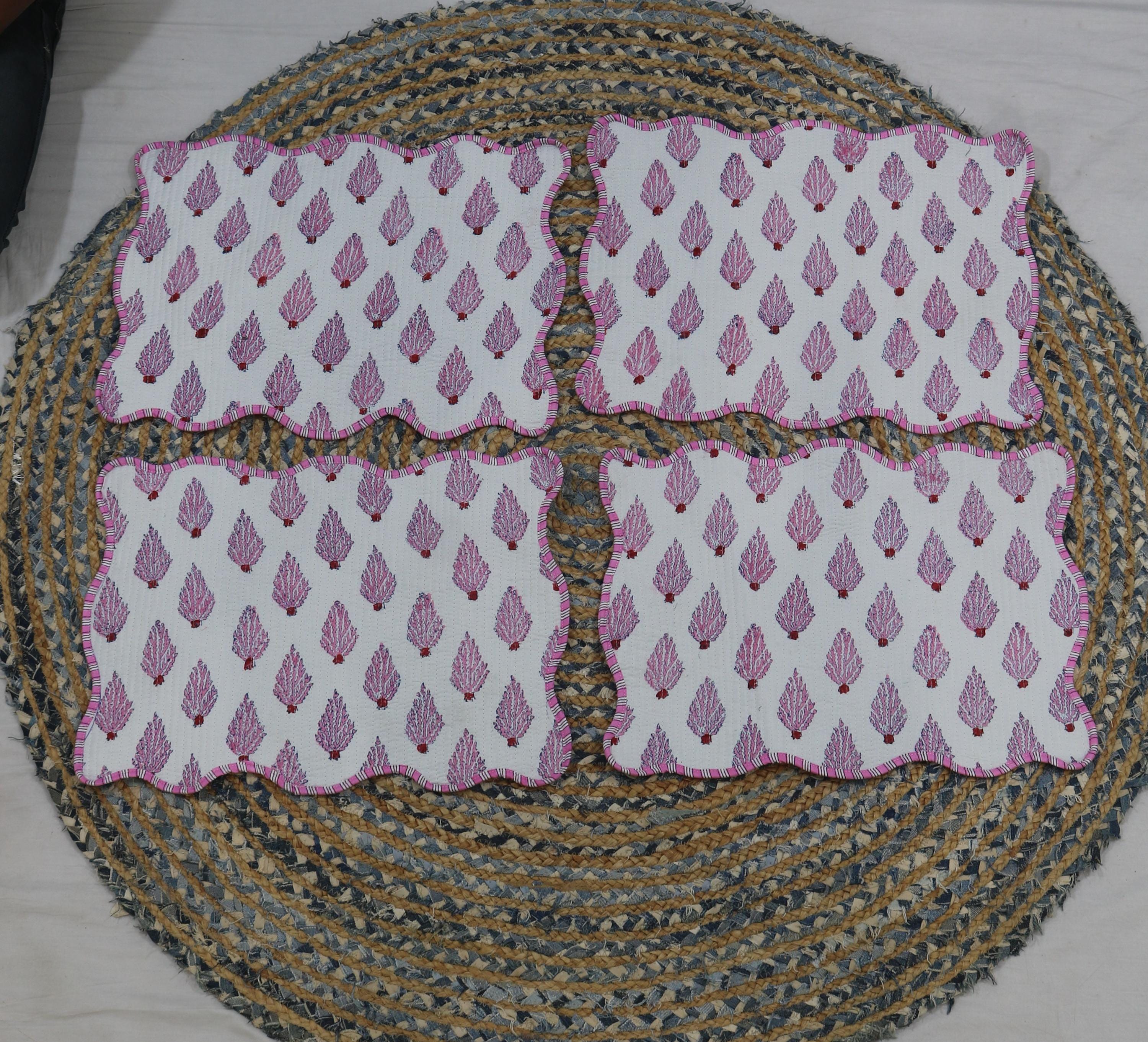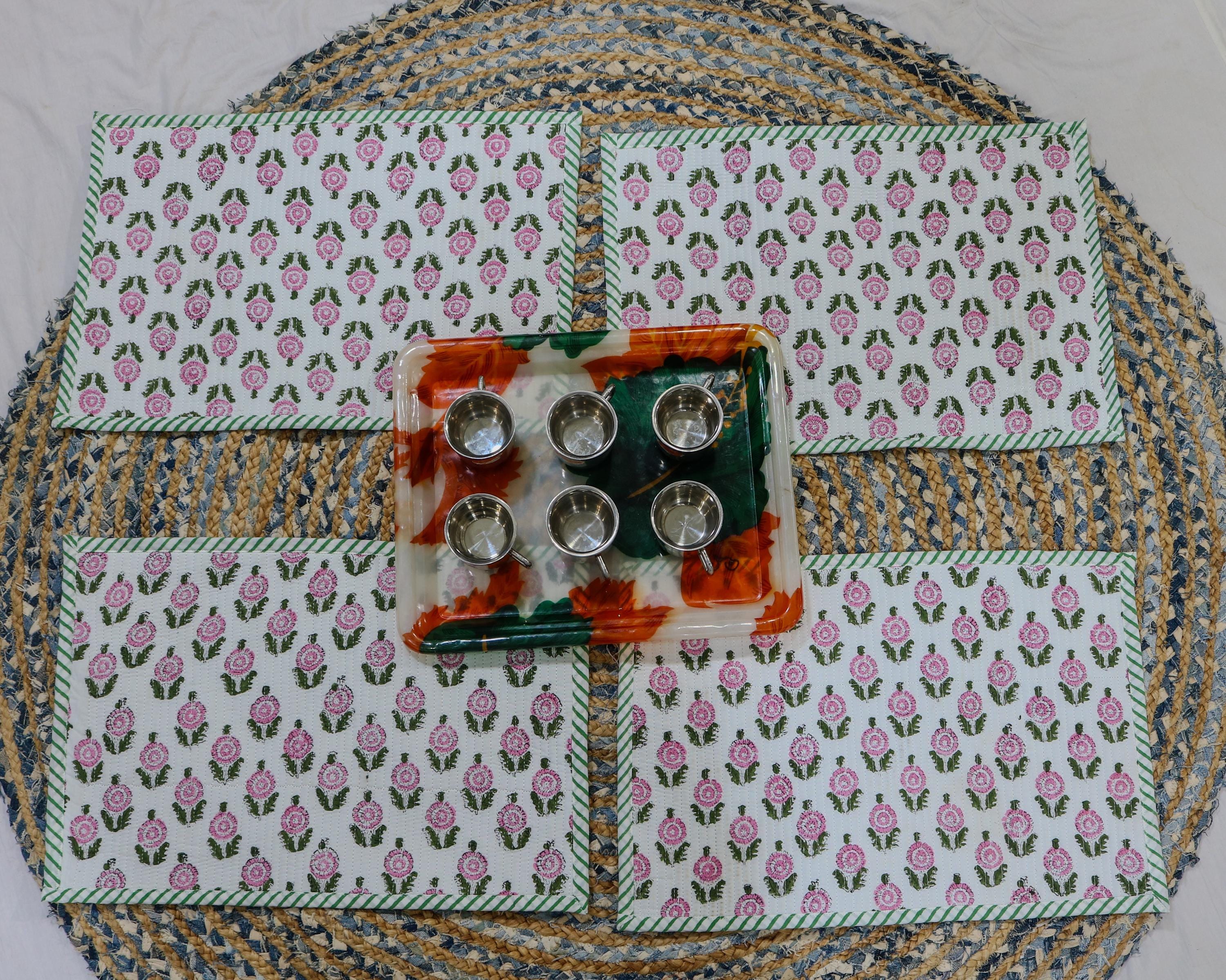 Hand Block Print Cotton Placemats: Floral Table Decor, Set of 2